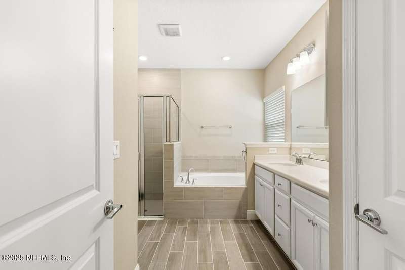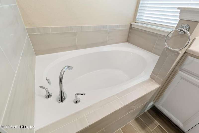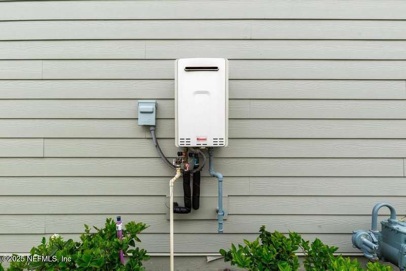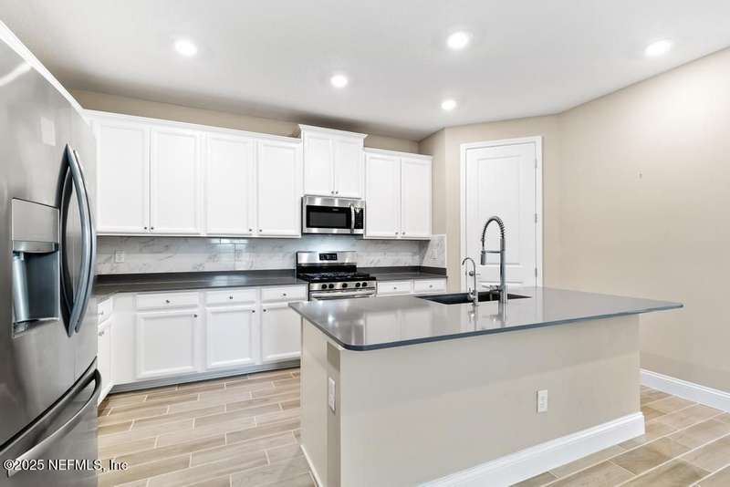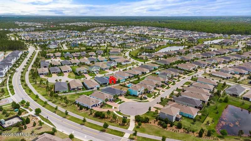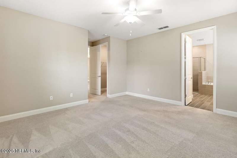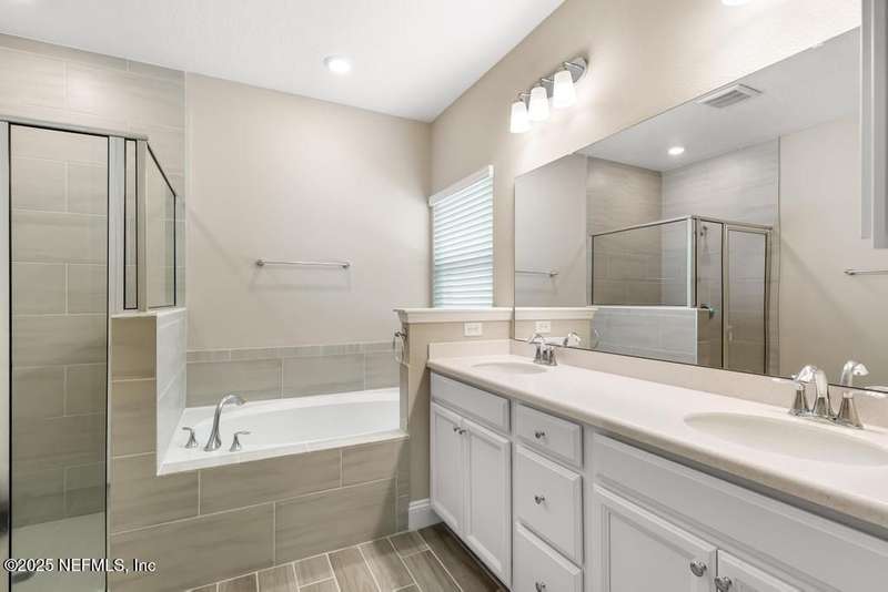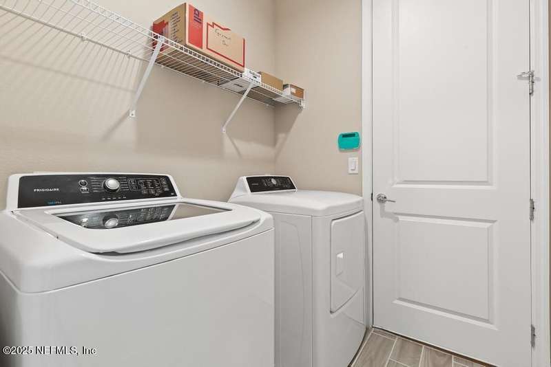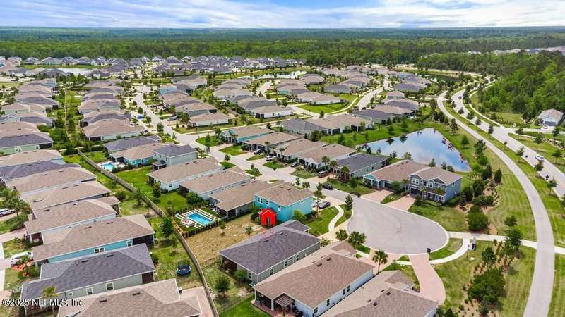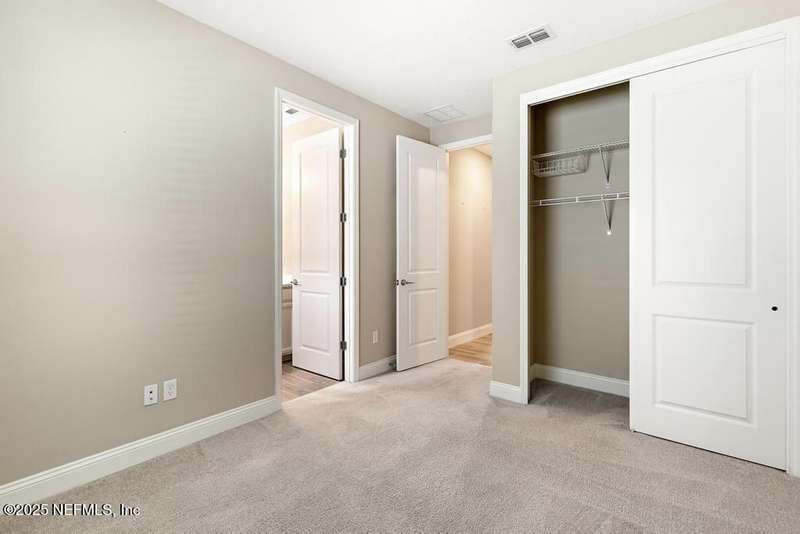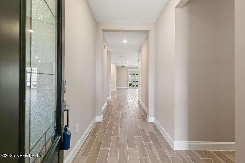 Welcome to this better-than-new-and slightly larger than current new construction-beautifully crafted Trevi floor plan in the heart of Shearwater. This stunning residence offers 4 bedrooms, 3 full bathrooms, and a 2-car garage, all wrapped in a layout that seamlessly balances style and functionality. Step inside and discover a chef-inspired kitchen featuring a beautiful quartz countertops and island, Frigidaire stainless steel 5-burner gas stove with oven, dishwasher, and refrigerator-perfect for both everyday meals and entertaining guests. The interior is elevated with plantation shutters throughout, a water softener system, reverse osmosis at the kitchen sink, and sleek ceramic wood-look tile flowing through the main living areas. Plush carpeting adds comfort in the bedrooms. Each bathroom features Quartz vanities, adding a stylish and consistent touch throughout the home. Additional features include a tankless water heater, washer & dryer, gutters, and fully irrigated yard. The backyard is mostly fenced - just the side yards remain to complete full enclosure. Enjoy peaceful outdoor living from your private screened lanai, and arrive in style with a pavered driveway that adds instant curb appeal. Situated in one of Northeast Florida's most sought-after neighborhoods, this home combines thoughtful design, functionality, and relaxed living. Plus access to world-class amenities and top-rated A schools makes this the perfect home. Schedule your private showing today and experience everything this exceptional Shearwater home has to offer! **virtual staging in rooms with furniture & front porch**