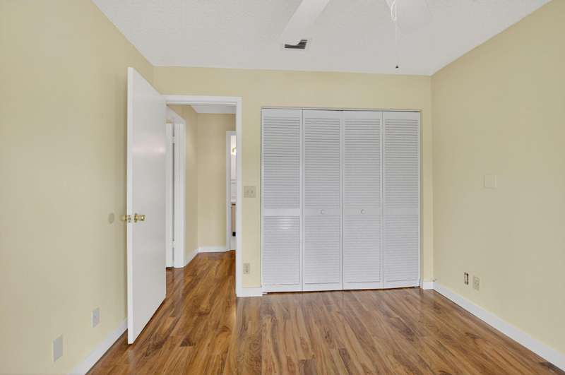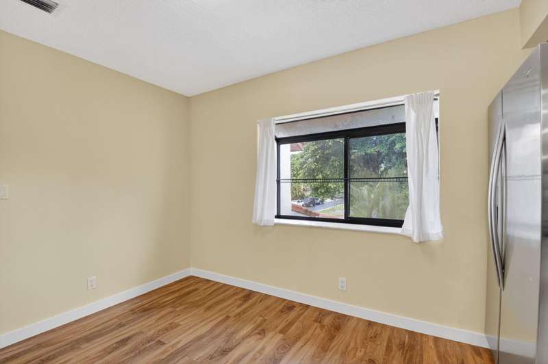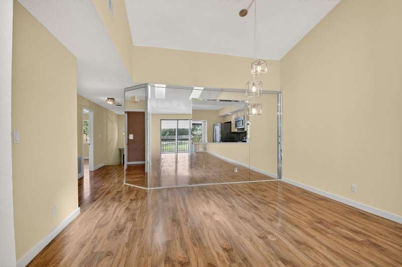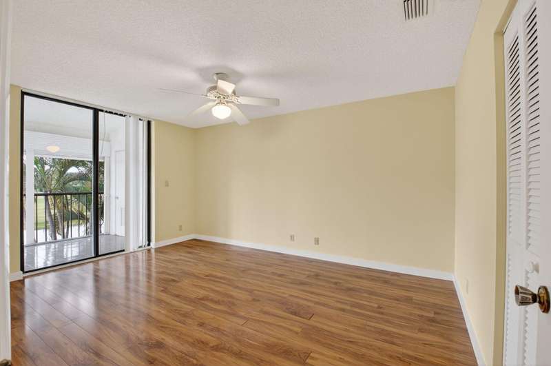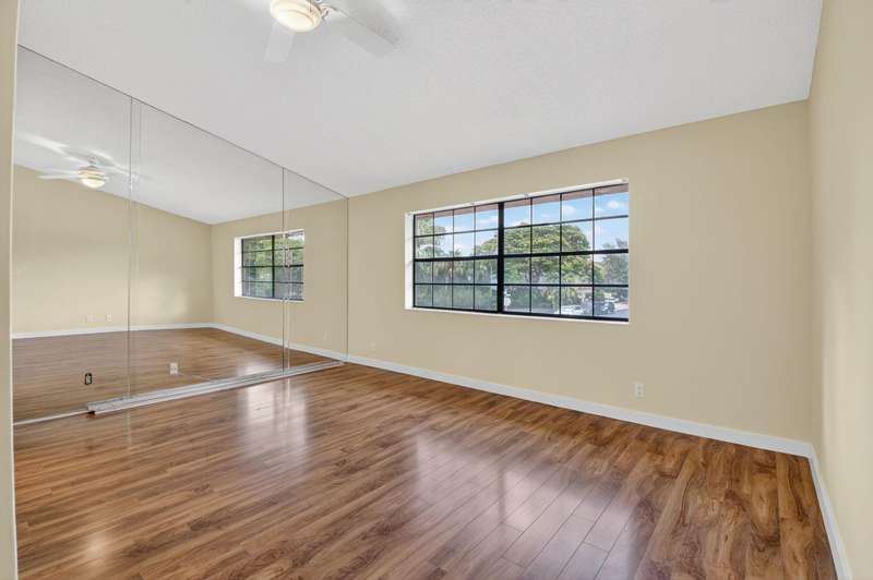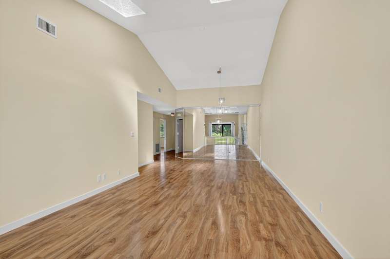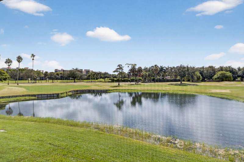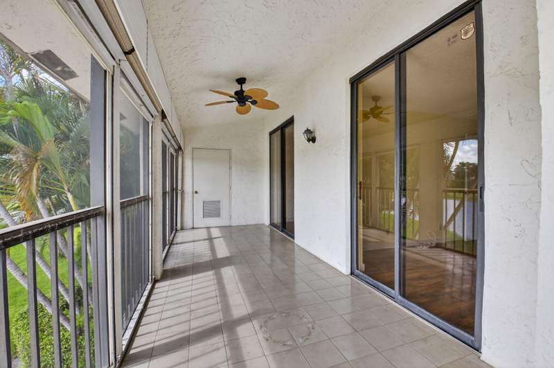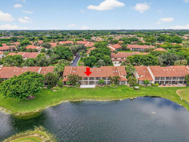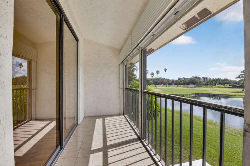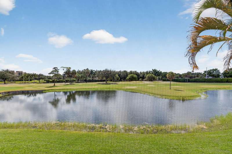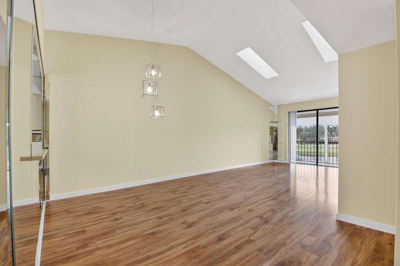 Spacious 3 bedroom, 2 bath condo with 1-car garage in a beautiful La Mirada at Boca Pointe. This 2nd floor home offers vaulted ceilings with skylights that fill the space with natural light, along with easy-care laminate floors throughout. The kitchen features stainless steel appliances and opens to the living area for comfortable entertaining. Enjoy peaceful golf and water southern views from the screened-in patio, complete with pull-down storm shutters and a storage closet. The true third bedroom makes an ideal guest room, office, or den. Move-in ready and located in a desirable community with subdivision pool.