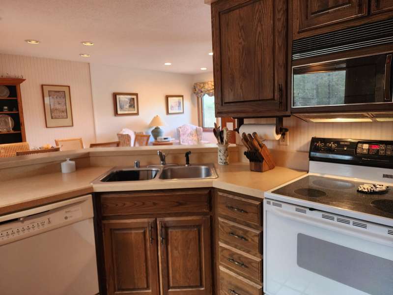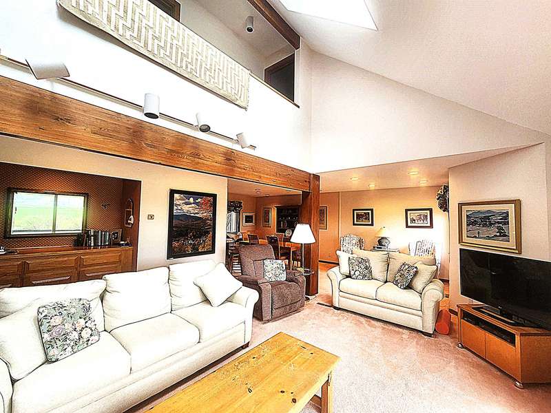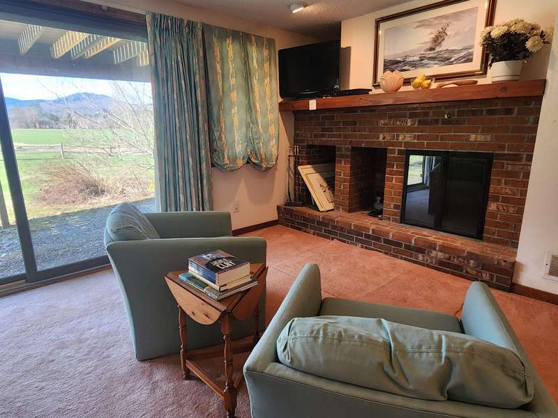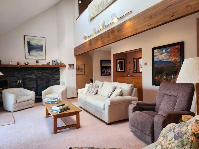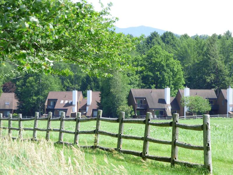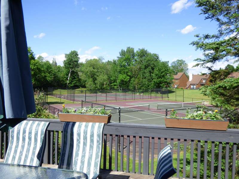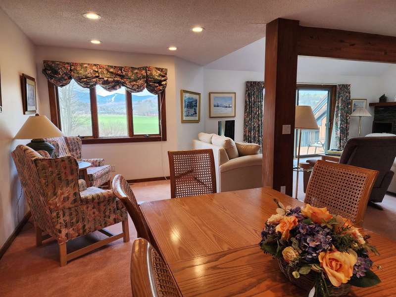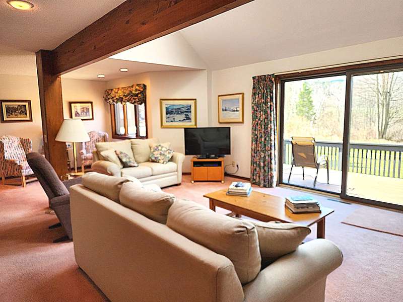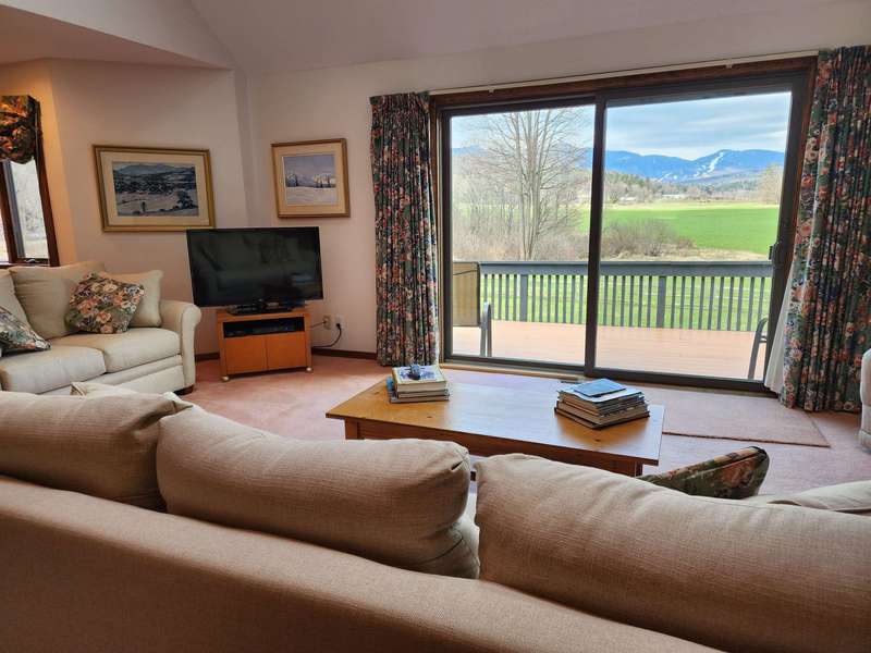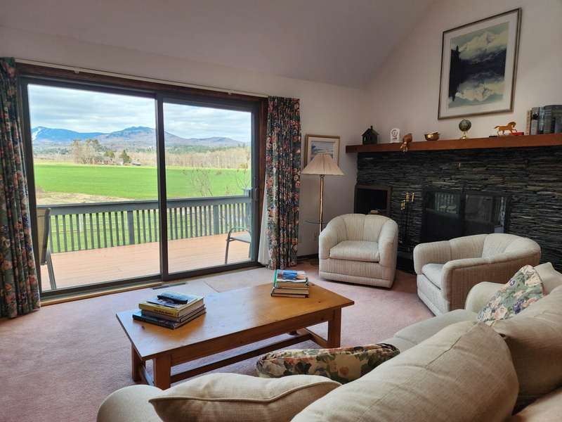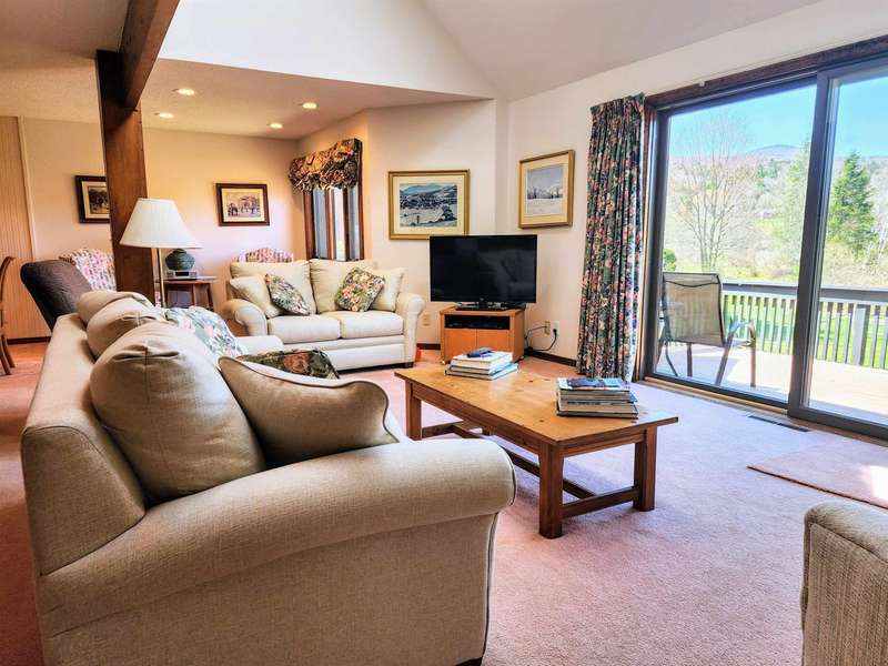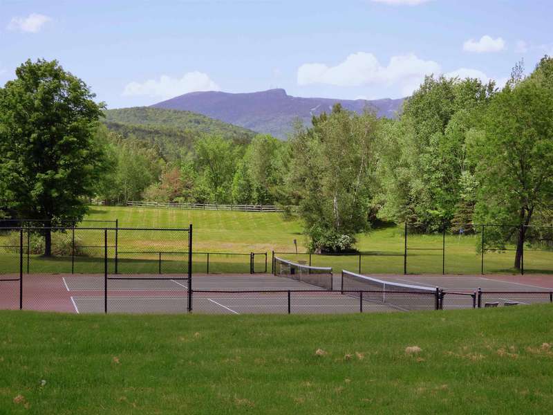 Here's the recipe: Take a magnificent and unimpeded view of Mt Mansfield. Add to that, a park-like setting on 160 acres of beautifully landscaped and maintained grounds with woods, ponds, fields, gardens as well as THAT view. Note that a river runs by it and so does the Stowe Recreation Path (good for walking, bike riding X-C skiing, snowshoeing etc). Add in the convenient location with easy access to the Mountain Road or "around the Village'. Add 2 recreation pods each with a swimming pool and tennis courts, a common building with a fitness room, gameroom, and sauna as well as the management office. The 2 or 3 unit buildings are set spaced so as to allow for an uncommon, private, country feel, but with the conveniences of condominium living. Finally, toss in this 3 bedroom unit, with 2 wood burning fireplaces, one in the expanded living room and one in the lower level primary bedroom to keep it warm, central A.C. to keep it cool, a cathedral ceiling, a deck, a detached garage and...