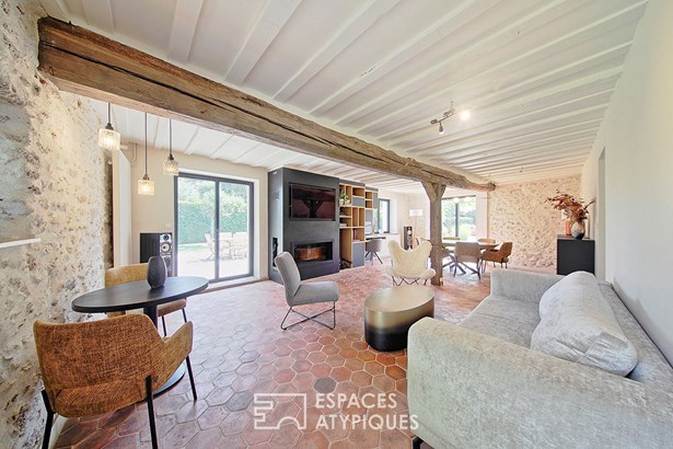 Located in a peaceful hamlet 5 minutes from Coulommiers, this beautiful exposed stone house has been completely renovated with quality materials. It offers a living area of 354m2 on a beautiful landscaped plot of 3500m2, fenced and not overlooked. The house opens onto a beautiful entrance which has preserved the manger, a beautiful stone floor and exposed beams recalling the history of the building. It is decorated with custom-designed storage spaces. In the extension is a laundry area with a shower and a toilet. A large kitchen, fully fitted and equipped in a contemporary manner, has direct access to the paved courtyard. In the extension is the living room bathed in light thanks to its numerous openings. Beautiful custom-fitted oak furniture offers an office space, a library, storage spaces and an insert to warm up winter evenings with family or friends. Beautiful terracotta tiles on the floor and an exposed stone wall form a beautiful mix of the old mixed with the modern comfort of this house. A first ipe terrace allows you to enjoy the garden. Next and also benefiting from access to the swimming pool and terrace area is a bar area. On the first floor, a large landing room allows you to set up a large office or a games room. It distributes the sleeping areas with on one side two bedrooms sharing a bathroom and on the other, a parental space with a large dressing room and a bathroom with a bathtub, a large walk-in shower and a sauna. The sleeping area is on the mezzanine with access via a custom-designed wooden staircase. In the extension is a room of more than 60m2 with high ceilings, acoustic insulation and a wall with custom-designed storage spaces. It is converted into a cinema room and gym and has a mezzanine which can accommodate a bedroom or an office. In its extension, there is a room to imagine as you wish and a small room which could accommodate a bathroom. This space is heated with a pellet stove and could be independent from the rest of the house since it benefits from access leading down to the garage. Nestled on the second floor are a games room with solid parquet flooring and two bedrooms. On the exterior side, the landscaped garden offers numerous fruit trees and a heated swimming pool of 9m x 4.5m bordered by a second ipe terrace. The entrance to the property gives access to a beautiful paved driveway allowing parking for several vehicles. A large garage that can accommodate two vehicles and a wine cellar complete this atypical and rare property in the area. A large garden shed provides storage. 5 minutes from Coulommiers by car, this house benefiting from a beautiful renovation, beautiful volumes, beautiful materials and very good energy performance will appeal as a primary or secondary residence (bus stop 2 minutes walk away for access to Coulommiers and to nearby schools). ENERGY CLASS: C / CLIMATE CLASS: B Estimated average amount of annual energy expenditure for standard use, established based on energy prices for the year 2021: between EUR3,120 and EUR4,280. Contact: Elvire de la MARTINIERE - 06 03 05 05 96 RSAC: 800 930 232 MEAUX