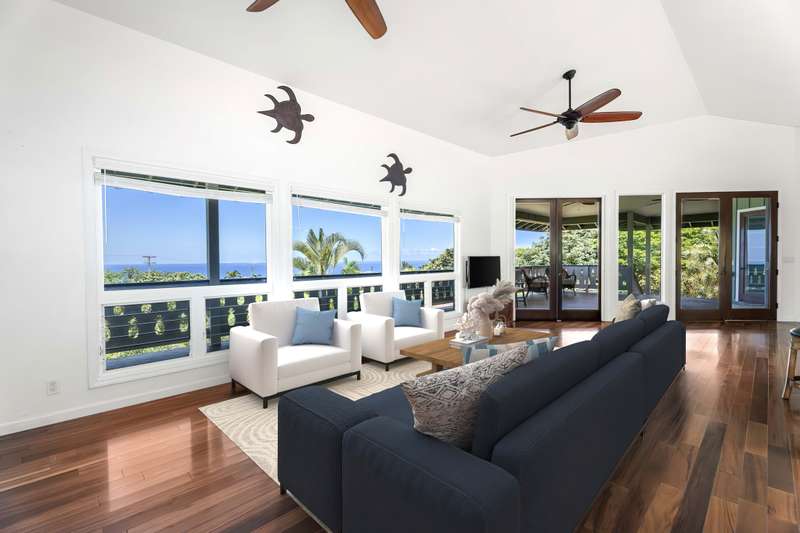 Nestled within the coveted gated community of Kealakekua Bay Estates—just one mile from the historic and iconic Kealakekua Bay—this exceptional 4-bedroom, 3-bathroom plantation-style two-story residence offers expansive ocean views and a flexible floor plan, ideal for multi-generational living or private guest accommodations.