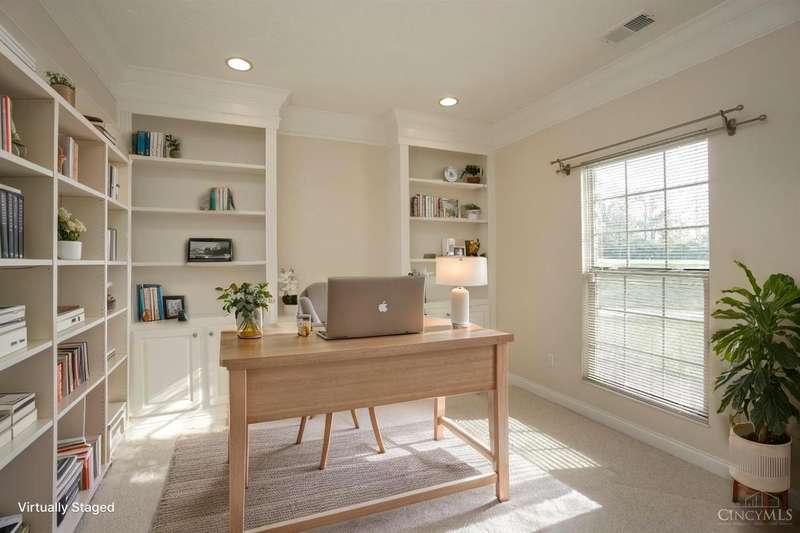 Spacious 2 bedroom, 2 bath, split owner's suite first floor condo has so much to offer! 9' ceilings give this condo an open and airy feel. Flex room can be used as a study with built ins or third bedroom. Kitchen boasts 42 cabinets, stainless steel appliances, solid surface counters, tile floors and island with overhang for seating. Formal dining room opens to screened in porch, great room has a gas fireplace with ceramic surround, owner's suite has tray ceiling with adjoining glamour bath and more. This unit has a 2 car garage and an extra storage unit on the second floor. New roof recently installed on building in oct. HVAC replaced 2020. Close to shopping, restaurants and expressways!