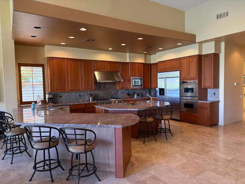 RENT Jan-Feb-March-April 2025. RENTED Jan-Feb-March-April 2026. AVAILABLE all other months. The view says it all. Breathtaking mountain, lake, golf course views. You have your own putting green. There is a fireplace and Built in BBQ. This beautiful Luxury home is west facing on the 18th green. Perfect home for entertaining your guests. All bedrooms are on suites. One is a private casita with its own fireplace & kitchenette. Prices very NOV-DEC- $11,500. JAN-FEB-MARCH $13,000. APRIL 14,000- MAY-JUNE-SEPT-OCT $10,000. JULY-AUGUST $8000.