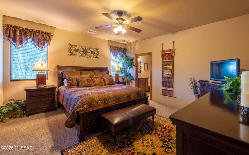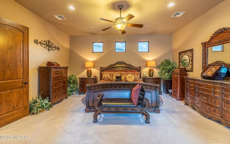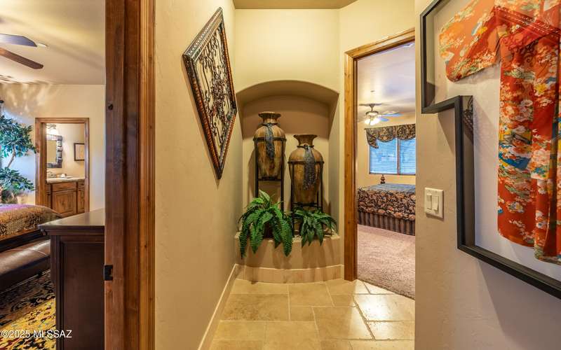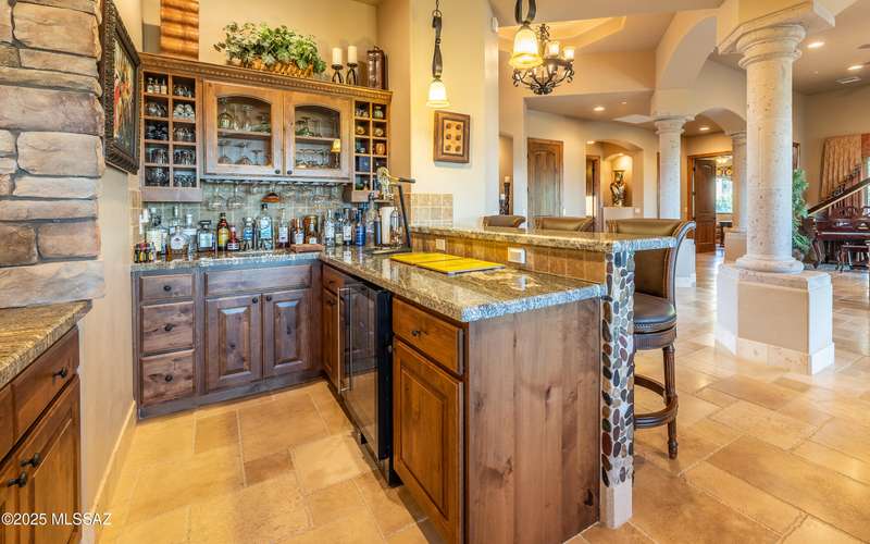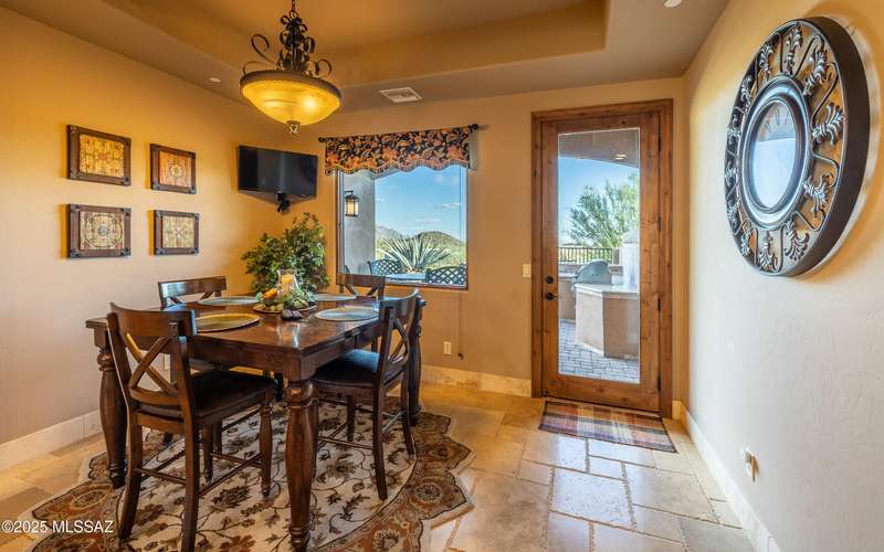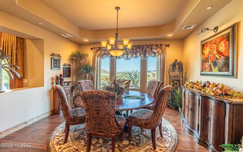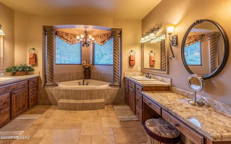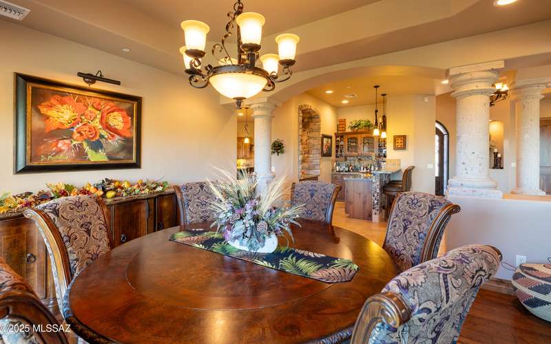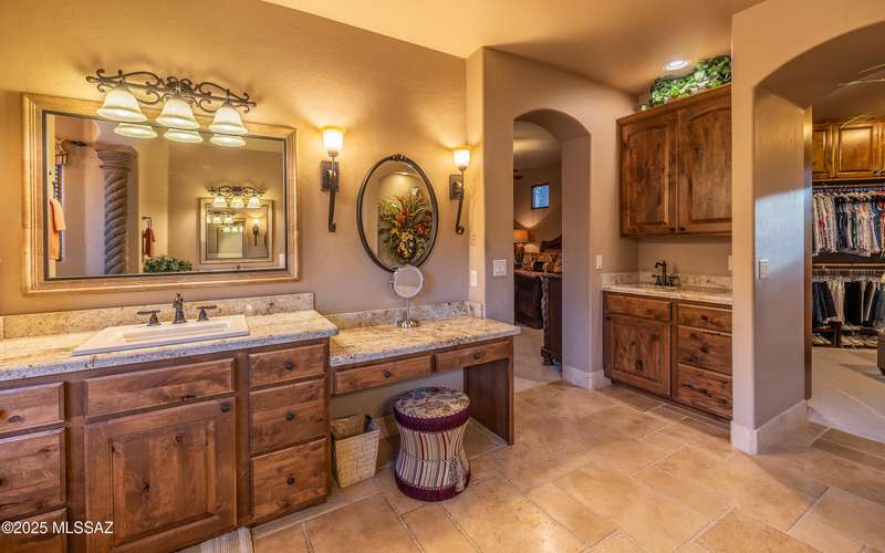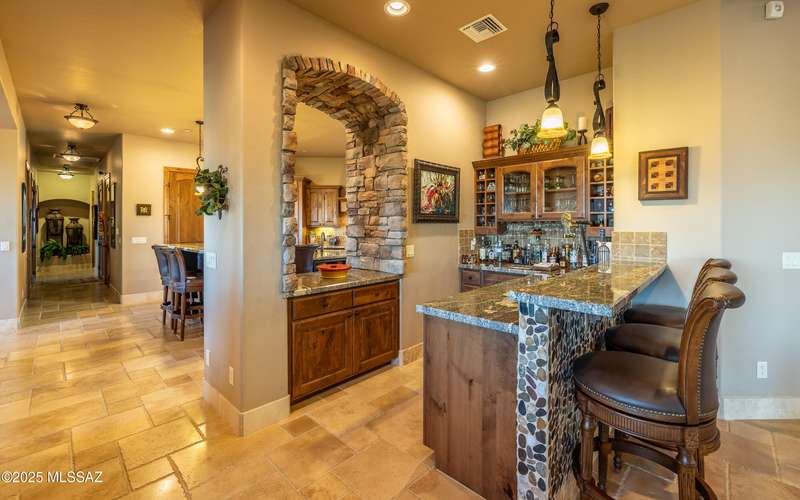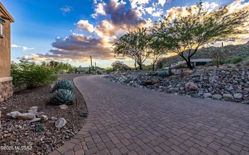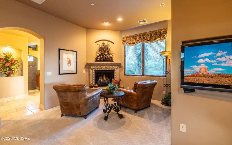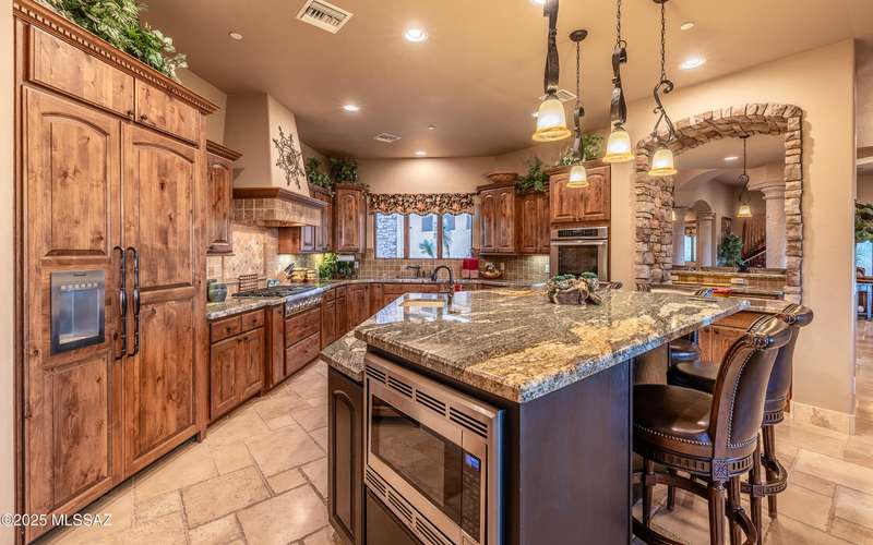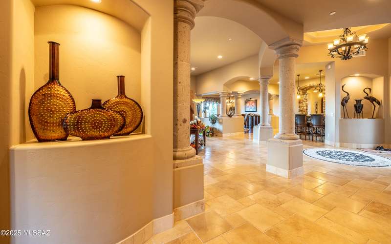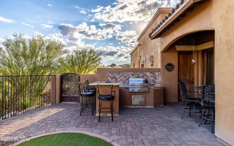 Extraordinary custom Canyon Pass home- exquisite craftsmanship that offers comfortable luxury living. Grand great room concept living - each window highlights a beautiful view. This residence is surrounded by the beauty of the Tortolita & Catalina Mountains, mesmerizing city lights, sunset glows and beautiful morning sunrises. Sprawling porch/patio sitting areas - relax in the glow of the majestic under porch fireplace, enjoy the relaxing pool, host a BBQ, hypnotize yourself in the city lights. Single story - no steps. Fabulous garage - great for car collectors. 3 beautiful fireplaces - great room, primary bedroom, under porch. If you love cooking you'll love this gourmet kitchen - and the adjoining entertainers bar has old world charm. All bedrooms are oversized w/private baths.