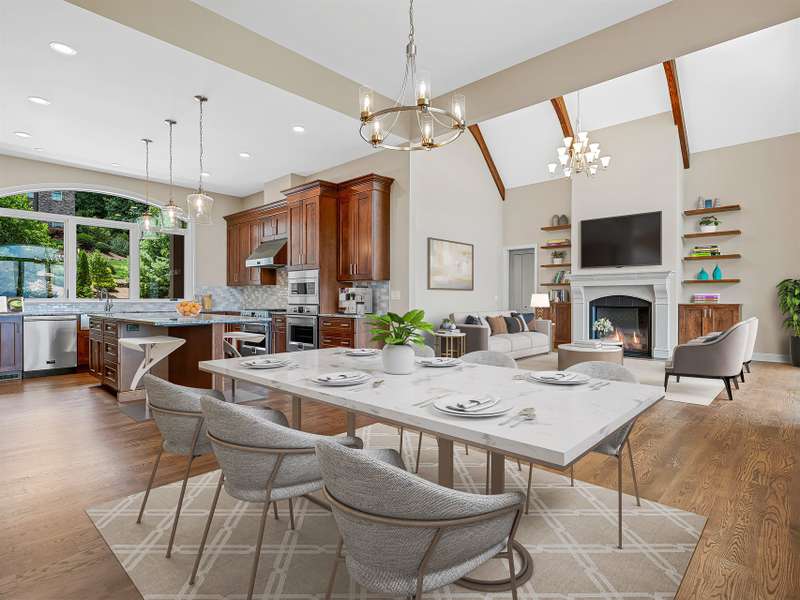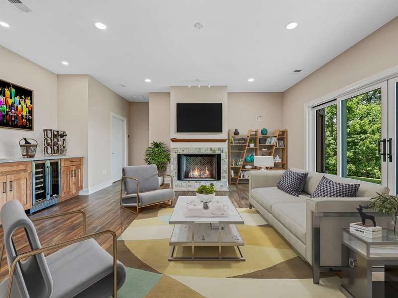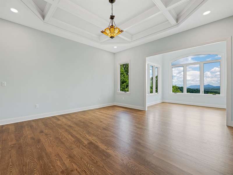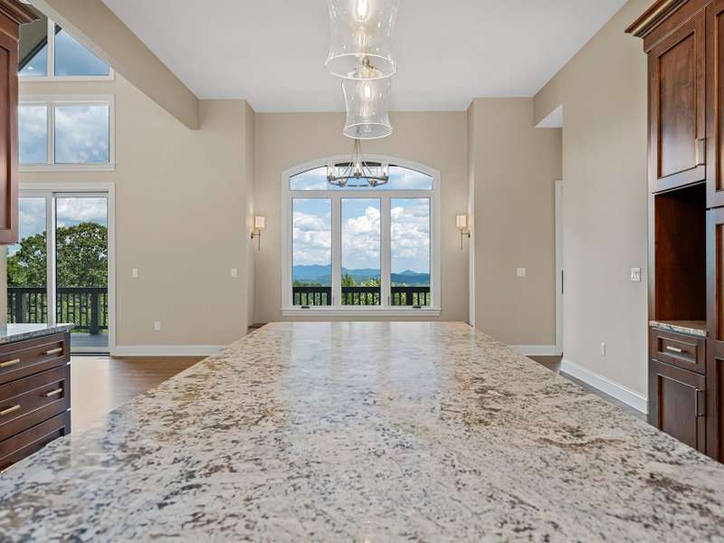 Just outside Flat Rock in peaceful Zirconia, this luxe new construction offers panoramic mountain views and easy access to Asheville, Hendersonville, and Greenville. From the impressive foyer to the vaulted great room with a soaring stone fireplace, every detail is crafted to inspire. A private office sits just off the entry. The chef's kitchen features premium Italian appliances including a gas range with baker's oven, wall oven, and dishwasher. A covered view porch with gas fireplace and outdoor kitchen rough-ins invites year-round enjoyment. The main-level primary suite includes a coffered ceiling, lounge area, heated floors, roll-in shower, slipper tub, and bidet toilet. The lower level offers 3 ensuite bedrooms, a game room with bar and fireplace, steam shower, elevator, and terrace. A spacious bonus room with full bath above the 3-car garage adds flexibility for guests, hobbies, or work-from-home needs.