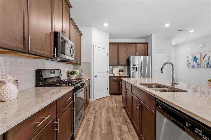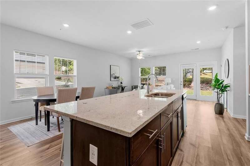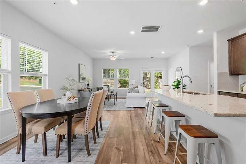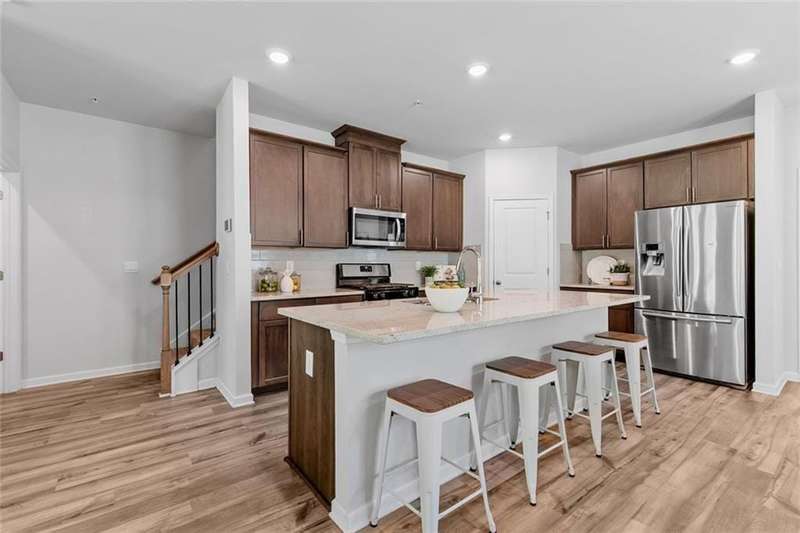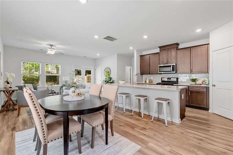 Savvy buyers, take note this stylish townhome comes with a 2.99% FHA assumable loan and also qualifies for a 3.99% interest rate, no money down, and no PMI! You can take over this incredible low-interest rate and save big on monthly payments or explore the alternative financing program for even more flexibility and savings. Step into style and comfort in this beautifully maintained, four-year-young end-unit townhome located in one of the areas most desirable communities! Featuring a bright, open-concept floor plan and luxury vinyl plank flooring throughout the main level, this home is designed with modern living in mind. The chef-inspired kitchen boasts granite countertops, stainless steel appliances, an oversized island with seating, a generous walk-in pantry, and ample cabinet storageperfect for everyday living and entertaining alike. Just off the kitchen, youll find a convenient half bath and a deep storage closet. Step outside to the private patio, ideal for grilling, relaxing, or hosting friends and family. As an end-unit, the home is filled with natural light streaming through expansive windows, creating a warm and inviting atmosphere throughout. Upstairs, plush carpeting adds comfort to the versatile loft space, great for a home office, playroom, or reading nook. The spacious primary suite offers a peaceful retreat with a walk-in closet and spa-like ensuite bath. Two additional bedrooms, each with their own closets, share a well-appointed full bath. This vibrant community offers fantastic amenities including a large dog park, playground, and firepit areaperfect for evening gatherings and making new connections. And the location? Truly unbeatablejust minutes from major highways, Kennesaw State University, local parks, popular restaurants, and everyday essentials like Costco, Whole Foods, and Target.