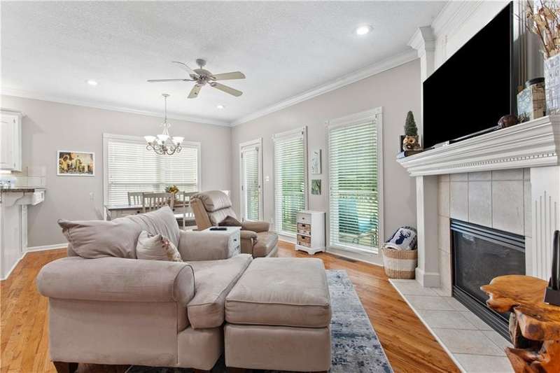 Add elegance to your life while keeping things simple in this gorgeous home. From the impressive curb appeal to the thoughtful details inside, this one stands out. Tall ceilings bring a sense of space and grandeur, while upgraded trim, crown molding across the main level, and rounded drywall corners add a refined touch. Built-ins and beautiful wood floors flow throughout, and natural light is everywhere thanks to large windows and solar-tube skylights.The kitchen offers granite counters, crisp, painted cabinetry, and opens to a cozy hearth room with gas fireplace overlooking the freshly refinished deck and treelined backyard. An additional oversized living room with space for dining makes entertaining easy. The master suite is a true retreat with gorgeous windows, double closets, dual vanities, jetted tub, and shower.The walk-out basement is another highlightfeaturing a generous bedroom with attached full bath, plus an office or TV room space, the additional finished areas perfect for a workout, craft room, or expanded living, yet still with ample storage space.The outdoor space of this home is also amazing. Wonderful 15x13 deck overlooking tree lined backyard and below( accessed through the walk-out basement) a great 21x15 new patio. And with the HOA handling lawn care, sprinklers, trash, shrub trimming, and even exterior paint, you can simply relax and enjoy this beautiful home, inside and out. Also, don't miss the tankless hot water heater.. never run out of hot water!