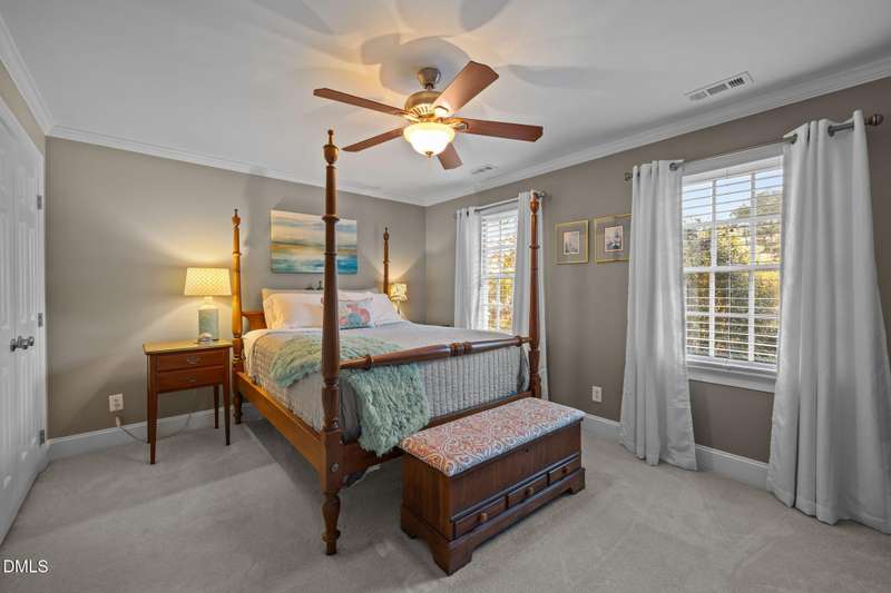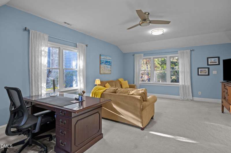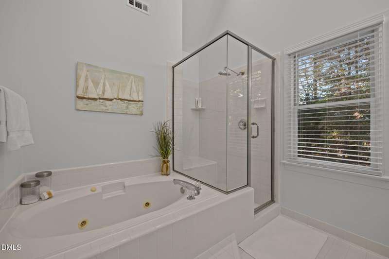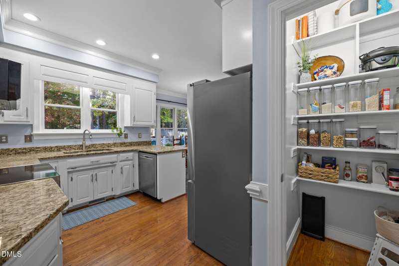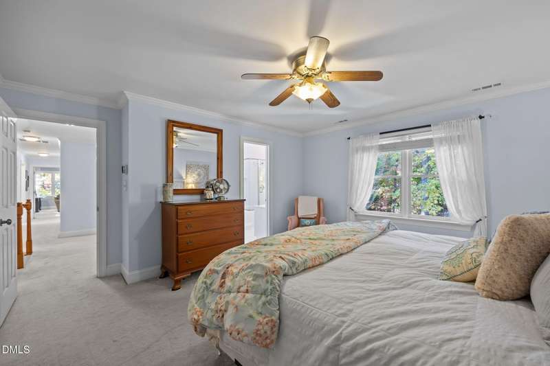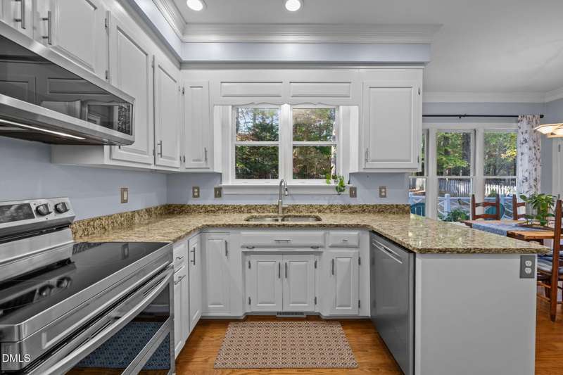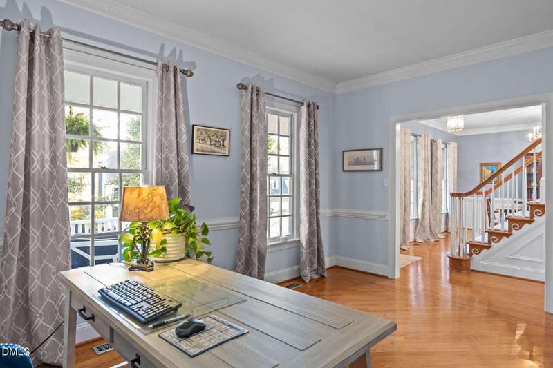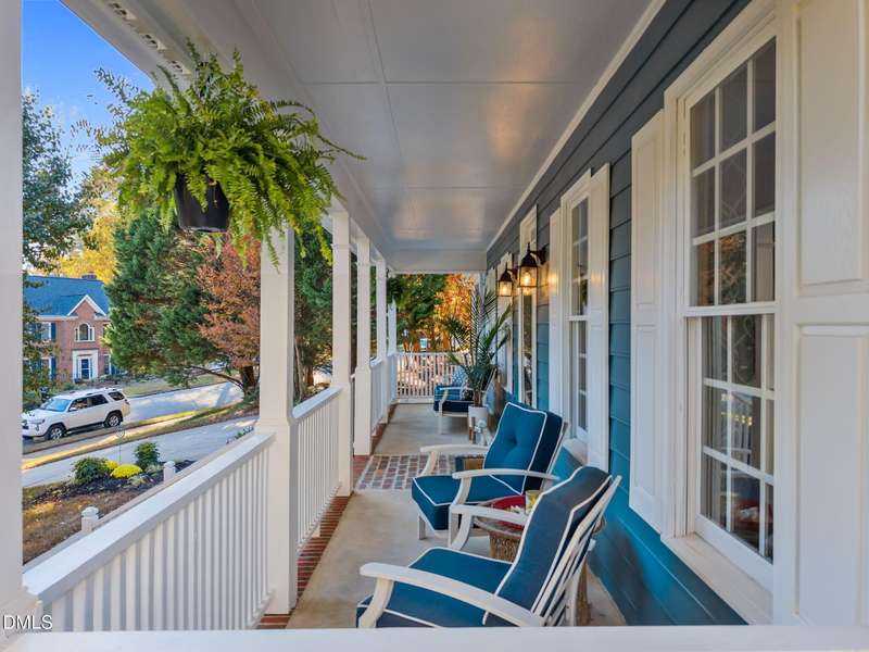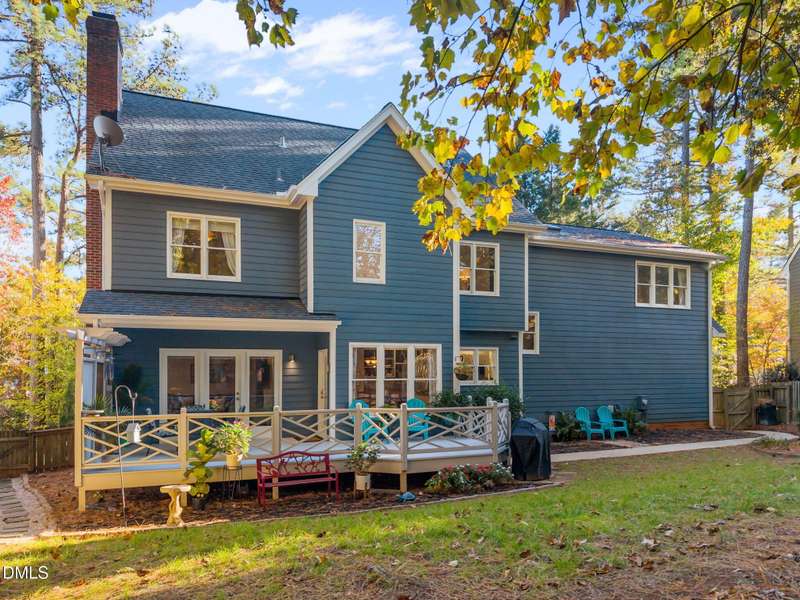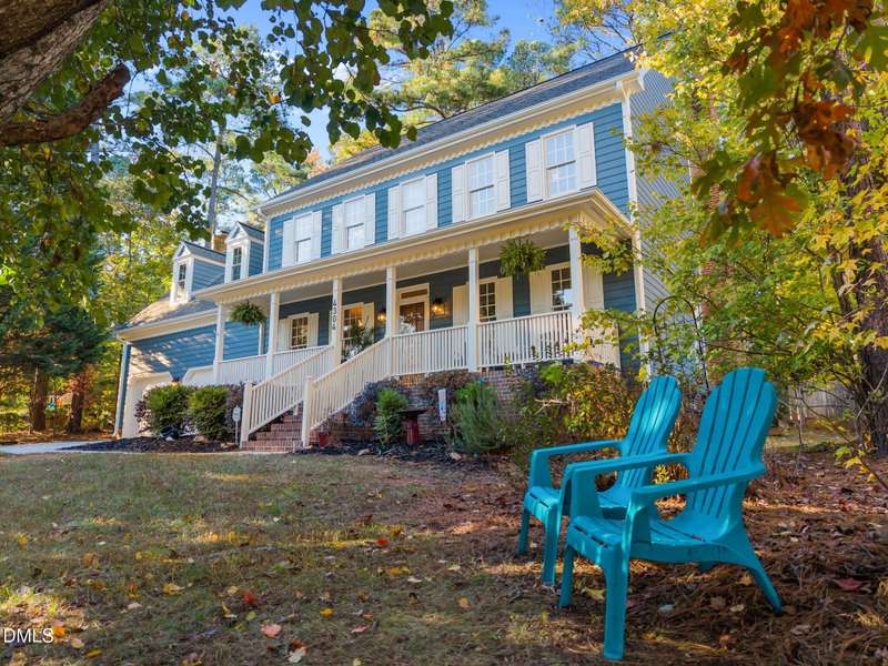Located in a highly desirable North Raleigh neighborhood and school district, this home welcomes you with a full-width front porch that sets the tone-warm, inviting, and full of charm. Inside, beautiful hardwood floors extend from the foyer throughout the main level. The layout includes a formal living room (or home office) and a formal dining room. The spacious kitchen boasts granite countertops, upgraded stainless-steel appliances, walk-in pantry and a bright breakfast area overlooking the private backyard. The cozy family room features a gas fireplace and built-in shelving. Upstairs (accessible via a rear staircase as well) you'll find four generously sized bedrooms and a large bonus room. The primary suite offers two separate closets and an ensuite bathroom with a double vanity, walk-in shower, jetted tub, and private water closet. A spacious hall bath with a tub/shower combo and double vanity, along with a huge laundry room, complete the second floor. The third floor includes a walk-up attic with excellent potential to finish and add additional square footage. The oversized two-car garage features extra pull-down storage. Step outside to a large back deck overlooking a fenced backyard-ideal for entertaining, relaxing, or enjoying the outdoors in complete privacy. Location convenient to Lake Lynn, shopping, dining with easy access to 540, 440, RDU and RTP!