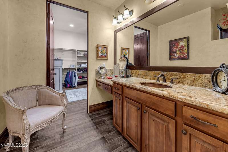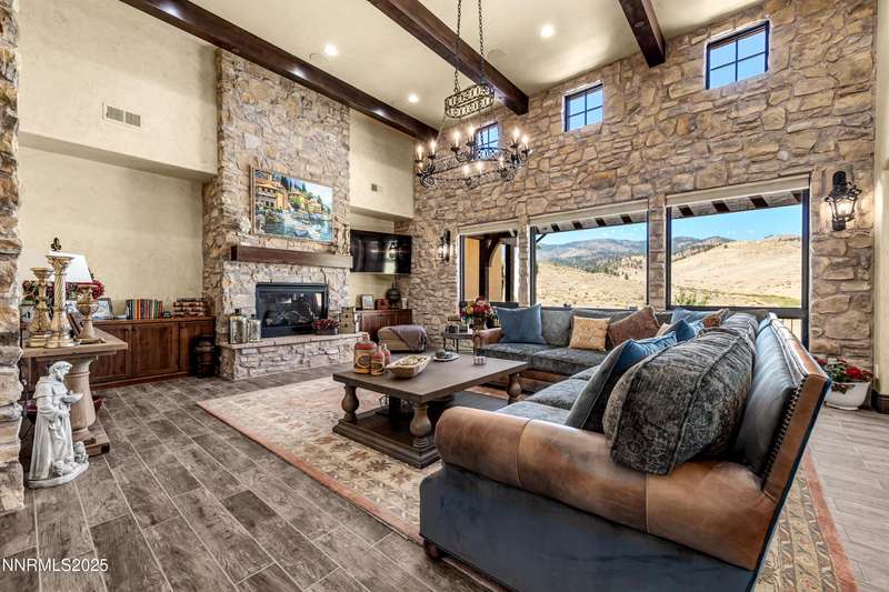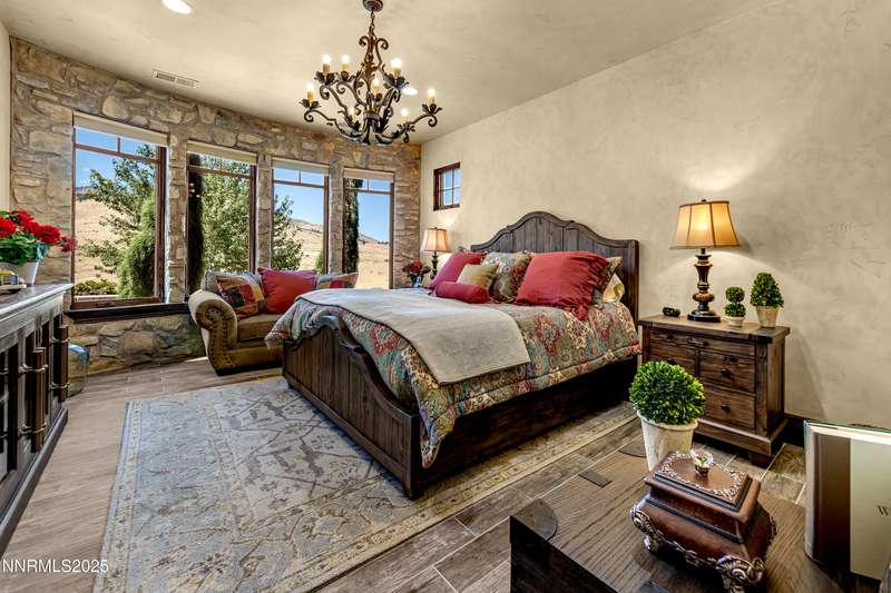 Tucked within the prestigious Villagio community, 3166 Vista Favoloso is a European inspired, private gated communtiy. This stunning Italian Villa home built in 2017, offers refined luxury and security in a tranquil and beautiful setting. This home features four spacious en-suite bedrooms, a casita, and a living area of 4,939 square feet. Thoughtfully designed with luxury spaces, including a courtyard, the primary bedroom, kitchen and great room on the main level, this home features plastered walls with unique faux painting. It combines villa elegance, timeless style, comfort and functionality. At the heart of the house is a spacious layout with high ceilings, a lovely gas fireplace, and a beautiful kitchen that caters to both casual meals and gourmet dining. The home has tile flooring throughout, knotty alder wood doors, encased alder windows, exquisite hand-forged lighting fixtures and spectacular stone walls. The wide hallways and wide doors make the space feel warm and comfortable. Located in the premier southwest area of Reno, this home offers luxury and stunning mountain views. This home is by far the most beautiful in the coveted Villagio complex. In addition to the separate guest quarters or office casita, this home features awe-inspiring elegance and upgrades in every room, along with a downstairs TV room, laundry area an a full-service bar. A covered patio with a stunning private mountain view on the lower level also enhances the property, making this home ideal for multigenerational and family living. A beautiful tile roof, upgraded double-pane windows, a low-maintenance, well-landscaped yet stunning outdoor yard, with just the right amount of lawn and space, along with an exquisite stucco and stone exterior, including water features and an outdoor fire pit, all contribute to the timeless appeal You will not be disappointed when you view this stunning property. No sign on property.