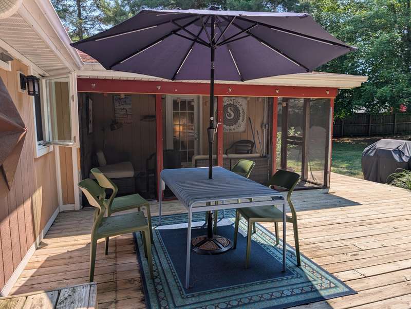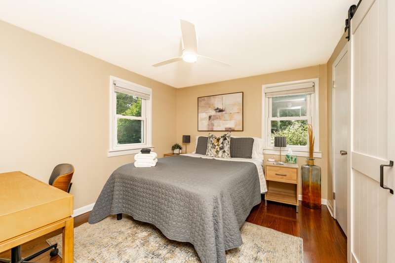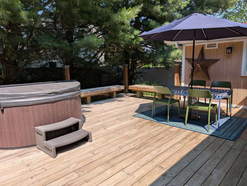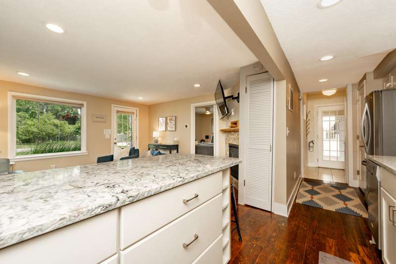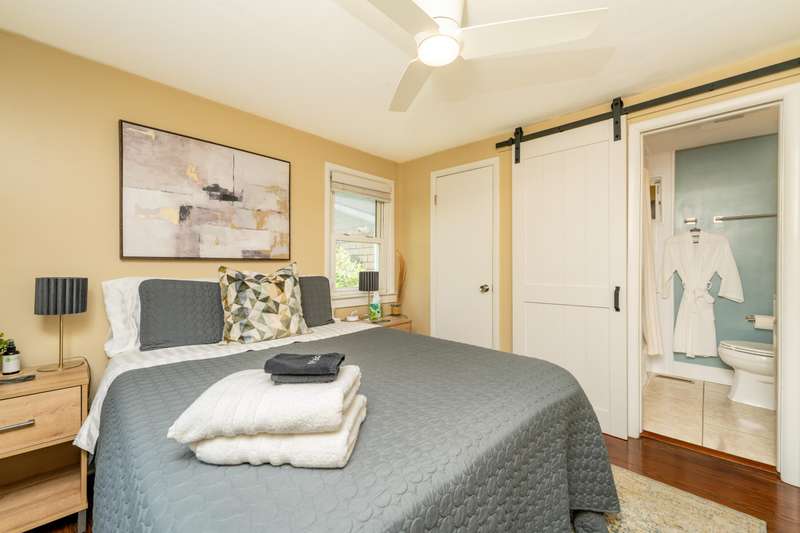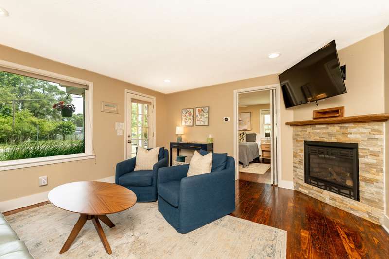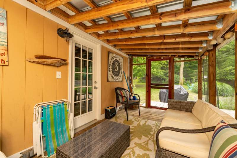 DON'T LET THE SMALL SIZE FOOL YOU!!! This 2 bedroom, 2 bath cottage feels SO much bigger. Bedrooms are separated for maximum privacy, It has an updated kitchen, original hardwood floors, gas fireplace and screened-in porch. The oversized one-car garage is a bonus but can also be converted into flexible living space. The back yard is HUGE and FULLY fenced in. Currently being used as a popular rental property ($74K in 2023 & $76K in 2024) but would make an excellent primary or secondary home with plenty of space for future additions. Walking distance to downtown Douglas - and an easy bike or short drive to Saugatuck. Reinforced the deck, added hot tub, installed new flooring in bedroom, new shower/tub, and new HVAC/AC since last purchase. Furnishings sold with the house.