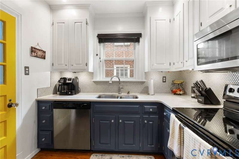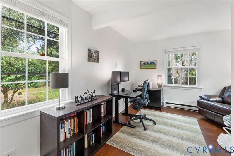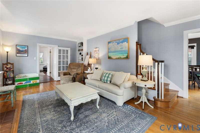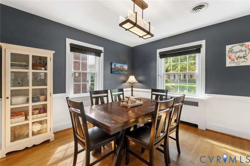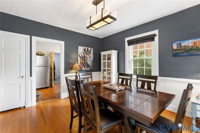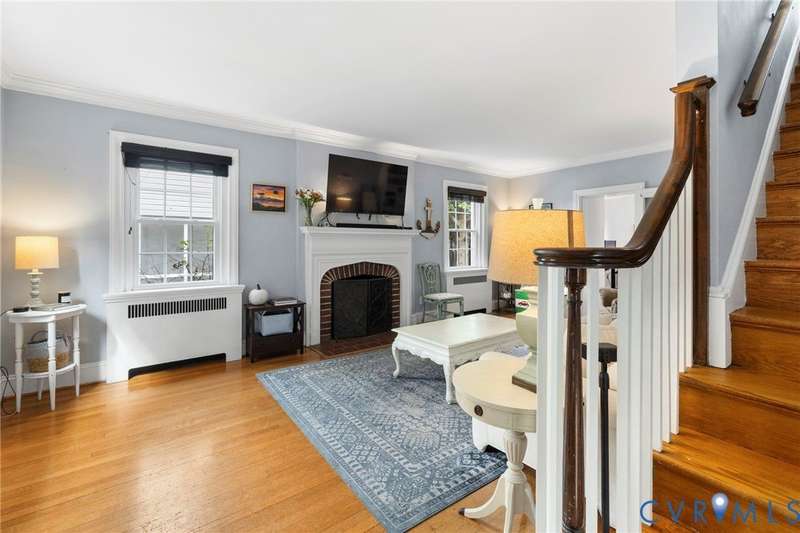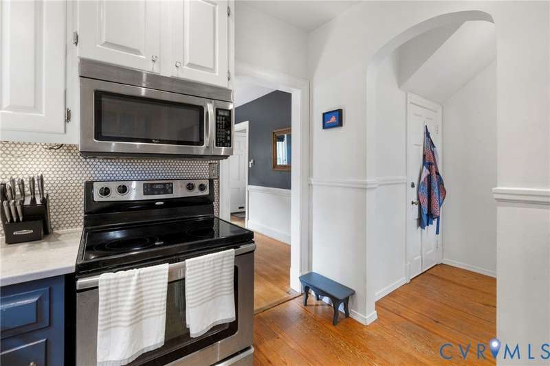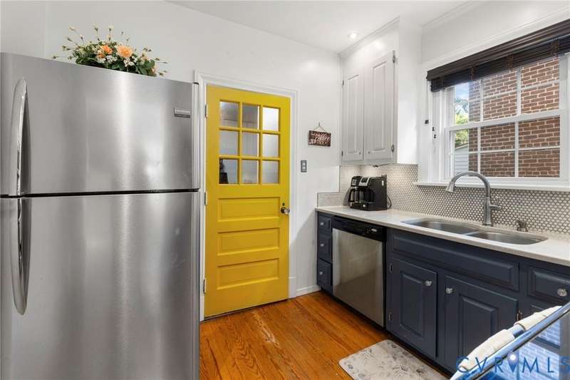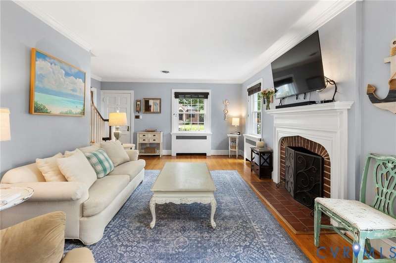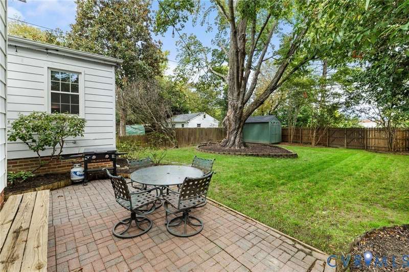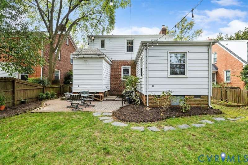 Welcome HOME! Come inside this Sauer's Gardens Cape and be welcomed by the warmth of hardwood floors and a living room anchored by a brick-surround fireplace with the original mantle. Natural light fills the space, and a glass window door leads into a flexible office or reading room. The dining room, with its rich wall color, offers a bright setting that flows easily into the renovated kitchen. Here, cottage charm meets modern convenience with stainless appliances, painted cabinetry, and a stylish backsplash. The first floor includes a desirable bedroom with cork flooring and an attached full bath, perfect for comfort and accessibility. Upstairs, discover a spacious primary suite, a second bedroom, and a tiled full bath that blends elegance with functionality. Built-in storage systems, replacement windows, and a new 2025 water heater installed to ensure efficiency and ease of living. Outside, the fenced backyard is designed for both relaxation and entertaining, featuring a brick patio, mature landscaping, and a stately tree that anchors the setting. Whether hosting gatherings, gardening, or simply unwinding, this outdoor space is a true extension of the home. A private driveway provides off-street parking and the potential for a future garage. Located near Willow Lawn, in the Mary Munford school district, with countless shops and restaurants, this home pairs character and convenience in one of Richmond's most sought-after neighborhoods.