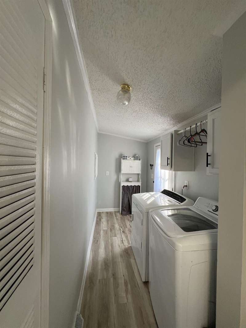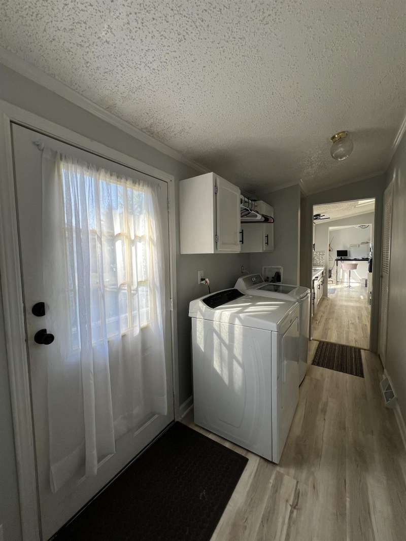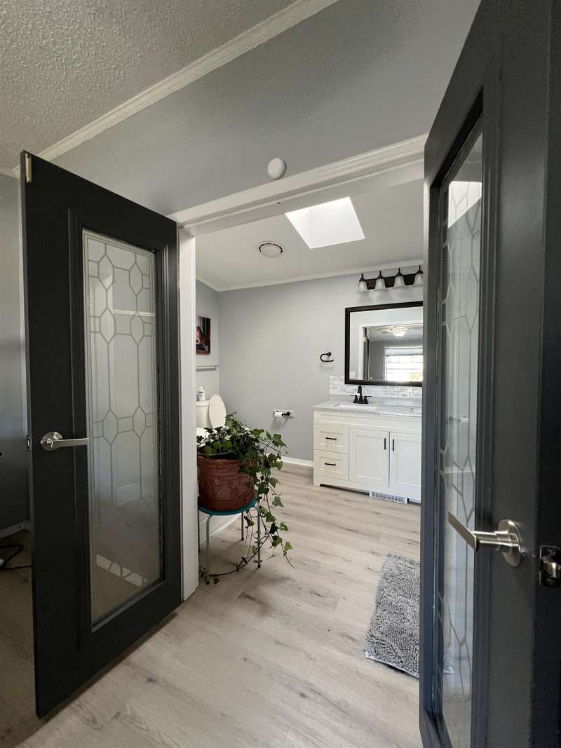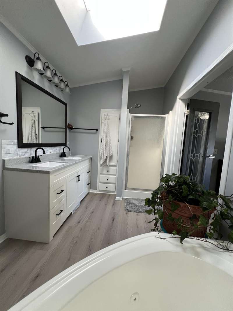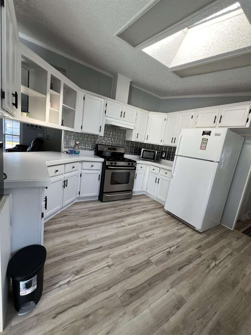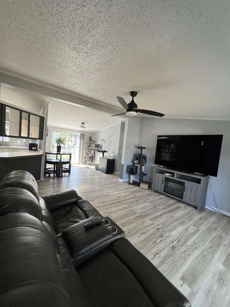 Beautifully Updated Open-Concept Mobile Home! This stunning 3-bedroom, 2-bath home is move-in ready and packed with upgrades! Step inside to discover a spacious open-concept layout with cathedral ceilings, newer vinyl flooring throughout, and fresh paint. The updated kitchen and remodeled bathrooms add a modern touch, while the master suite offers a private retreat complete with a luxurious jetted tub and walk-in shower. Enjoy peace of mind with recent improvements, including a new roof and siding (June 2025), plus a newer furnace and central air for year-round comfort. Outside, you'll find a beautifully fenced yard, a large cement patio—perfect for entertaining—and a 2-car detached garage with an expansive concrete driveway. Don’t miss this opportunity to own a beautifully maintained and stylish home with all the extras!