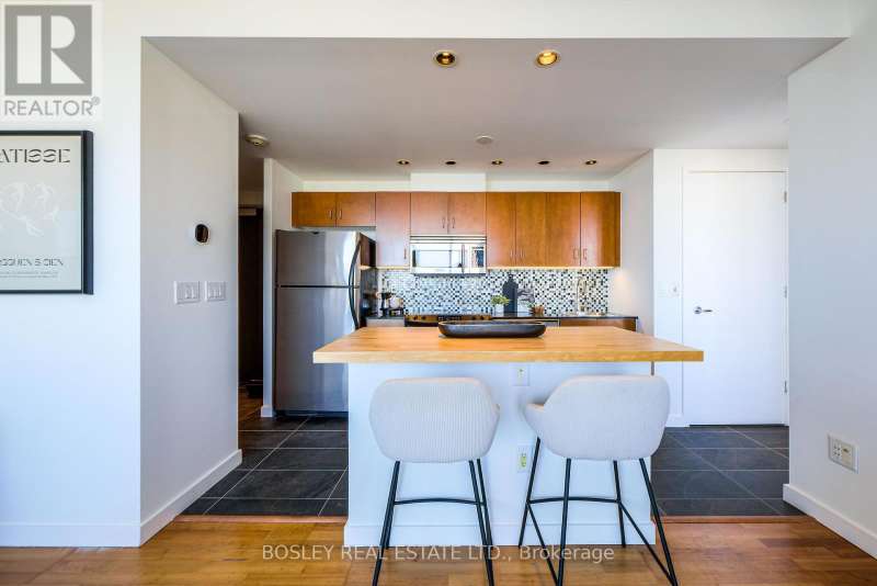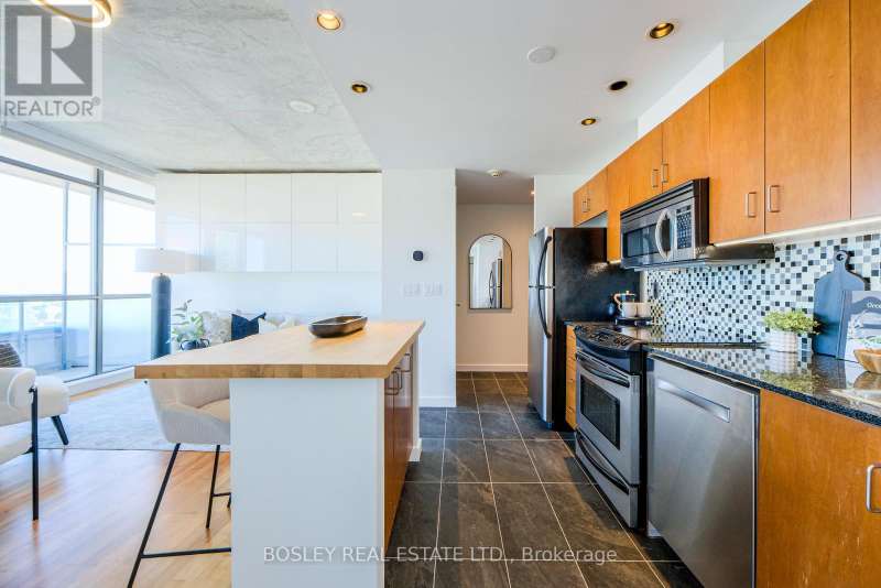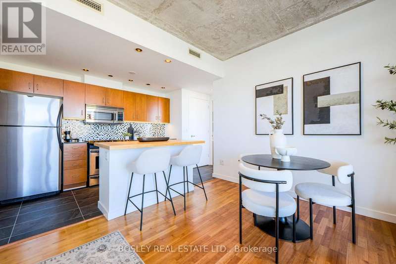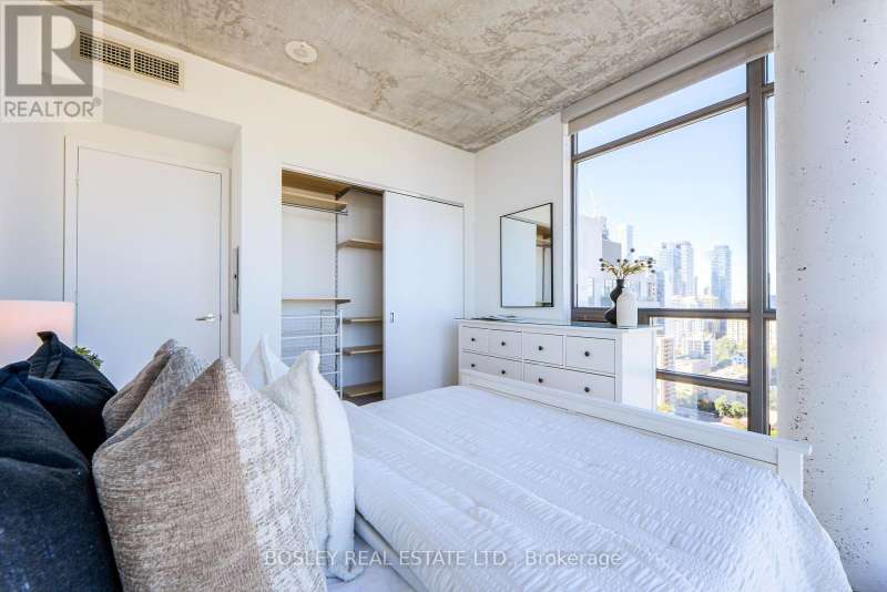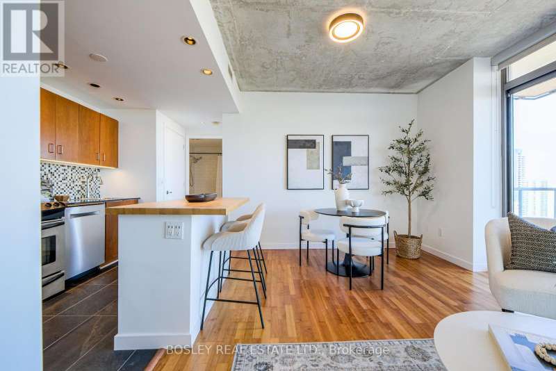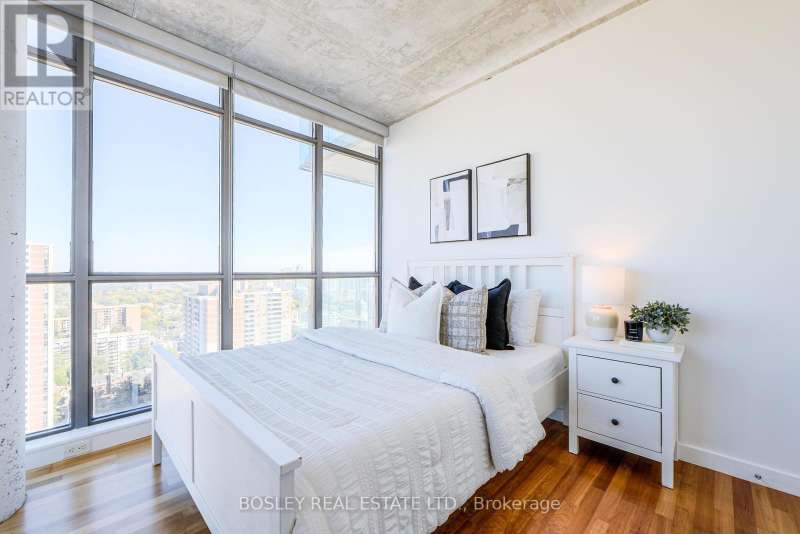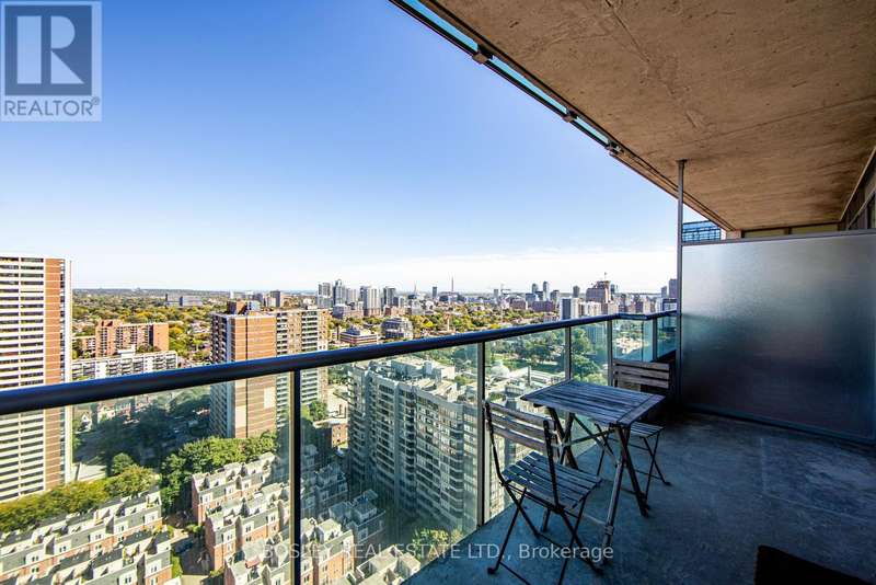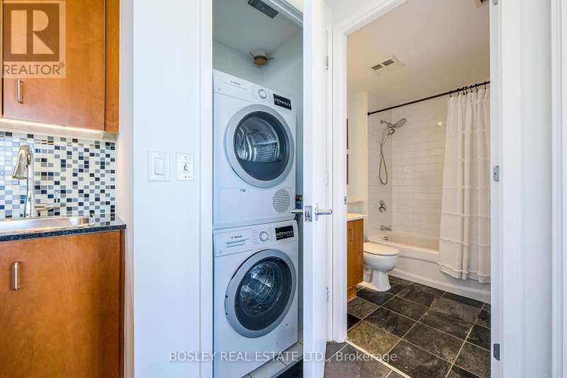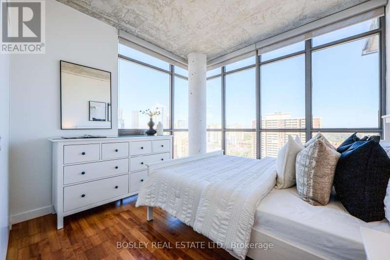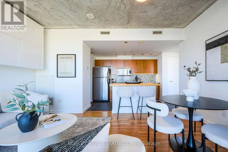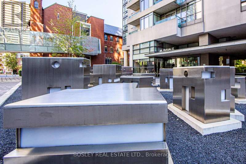 Impeccably maintained 1-bedroom corner suite at the award-winning Radio City Condominiums, offering 556 sq ft of smartly designed living with no wasted space. This bright and airy home boasts soaring 9' ceilings, floor-to-ceiling northeast-facing windows, and a spacious open balcony (96 sq ft) showcasing panoramic city views. The open-concept layout features a modern kitchen, generous living area, and thoughtful updates throughout - perfect for both everyday living and entertaining. Radio City has undergone several tasteful updates over the years, including a stunning new lobby, updated hallways and elevators, a well-equipped and bright weight room and adjacent cardio room, modern party/meeting room, landscaped entrance, and two lush courtyards. Residents benefit from 24-hour concierge service, year-round heating and cooling, bike storage, and a welcoming, pet-friendly community. Ideally located in the heart of downtown, this suite unmatched convenience with the TTC, Loblaws, Church Street, and a vibrant array of dining, shopping, and entertainment all just steps away. One underground parking space is included, making this a truly exceptional opportunity to own a piece of downtown living at its best.