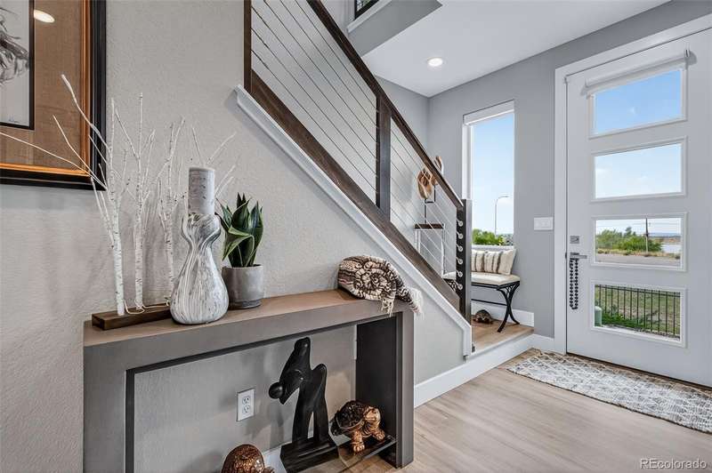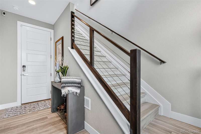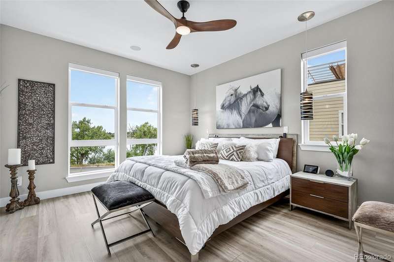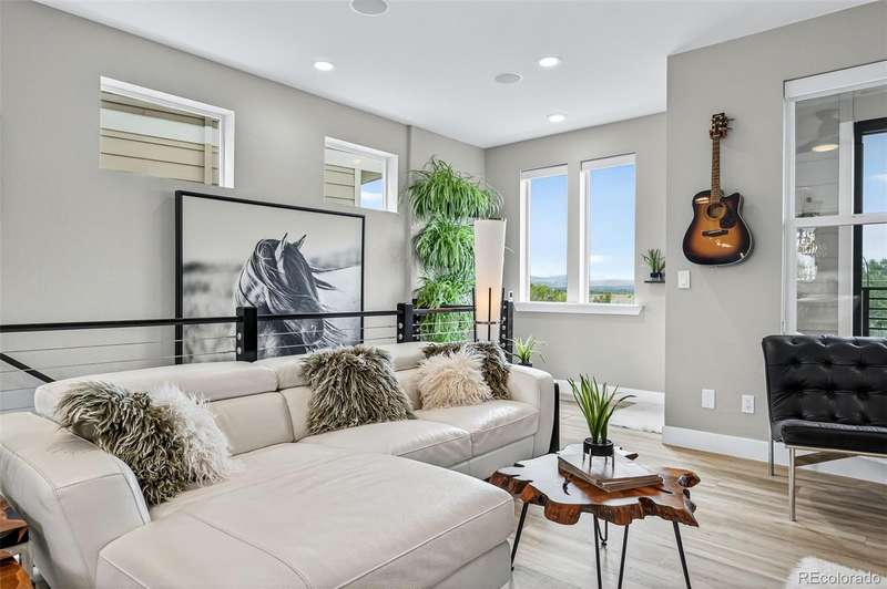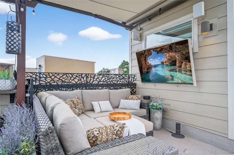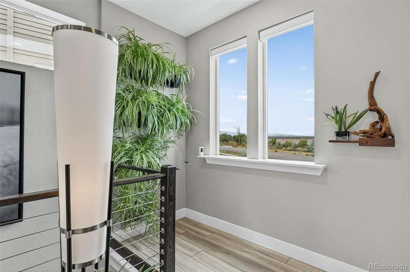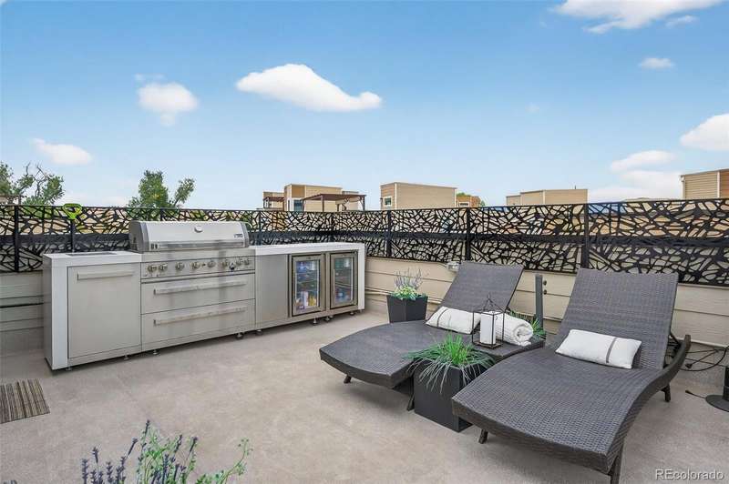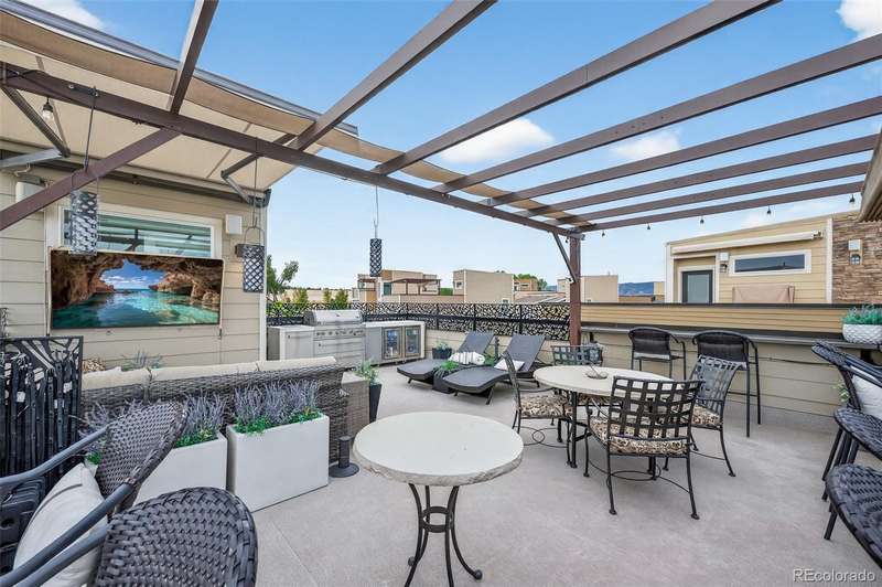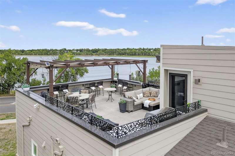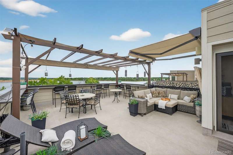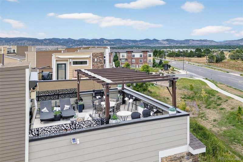 Welcome to your dream retreat in Highlands Ranch. This stunning 2-bedroom, 4-bath residence offers panoramic Front Range views, refined finishes, and a rooftop oasis that redefines Colorado living.Step inside to discover luxury vinyl plank flooring throughout, leading to a gourmet kitchen thats both functional and fabulous. Featuring upgraded appliances, a gas range, convection microwave, suede quartz countertops, touchless faucet, and an extended island perfect for entertaining.The expansive primary suite is a sanctuary of comfort, showcasing breathtaking mountain vistas, a spa-inspired bathroom with oversized shower, and a custom-designed walk-in closet complete with built-in shelving and cabinetry. A rapid-delivery hot water system ensures instant comfort.Designed for modern living, the home includes a surround sound system in the living room with integrated speakers on every levelincluding the rooftop. A private porch off the living room features a retractable screen and serene lake and mountain views, ideal for morning coffee or evening relaxation.Upgrades abound: a powder bath adjacent to the main-level office, LVP on the stairs with sleek cabling, a utility sink and cabinetry in the garage, and professional landscaping with lush grass. A recent remodel on Level 2 added two front-facing windows for enhanced natural light and mountain views, plus a second access door to the porch and additional cabling for tech-savvy living.The rooftop is your personal sanctuaryperfect for entertaining or unwindingwith a full outdoor kitchen (grill, stove burner, sink, two refrigerators), Sunbrella retractable awning, wraparound bar rail, pergola with shade and lighting, privacy shielding, misting system, jellyfish lighting, and added water supply. Whether hosting guests or enjoying a quiet sunset, or cooking a tasty breakfast, this space delivers unmatched ambiance. This home has it allluxury, location, and lifestyle.