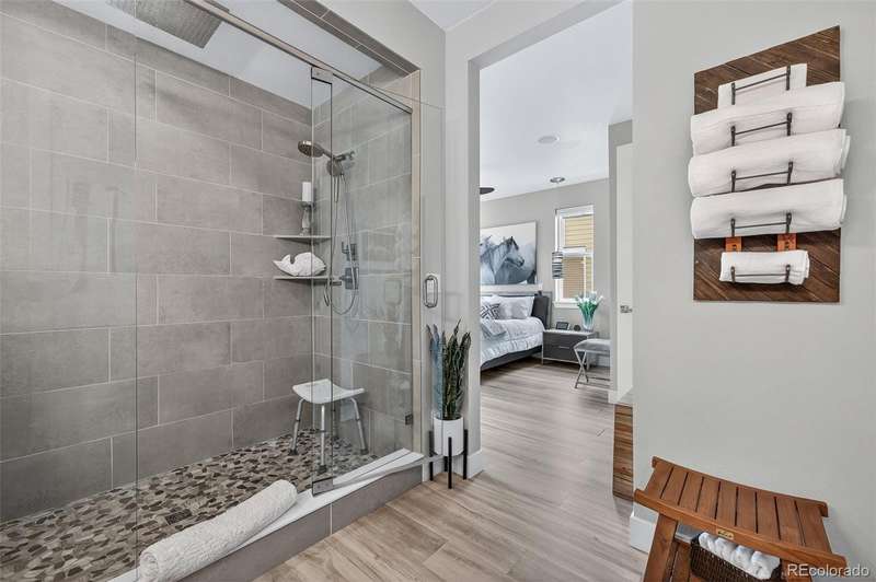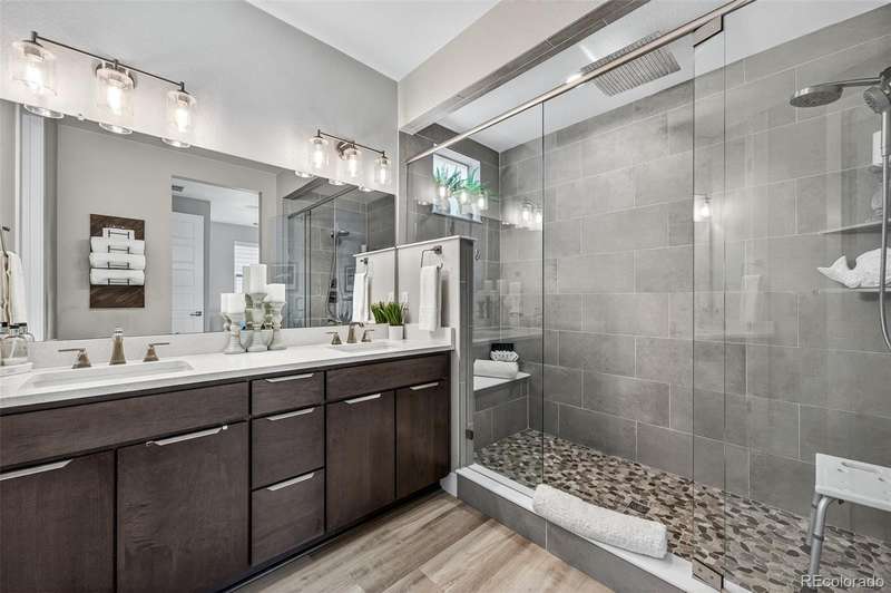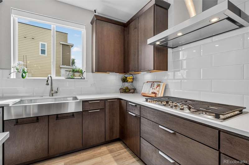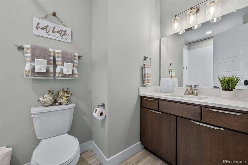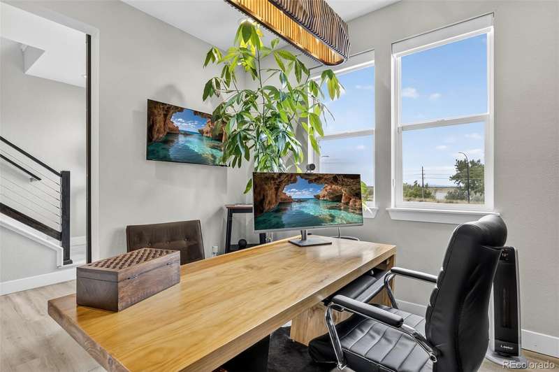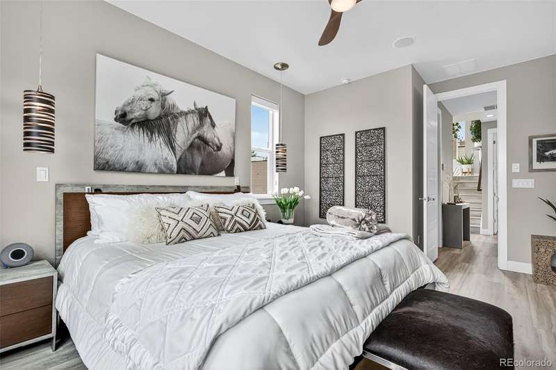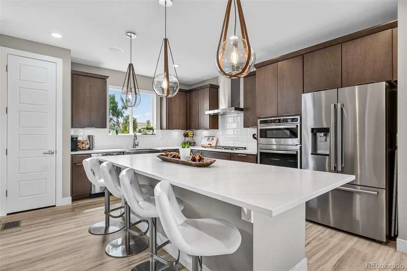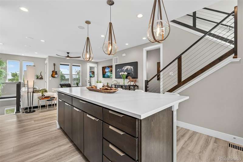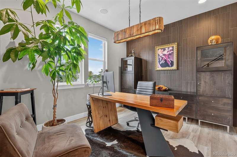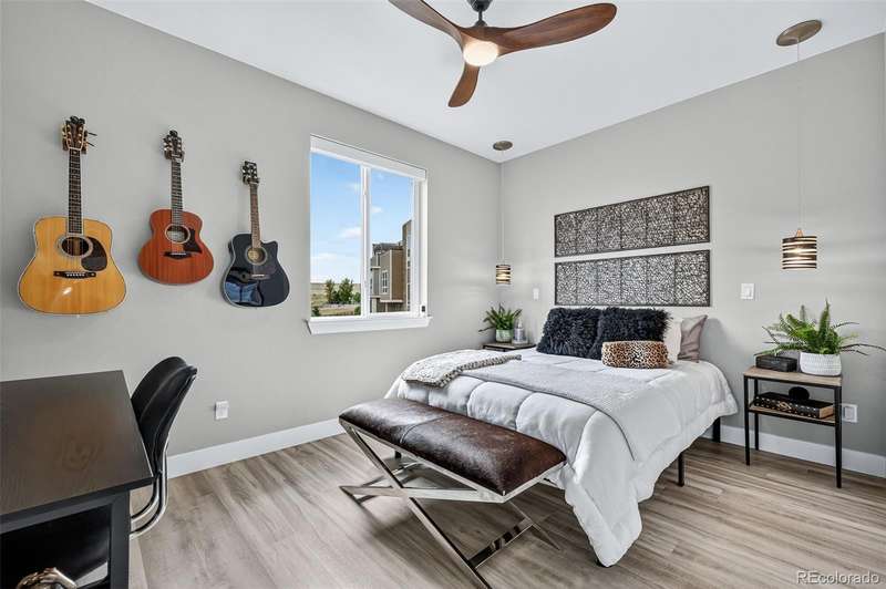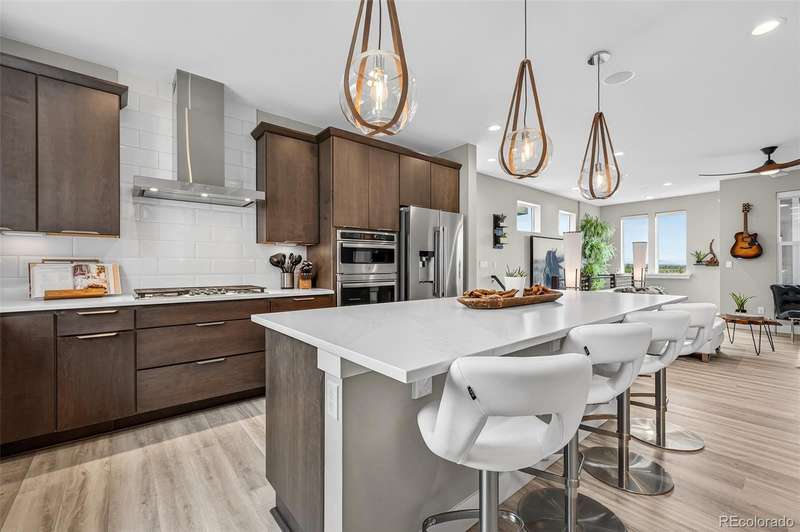 Welcome to your dream retreat in Highlands Ranch. This stunning 2-bedroom, 4-bath residence offers panoramic Front Range views, refined finishes, and a rooftop oasis that redefines Colorado living.Step inside to discover luxury vinyl plank flooring throughout, leading to a gourmet kitchen thats both functional and fabulous. Featuring upgraded appliances, a gas range, convection microwave, suede quartz countertops, touchless faucet, and an extended island perfect for entertaining.The expansive primary suite is a sanctuary of comfort, showcasing breathtaking mountain vistas, a spa-inspired bathroom with oversized shower, and a custom-designed walk-in closet complete with built-in shelving and cabinetry. A rapid-delivery hot water system ensures instant comfort.Designed for modern living, the home includes a surround sound system in the living room with integrated speakers on every levelincluding the rooftop. A private porch off the living room features a retractable screen and serene lake and mountain views, ideal for morning coffee or evening relaxation.Upgrades abound: a powder bath adjacent to the main-level office, LVP on the stairs with sleek cabling, a utility sink and cabinetry in the garage, and professional landscaping with lush grass. A recent remodel on Level 2 added two front-facing windows for enhanced natural light and mountain views, plus a second access door to the porch and additional cabling for tech-savvy living.The rooftop is your personal sanctuaryperfect for entertaining or unwindingwith a full outdoor kitchen (grill, stove burner, sink, two refrigerators), Sunbrella retractable awning, wraparound bar rail, pergola with shade and lighting, privacy shielding, misting system, jellyfish lighting, and added water supply. Whether hosting guests or enjoying a quiet sunset, or cooking a tasty breakfast, this space delivers unmatched ambiance. This home has it allluxury, location, and lifestyle.