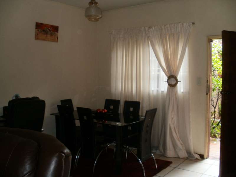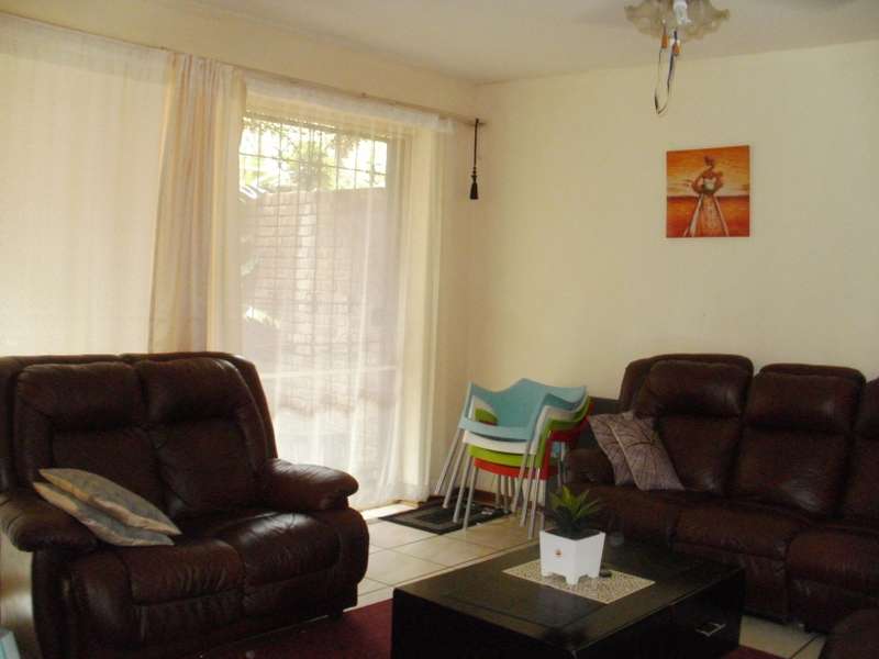IF SECURITY IS IMPORTANT!! Then this this 3 bedroom 2 bathroom of which one en-suite, ground floor property with an open plan lounge dining room and a fairly large kitchen, is just right for you. The ground fllor flat let is situated in a quiet sought after area of Bronkhorstspruit and close to a local high school and primary school and not far from the local golf course and accross the road from the local tennis and bowls club. Easily access to the complex which is electric fenced with strict automatic entrance control. Further improvements a lockable garage a patio and small garden to maintain. LOOK NO FURTHER!!