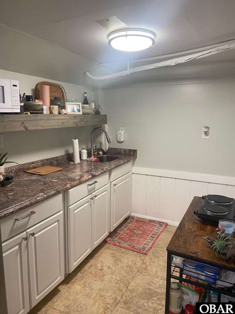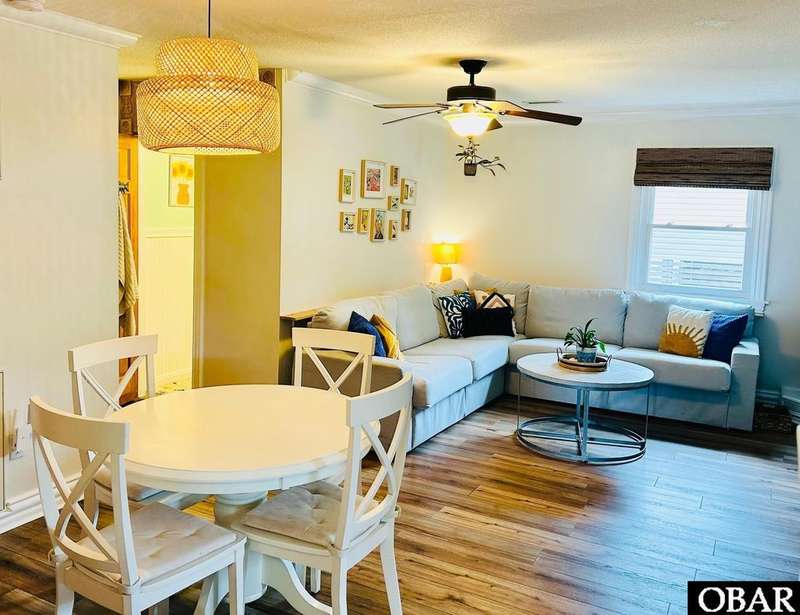 Charming Totally Renovated Outer Banks Cottage in the Heart of Kill Devil Hills! Step into Coastal Perfection with this adorable three bedroom, two bath home. En-Suite has bath with tub/shower and walk-in closet - a roomy private oasis. The home sparkles with fresh updates - NEW paint, flooring and modern lighting! New metal fortified roof 2024 for peace of mind for years to come! The open concept living flows seamlessly to the huge deck for entertaining indoors and out with the salt kissed breezes. Downstairs, features a versatile FLEX space ideal for En-Law/Guest Suite, home office, playroom... Make it your own!!! STORAGE, STORAGE, STORAGE! Enjoy the outdoor retreat with an outside shower, firepit to gather under the stars, spacious conditioned storage, & workshop. Located just steps away from walking/biking paths to the Wright Brothers Memorial National Park, this home keeps you close to all the fun - restaurants, shops, local activities, and of course beaches only minutes away! Centrally positioned in the vibrant heart of KDH, this cottage is ready to deliver the ultimate OBX lifestyle!
