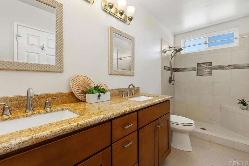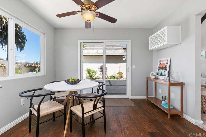 Charming detached home in gated St Malo Village community. WEST OF THE I-5 freeway. Close to beautiful beaches, shopping, restaurants & schools. Kitchen has been remodeled with cabinets, countertops, recessed lighting, appliances. Windows replaced, newer flooring, upgraded backyard landscaping, replaced water heater system. Vaulted beamed ceilings. Peaceful community park. Move-in ready. Hurry, these don't come up often.