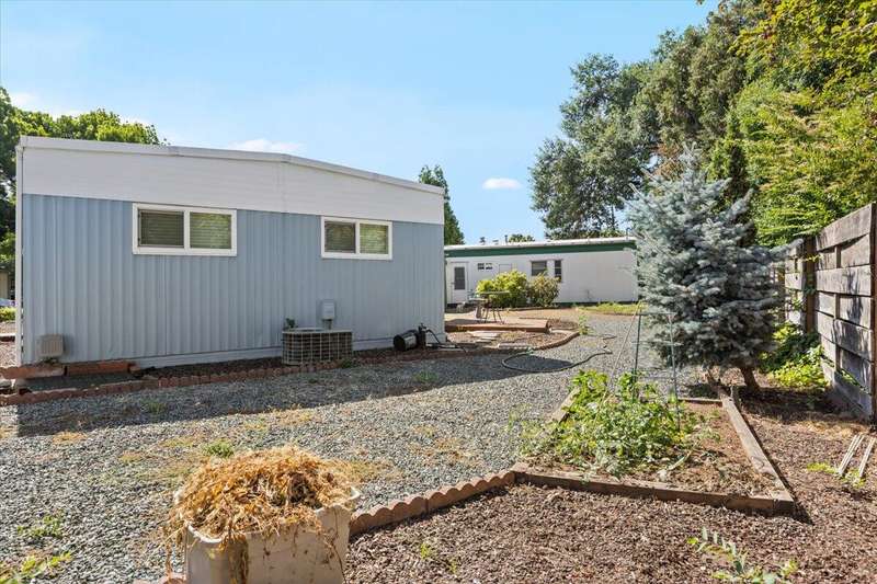 Charming and Spacious Updated Mobile Home in a Vibrant 55+ Community. This beautifully updated and meticulously maintained mobile home offers generous living space filled with natural light. Recent upgrades include a newer roof, attractive laminate flooring, and modern kitchen appliances—featuring a gas stove, microwave, stainless sink, and garbage disposal. Enjoy year-round comfort with central heat and air. The large backyard is thoughtfully landscaped with edible plantings, perfect for relaxing or gardening. Additional highlights include a spacious storage area, an attached carport, and access to a huge clubhouse featuring a game room, free wireless internet, and plenty of space for social gatherings. Located in a friendly, welcoming community that hosts regular potlucks and game nights, this home offers not just a place to live—but a lifestyle.