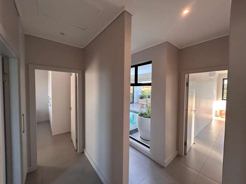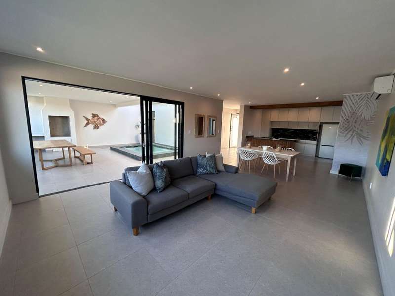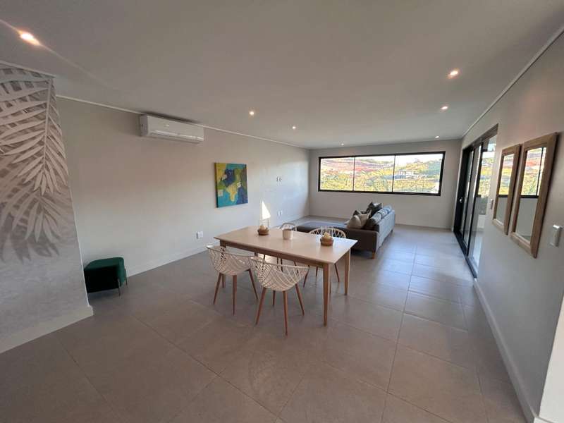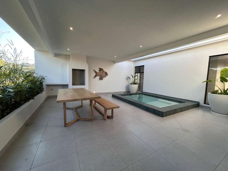 Please contact the agent prior to the showday to arrange access to the estate This newly completed single-level home in Mbali Loop, Zululami, offers contemporary coastal living at its finest. Designed with both functionality and style in mind, the home features an immaculate open-plan kitchen complete with solid stone countertops, a gas hob, sleek wooden slat detailing, and a separate scullery. The spacious dining and lounge areas seamlessly connect to a central covered patio through triple sliding doors, creating a perfect indoor-outdoor flow ideal for entertaining. The patio includes a private swimming pool, providing a tranquil space to relax and unwind in the heart of this sought-after estate. Accommodation includes three bedrooms and two full bathrooms, each with both bath and shower. The main bedroom is a luxurious retreat, featuring a large en-suite bathroom with a dedicated changing area and direct access to the lush garden through sliding doors, inviting the outdoors in for a peaceful start and end to each day. Full access to all Zululami and Seaton Estate facilities including, private beach access, beach clubhouse, sports pavilions, kids play areas, kids pools with slides, nature trails, equestrian facilities, making this a lifestyle second to none