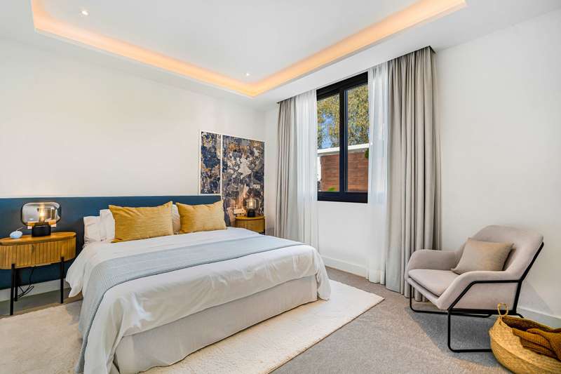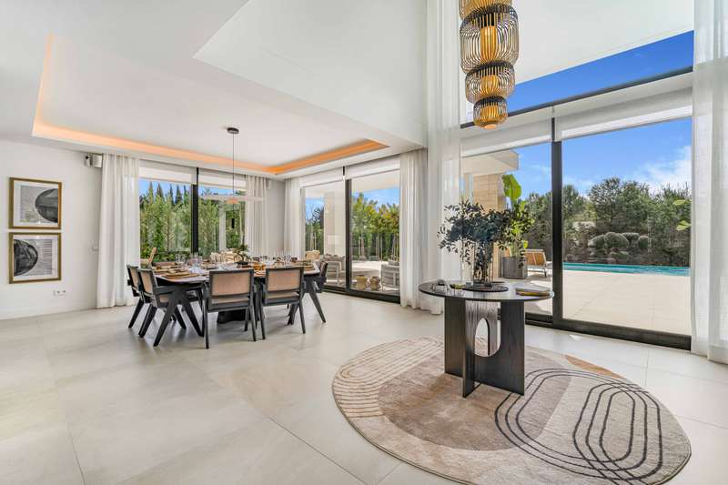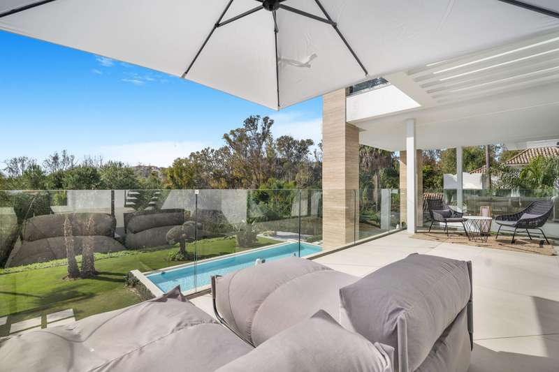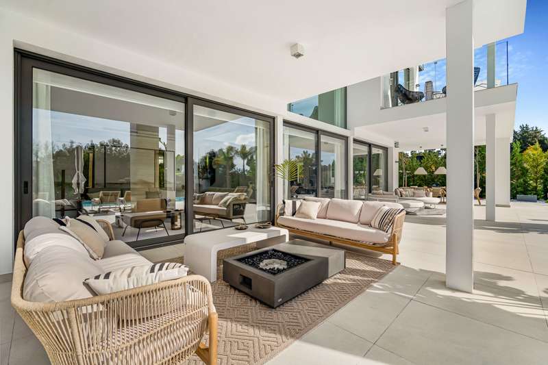 Welcome to Villa Alba Mar – a brand-new, south-facing six-bedroom villa in the prestigious gated community of Lomas del Marques, just above the iconic Puente Romano on Marbella’s Golden Mile. A prime location just a short walk from the beach and perfectly positioned between Puerto Banús and Marbella Old Town. This stunning property offers: A beautifully landscaped private garden with a heated swimming pool Spacious open-plan living and dining areas with seamless access to the outdoors A sleek, fully equipped designer kitchen One guest suite on the main level Upstairs you’ll find: Two elegant guest suites A luxurious master suite with a walk-in wardrobe, private terrace, and access to a spectacular rooftop solarium complete with sea views, a jacuzzi, and an outdoor kitchen The lower level is designed for leisure: An entertainment room with pool table, bar, and lounge Two more guest suites Direct access to a private garage with space for three vehicles and EV charging points Extras inclu
