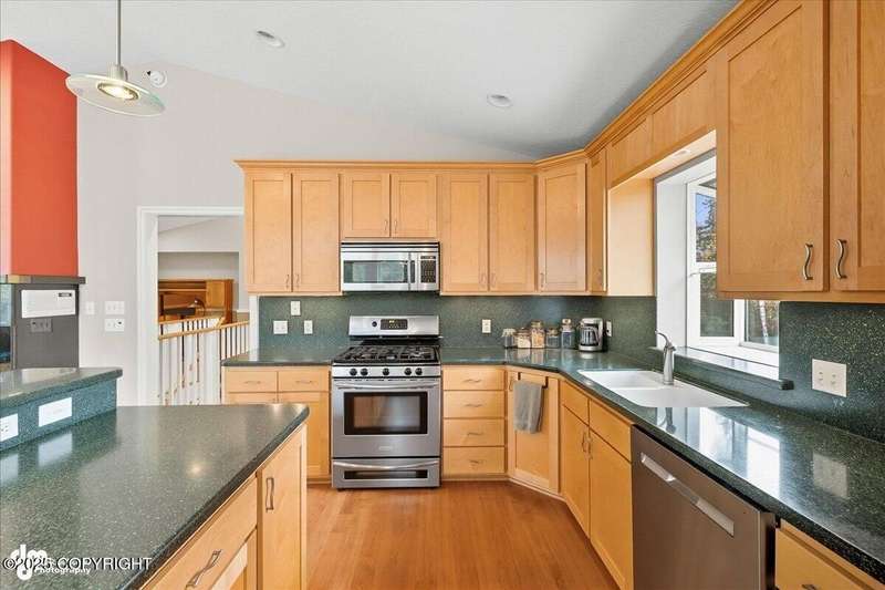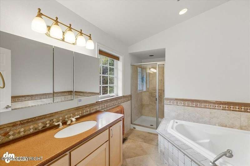 Custom house with amazing landscaping front & back! Inside is 3 beds, 2.5 baths + an office w/ egress. Huge windows let in tons of light, 3 Trex decks, travertine tile & a cozy gas fireplace. The main suite has a soaking tub & large walk-in closet with private deck. Partially fenced yard w/ an apple tree & lilacs! Garage has tons of shelving & a utility sink. Two-story reverse layout!