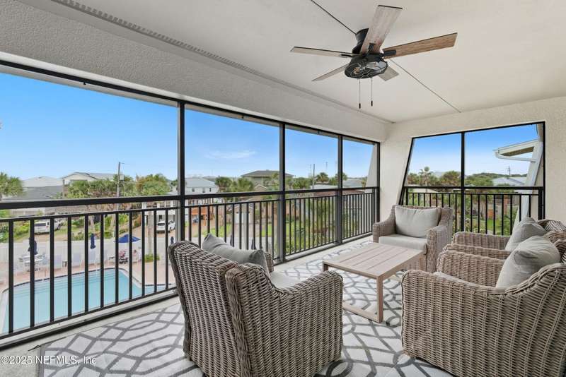 Welcome to the rarely available and highly sought after Island South Condos! Walking distance to the pier, St Augustine Beach, and so much more! This beautifully maintained top-floor 2BR/2BA home offers the perfect blend of comfort and coastal charm. The open layout flows from the updated kitchen with stainless-steel appliances into a bright living and dining area that opens to a spacious screened balcony with ocean and pool views. The primary suite features an ensuite bath and walk-in closet, while the split floor plan provides privacy for guests. Enjoy gated beach access to the non-driving shores of St. Augustine Beach, plus community amenities including a large pool, sundeck, picnic area, and assigned parking. Perfect for full-time living, a vacation home, or short-term rental?just minutes from local dining, shopping, and the historic downtown district.