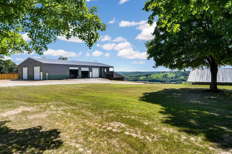 Enjoy the paved & scenic drive to this Amazing Million Dollar View property! Large home with 3 large bedrooms & 2 full baths & the Mega-Shop built in 2009 all this perched on 3 level acres. Home has Brand new roof, soffits & guttering installed in July! Inside the home you will immediately feel at ease with the wide-open concept Living, dining & kitchen areas- all designed for your full enjoyment. You will love the real wood pine floors, & Knotty-Pine cabinetry, not to mention the 4'' thick slab countertops, real cedar wood trim throughout the home & the striking fireplace mantle, all custom made from wood harvested on the property. The huge Stone fireplace has a gas insert making it cozy all winter! Down the hall are 4 nice size bedrooms (1 non-conforming does not have a window). Currently used as a office & is plumbed for 1/2 bath) Enjoy the extra big tub in the huge Main bath! The super-sized laundry room is just off the kitchen & is plumbed for another 1/2 bath. Owners have ensured your comfort with a 400-foot deep private well, new 50-gal hot water heater. Large Mudroom/ Storm shelter safe room provides peace of mind, Home is easy to heat & cool all year long. Yet, they were always thing ahead & the home is already ducted for Central HVAC, plus a Chimney in place if you enjoy the added warmth of a pellet or wood stove. You will be in awe of the Beautiful and peaceful setting with a 1.5-acre m/l pasture that is perfect for horses or livestock. 3 freeze proof hydrants ensure your garden & animals have all the water they need. Home has been loved & well maintained. This home was built with the foundation to add a 2nd level, just in case you need an In-law apartment or always dreamed of a large home office or showroom. Fully fenced property with extra parking.