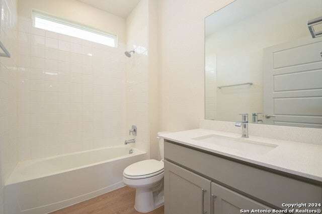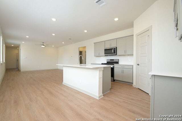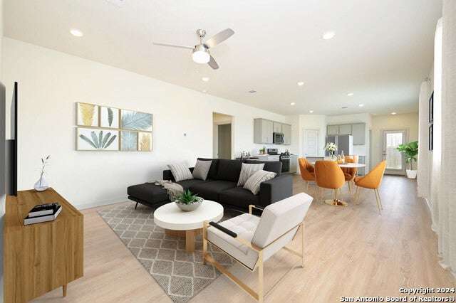 This Traditional home in Millbrook Park at 1530 sq. ft. of living area is a 3 bedroom, 2 bathroom, with a 2 car garage, single story home. As you enter the foyer you walk into the spacious family room open to the kitchen and dining area. The kitchen features Quartz countertops, decorative tile backsplash, black and stainless Microwave and Gas Stove and a kitchen island. The secondary bedrooms are located off the dining area. The private Master Bedroom is located off the kitchen and includes a huge walk-in closet and a walk-in shower. This home also features a covered patio and full sod and irrigation system and is also fully fenced. There will only be one neighbor to the left side of the home, since it is on a corner lot and a walk trail by the back side of the home.