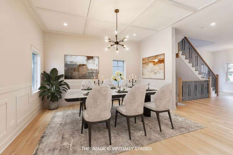 **$25,000 Closing Cost credit with accepted contract by 11/30/2025!**Prepare to be wowed by this stunning new construction luxury home-offering over 4,000 square feet of beautifully designed living space complete with 5 spacious bedrooms, and 4 1/2 elegant bathrooms! With soaring nearly 10 foot ceilings on both the first and second floors, this home feels grand, open, and filled with natural light at every turn. The heart of the home is a dream kitchen made for both everyday living and entertaining, featuring premium Thermador appliances including a 6-burner Thermador range, custom cabinetry, and a striking waterfall-edge island with seating for casual dining. The kitchen flows seamlessly into a bright and airy family room with a cozy gas fireplace, opening right out to a private outdoor patio-perfect for entertaining or relaxing evenings under the stars. You'll love the dining room with coffered ceilings and warm white oak hardwood floors that add elegance and charm throughout the main level. A smartly designed mud room with sink and tons of storage connects directly to the attached two-car garage, with room for two more cars in the driveway. Upstairs, discover 4 large bedrooms and 3 full bathrooms, including two en-suite bedrooms! The luxurious primary suite is a true retreat with dual walk-in closets, a spa-like bath with soaking tub, glass-enclosed shower, and bidet-ready outlets. The second-floor laundry room adds everyday convenience. The fully finished basement expands your living space with a 5th bedroom and 4th full bathroom, and a flexible area perfect for a rec room, home gym, studio, or guest suite. This home has it all-style, space, comfort, and top-quality finishes throughout. Move-in ready and available now-don't miss your chance to call this exceptional property home! **LAID-BACK HOA** **This HOA is designed for simplicity and peace of mind. It covers landscaping, the electric bill for lanterns on the property, and common area insurance. These are single-family homes with only the most MINIMAL HOA RULES AND REGULATIONS, creating a relaxed and homeowner-friendly environment. Because the HOA's responsibilities are so limited, we do not anticipate substantial increases in dues over time** Easy access location: 7 minute drive to Metra stop, 8 minute drive to Edens expressway. Walk to parks and forest preserve; easy drive to shops, restaurants and more.