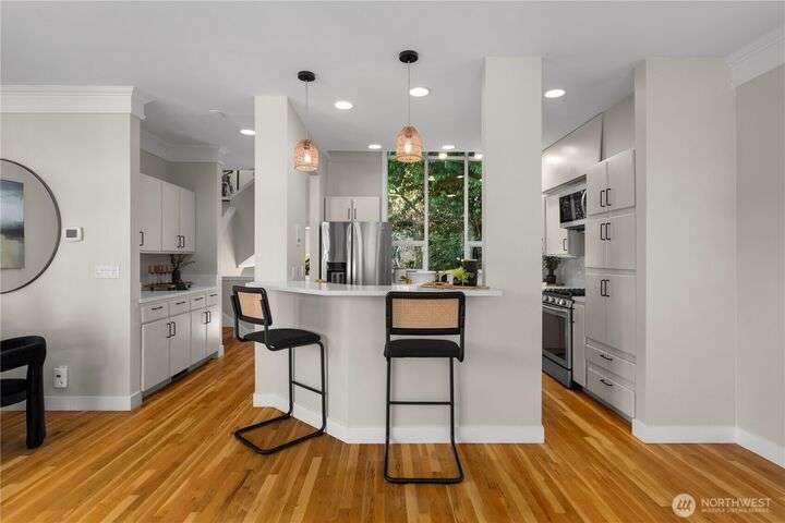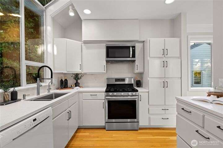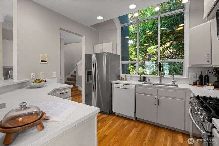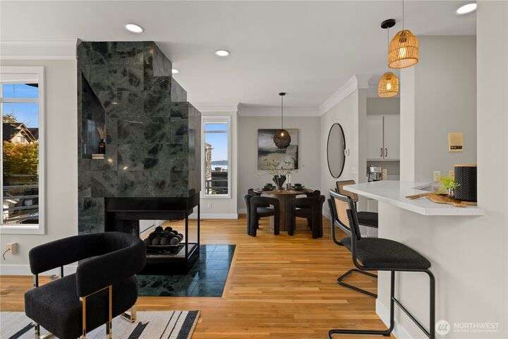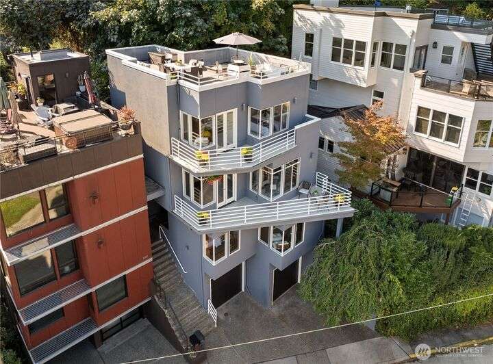 Located 1 block from the lake and everything Leschi has to offer, this single-family, detached view home perfectly captures the essence of Leschi living, w/ stunning views from nearly every room and level. Natural light floods the spacious interior, where each floor opens to breathtaking vistas, whether you're relaxing in the living room or enjoying morning coffee from the expansive rooftop w/ panoramic views stretching from Bellevue to the Cascades. The open-concept living spaces feature an updated kitchen, dining area and a statement fireplace. The primary suite is a private retreat w/ a sitting area, walk-in closet and 5-piece ensuite bath. Central AC, a large laundry room, 2 car garage & bonus storage complete this one-of-a-kind home.