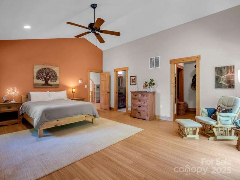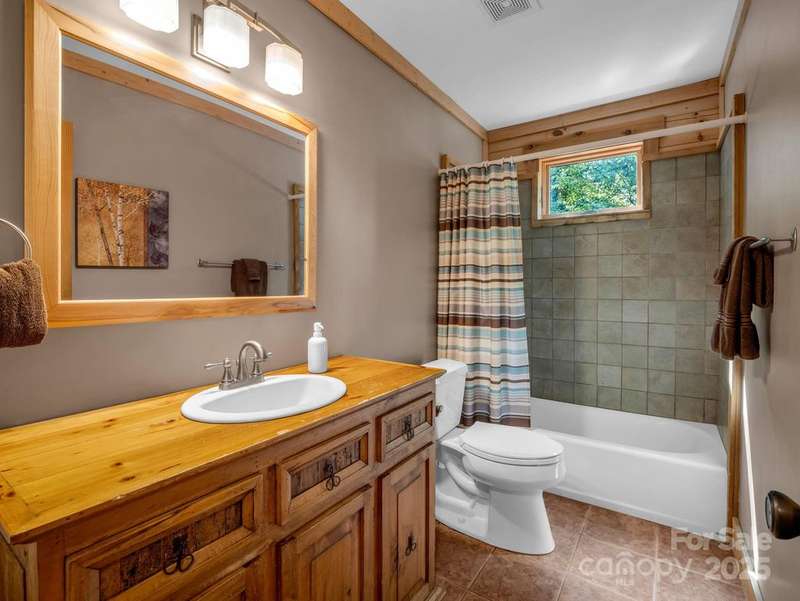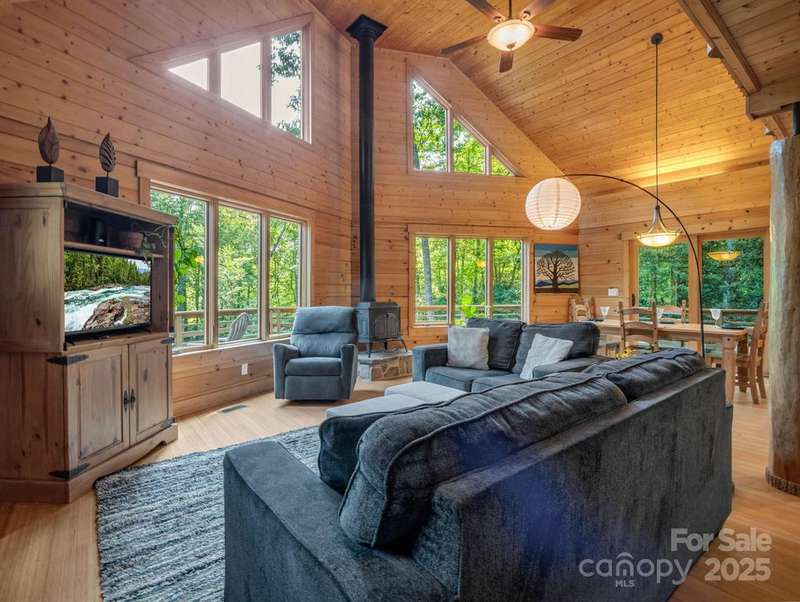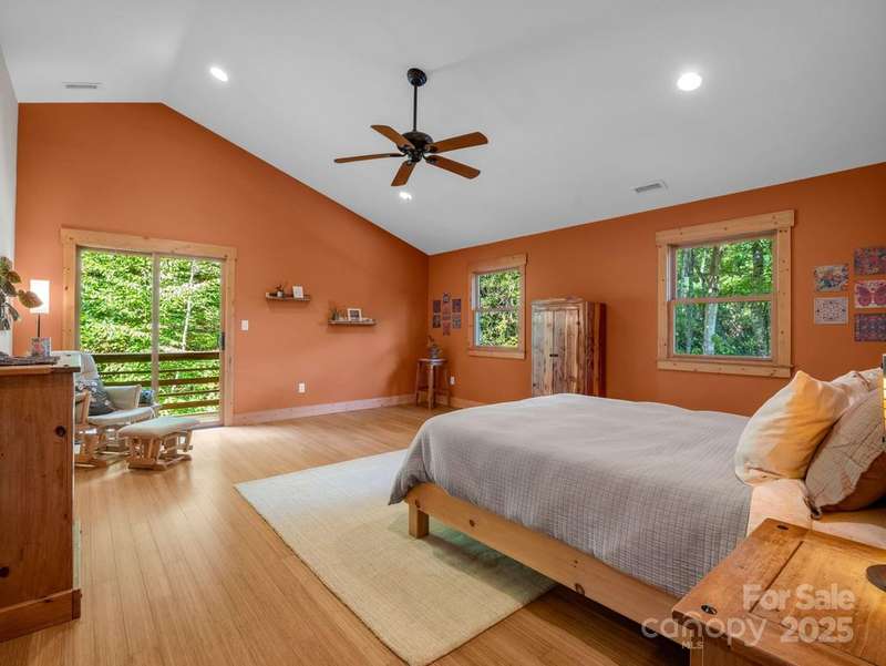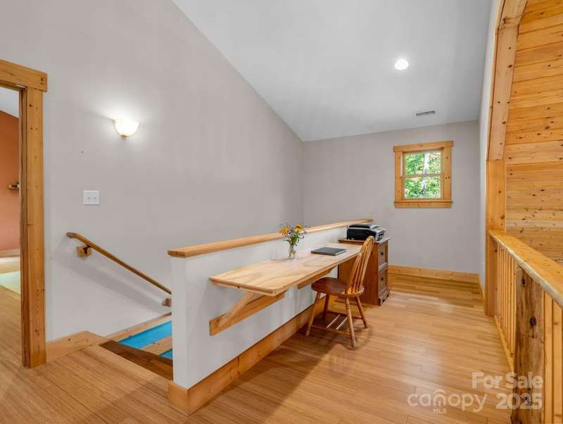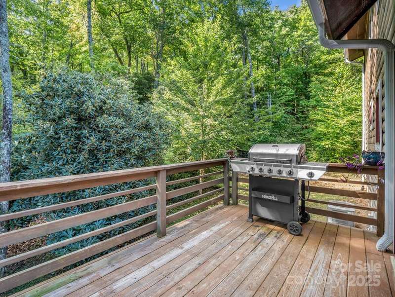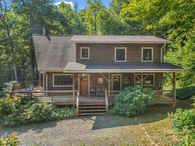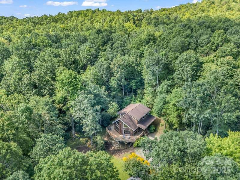 Situated on a serene property surrounded by nature, this charming 3/2 home offers peace and privacy with plenty of room to enjoy the outdoors. There's a usable yard! A yard like this is often hard to find in WNC. In the house the open and airy design features striking windows that usher in natural light and showcases the wooded views. An expansive spacious deck is perfect for relaxing or entertaining. The loft space is the epitome of versatility! Home office, work-out space, yoga area, secondary living space, art studio, etc. The unfinished basement is ready for your personal touch, It would be ideal for creating additional living space, a workshop, or a game room. There is a bathroom (shower, toilet and sink) already plumbed into the corner of the basement. Tree-size rhododendrons, trails and walk-able roads, there's plenty of space right outside your door to stretch your legs. There are approx 300 acres of conservation land in High Rock Acres. Check out the spectacular mountain vista view at the top of High Rock Acres Road. Ask your agent to see the newly recorded survey. Shed WILL NOT convey. Taxes TBD.