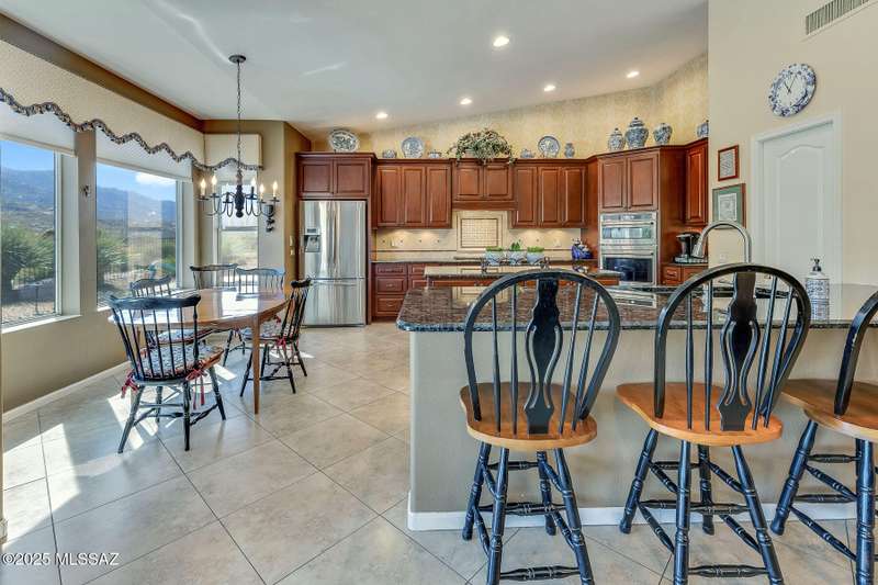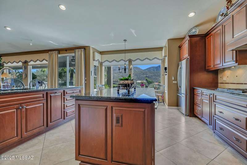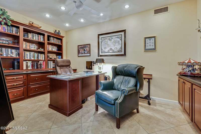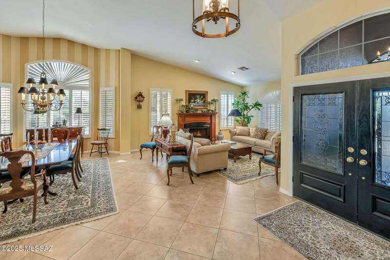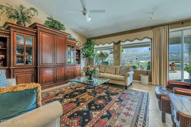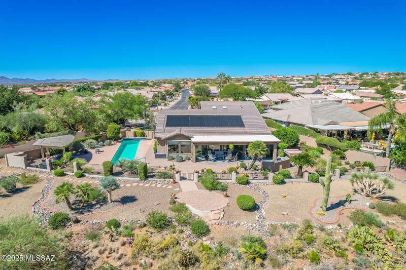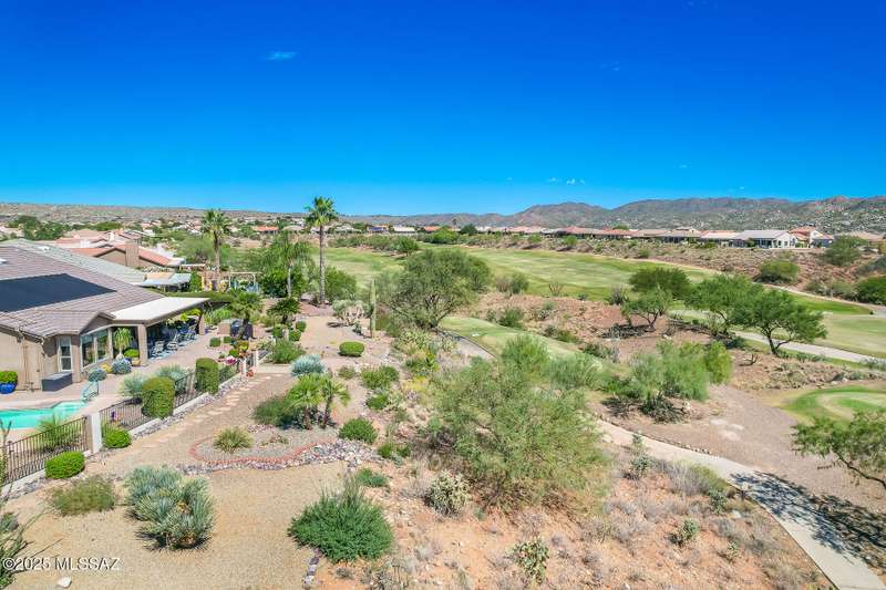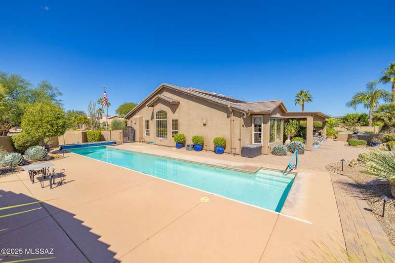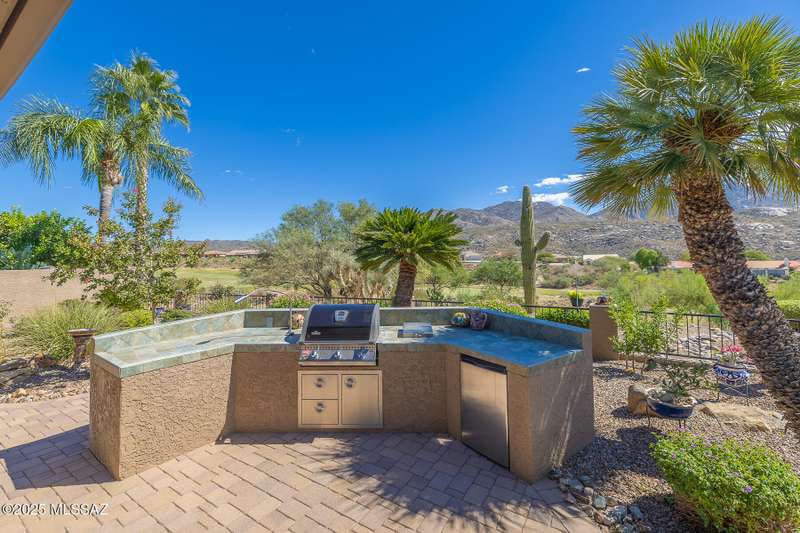 SPECTACULAR DESERT LIVING at SaddleBrooke's Premiere Active Adult Community. This phenomenal property ideally situated for maximum privacy boasts uncompromising GOLF COURSE and CATALINA MOUNTAIN VIEWS. Large RESORT STYLE YARD boasts a Solar-heated LAP POOL with remote cover, private HOT TUB, Outdoor Kitchen, covered & uncovered paver patios including a shaded Pergola Patio with propane Kiva Fireplace, and even a Greenhouse. Extensively Updated two-story home offers a main level Owner's Suite and Office plus two upper Guest Rooms with updated hall bath. This elegant 3,311 sq ft residence welcomes you with a paver driveway & courtyard plus gated front porch.