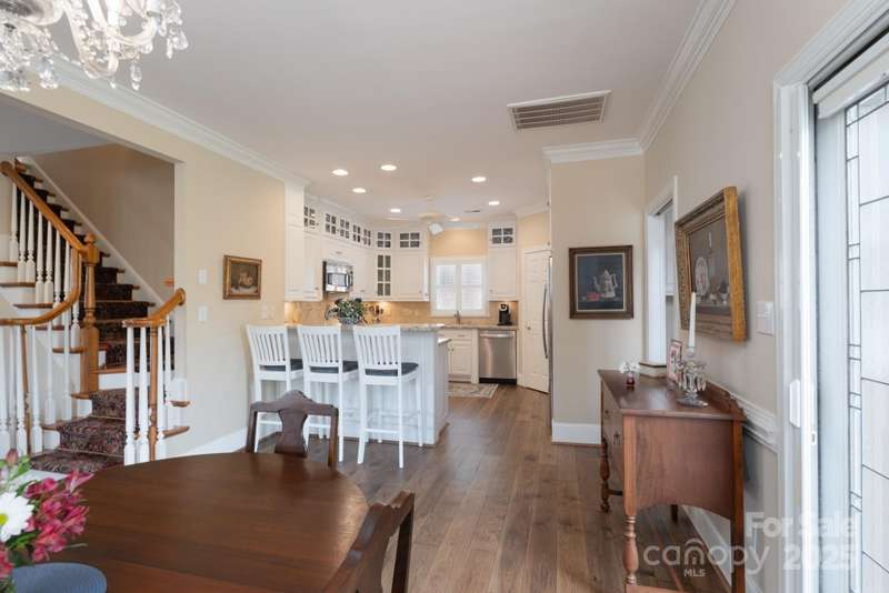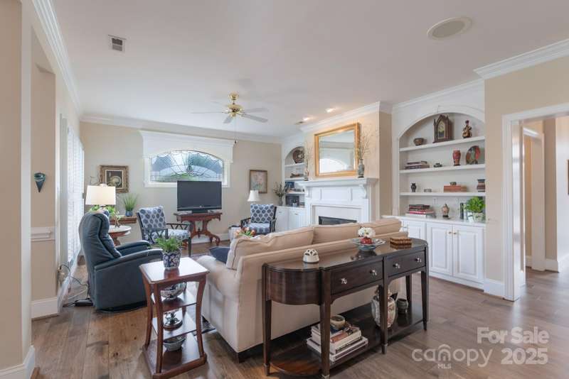 This classic home is a model of perfection! The main level features beautiful wood floors throughout and boasts the primary bedroom with en suite bath and a second bedroom as well as an additional full bath. The family room, highlighted by custom built-in bookcases, is open to the dining area with another custom built-in display cabinet. The bright kitchen with white cabinets, granite, and stainless appliances provides great cooking space and a raised bar. The primary bedroom suite has dual closets and a private bathroom with whirlpool tub and shower. Upstairs is home to two additional bedrooms, a full bath, and an amazing bonus/flex room with a tremendous amount of space. Enjoy your morning coffee or relax in the evening on the cozy screened porch overlooking the brick-fence enclosed backyard. A double garage with storage room is an added bonus in this amazing home located on a corner lot in The Village of Blakeley in Laurel Creek. You will be impressed with all this one has to offer!
