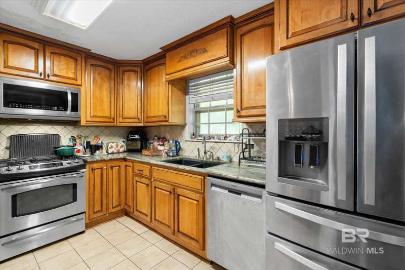 This charming 5-bedroom, 2.5-bathroom brick home in West Mobile. Boasting 2,532 sqft, this beautiful residence features a stunning kitchen thoughtfully renovated in 2018 with custom cabinets, granite countertops, and stainless steel appliances. With the nice size lot it can offer a private oasis with an irrigation system (front/back), double-gated fencing, and a generous 20x40 shed. Discover convenient built-ins, an alarm system, and a versatile heated and cooled utility room. This gem blends comfort and functionality. Don't miss this opportunity, with a little TLC this property has endless possibilities All information must be verified by buyers agent or buyer. Buyer to verify all information during due diligence.