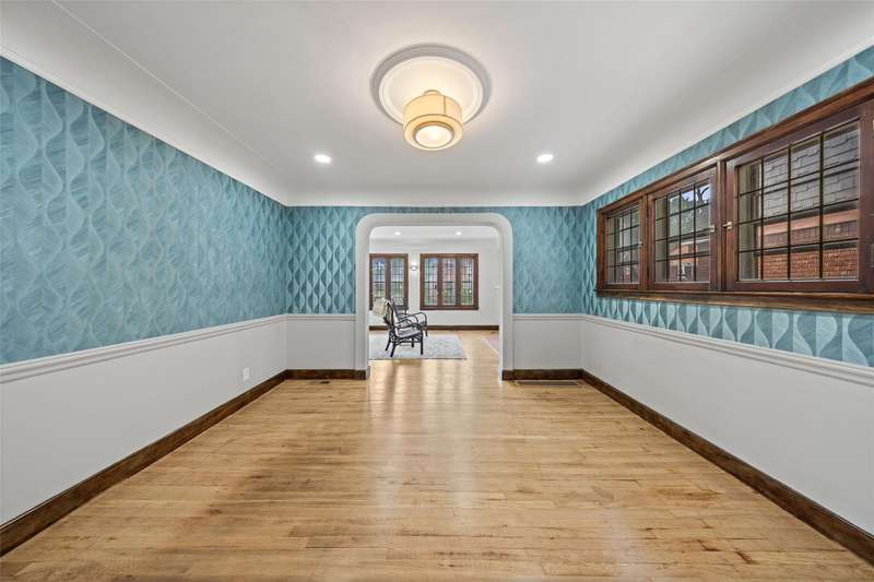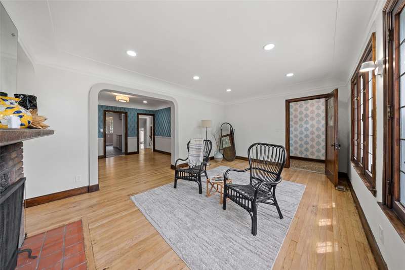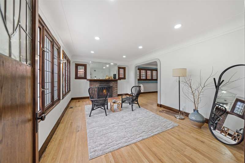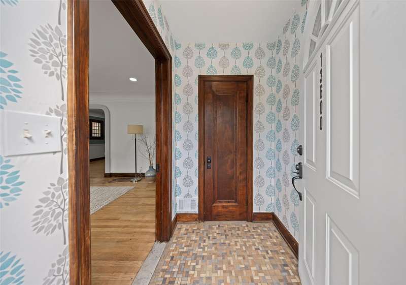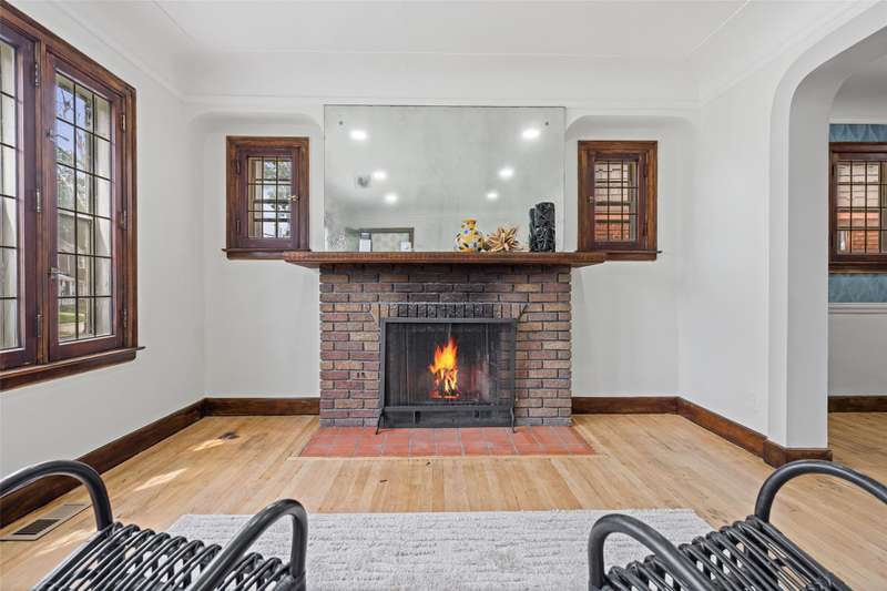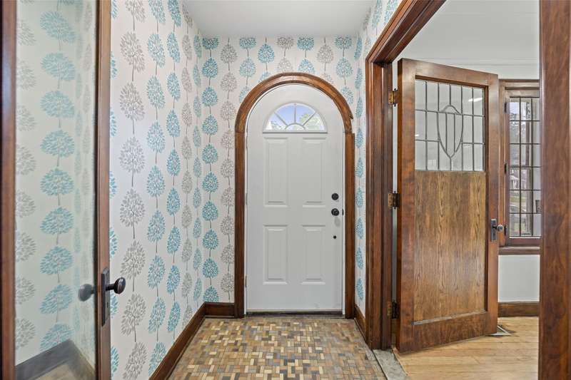 Step into the timeless elegance of this beautifully restored 3-bedroom, 2.5-bath Tudor, where vintage character meets thoughtful modern upgrades. From the moment you enter, you’re welcomed by charming wallpaper and original leaded glass windows that cast soft light across the rich woodwork. The living room’s natural fireplace creates a cozy focal point, while the dining room, wrapped in a bold, leaf-patterned wallpaper, brings personality and polish to every gathering. The renovated kitchen strikes a perfect balance between style and function, with dove gray cabinetry, granite counters, and a delightful breakfast room anchored by a vintage built-in hutch. Upstairs, discover two spacious bedrooms—each with its own sitting room—plus a sunny balcony overlooking the backyard. Period details abound, yet the home also offers peace of mind: new electrical and plumbing, fully updated baths, a new sewer line, and two HVAC systems including central air upstairs. If you’ve been waiting for a stylish home with beauty and substance, this is your moment. Schedule your private showing today and experience the charm for yourself.