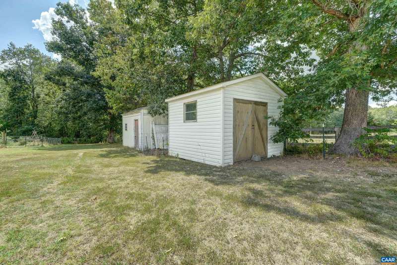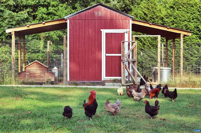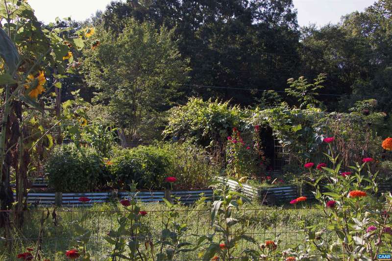 Charming single level living farmette on a county road with gardens, fruit tree orchard, & deluxe chicken coop sitting on one acre with a fully fenced yard. The location blends convenience with country living - centrally located between three shopping centers, just 30 minutes from Charlottesville & surrounded by nature. Step inside from a rocking chair front porch to a living/dining area with recently restored hardwood flooring. Enjoy preparing meals in the bright kitchen with a window view overlooking the backyard garden. Cozy up in the living room next to the wood burning stove or enjoy the changing seasons within the light filled sunroom. Designed with permaculture homesteading in mind, the land surrounding this home features many native species of fruits, orchard trees, and perennials. The paved circular driveway leads to a 2 vehicle carport garage. 2 additional sheds for storage or gardening supplies. Oversized gates for easy transport of lawn equipment. 2024- encapsulated and conditioned crawl space, great for added storage. 2023- chicken coop. 2023- various new gutters with gutter guards. 2022 - wood stove. 2020- fencing installed.