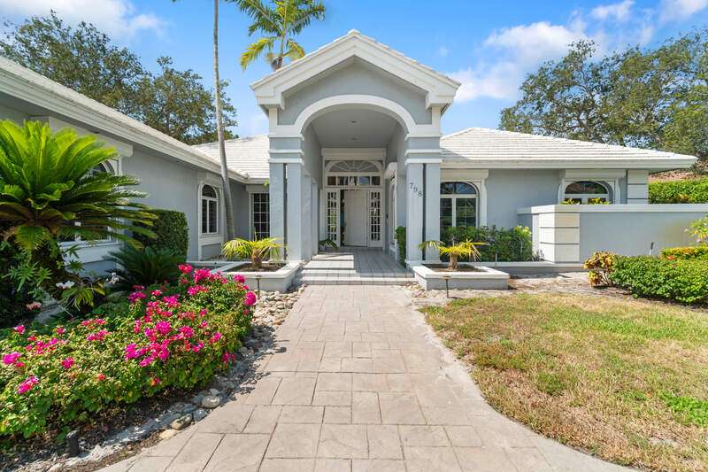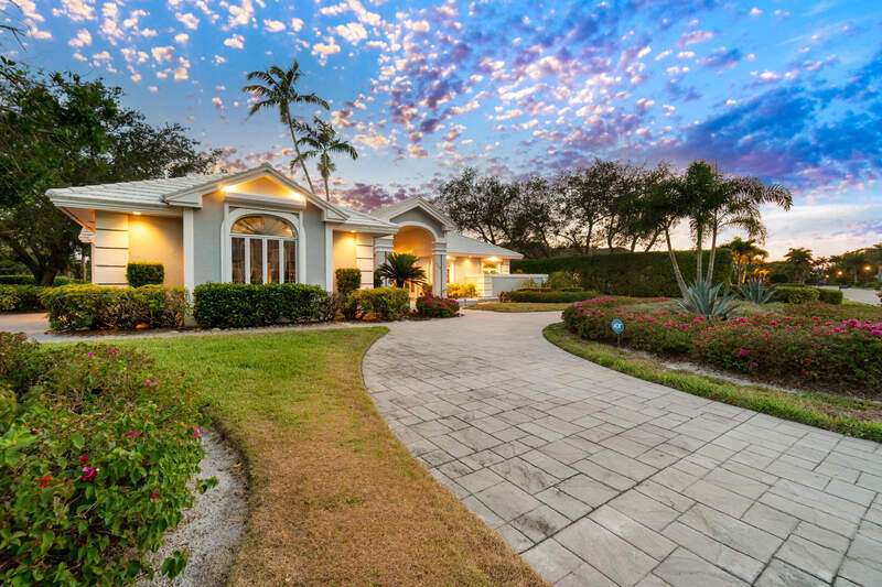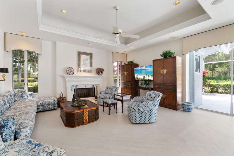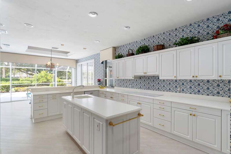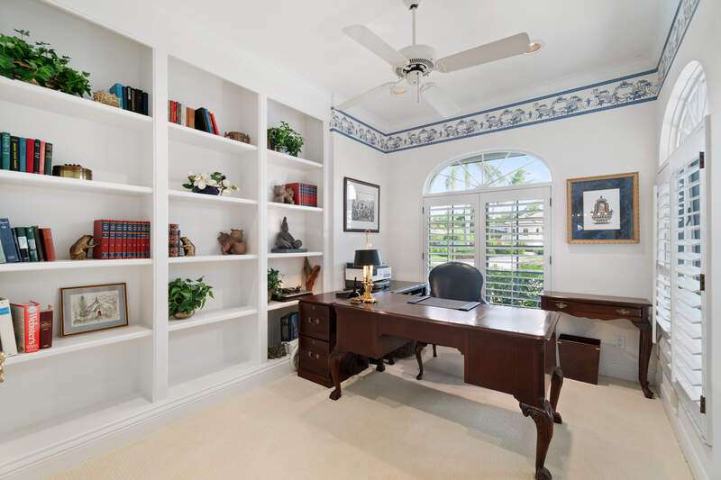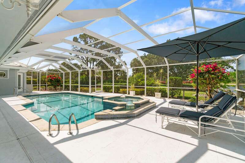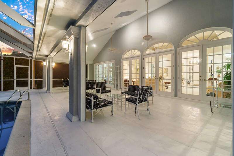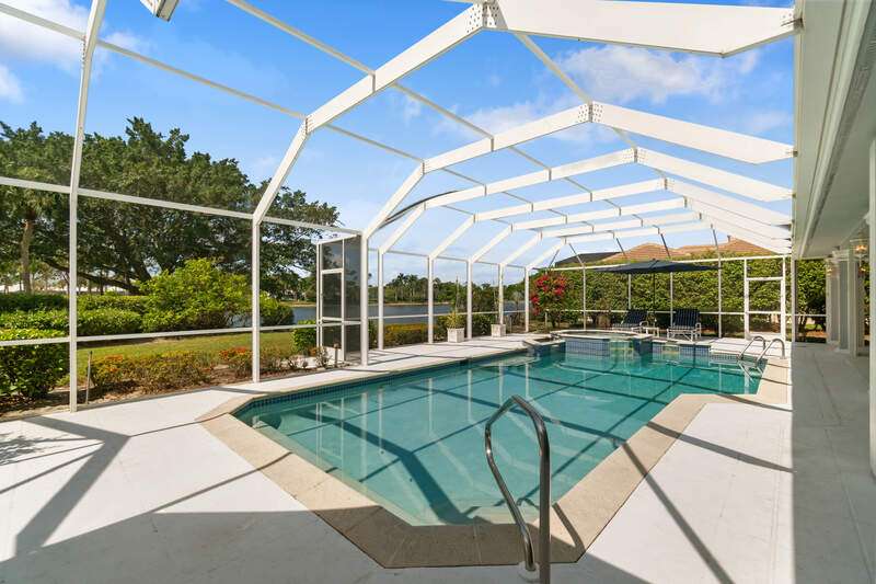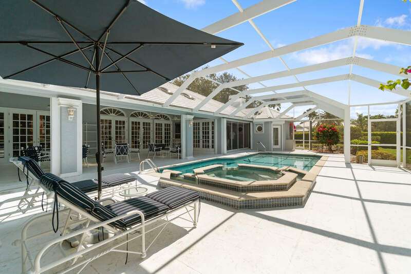 Exceptional estate situated on a rare corner lot with breathtaking lake views in the prestigious Audubon Golf & Country Club in North Naples. Offers highly sought-after SOUTHERN exposure for breathtaking sunsets and optimal sun over the pool. Originally built as one of Audubon's model homes, this beautifully designed home offers 3,245 square feet under air with 4 spacious bedrooms, 4 full bathrooms, a 3-car garage, soaring high tray ceilings, and beautiful French doors, flooding the interior with natural light. Additional highlights include a 2014 roof, hurricane shutters, new hot water heater (2021), whole-house generator (2022), 500-gallon propane tank, and dual driveways for added convenience. The open-concept layout seamlessly blends indoor and outdoor living, with the lanai offering a serene retreat with a pool, spa, ample lounging space, and stunning lake views -perfect for relaxing or entertaining. Inside, you'll find a spacious kitchen boasting white cabinetry, white countertops, and plenty of storage. The primary suite features private French doors to the lanai/pool deck, a large walk-in closet with custom built-ins, and an ensuite bathroom with dual vanities, a separate soaking tub, and spacious shower. Audubon's prime location is just 5 minutes from Mercato and world-class beaches, and the community offers a gated/guarded entrance, an 18-hole championship golf course, tennis, pickleball, a Bayside boardwalk, and a newly renovated clubhouse with dining and a second beautiful poolside club and cafe.