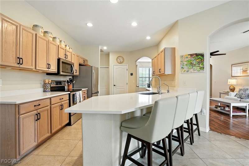 "HIDDEN GEM" Located in the beautiful "Daniels Preserve" in Gateway, with a Beautiful Waterfront lot and new Saltwater Heated POOL, sundeck, covered Lanai, and Lake View. Spacious 2,195 sq. ft, with 4 bedrooms, 3 baths, 2 gathering areas with sliding doors to pool and lanai. Beautifully updated private Primary Suite, you should see the bathroom. At the heart of the home your kitchen is impressive with wood cabinetry and a seamless flow into the family room, dining, and outdoor living the perfect space for family and entertainment. Many upgrades, new stainless appliances in the last 5 to 6 years, includes soft-water system, and exterior newly painted. Gateway residents enjoy a community pool, multiple parks, basketball courts, volleyball courts, soccer fields, dog park, 15 miles of bike and jogging paths. This home provides easy access to I-75, shopping centers like Florida Gulf Coast Town Center, restaurants, JetBlue Park, RSW Airport, and local beaches.