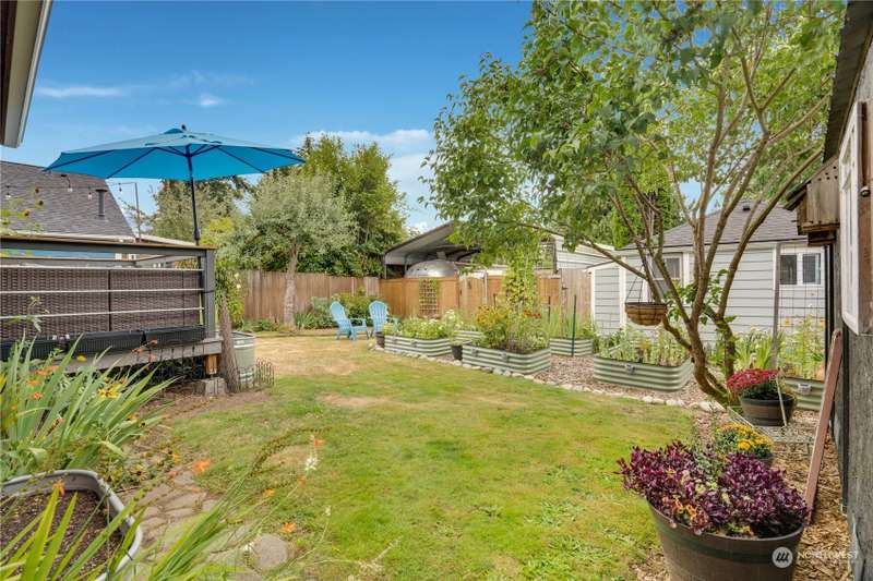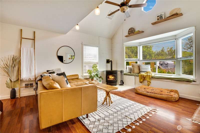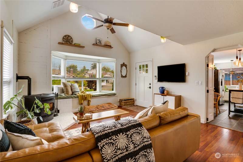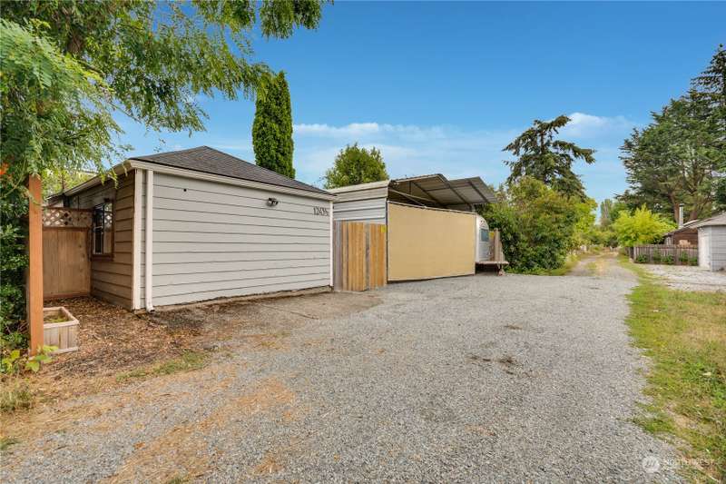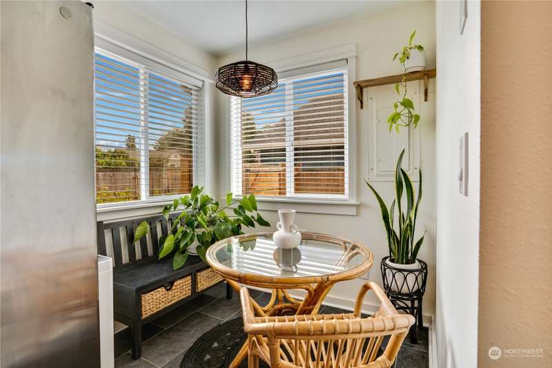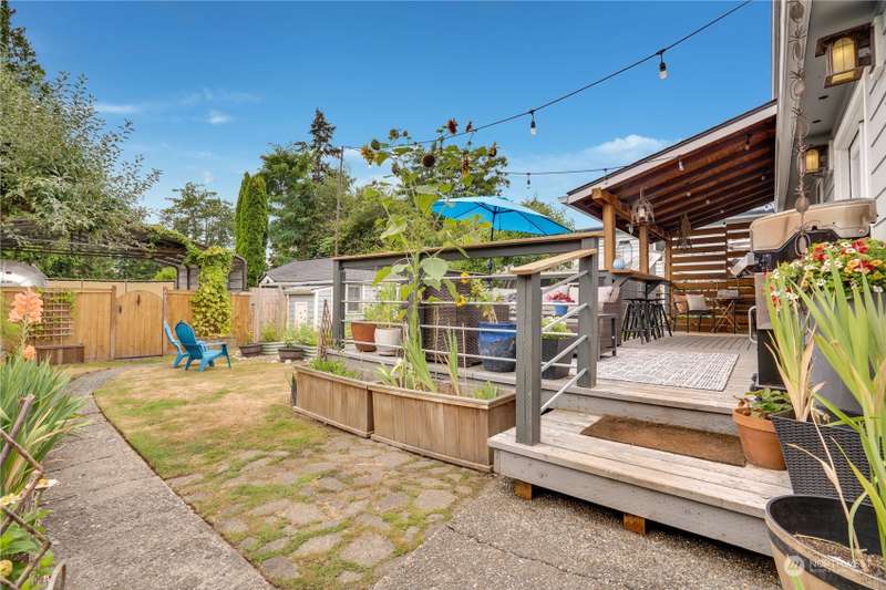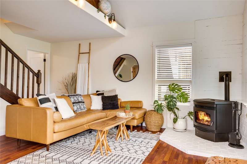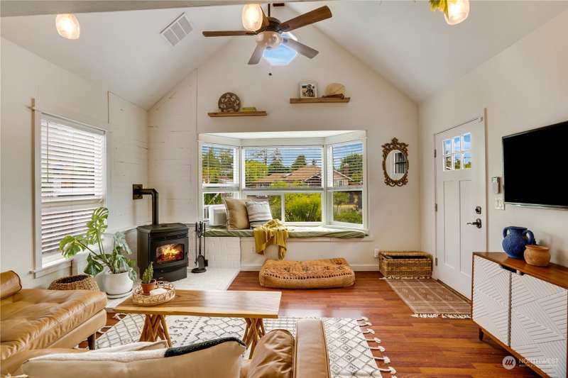 Charming, updated home w/ lush gardens in Old Town Burien! Move-in ready gem w/ fresh paint, new carpet, & renovated kitchen & baths. Living rm features vaulted ceilings & a cozy new pellet stove. Kitchen shines w/ stainless appliances & a bright breakfast nook. French doors lead to a partially covered deck & large, fenced backyard w/ stunning flower gardens. Main floor en-suite bedrm + two more bedrms & full bath upstairs. Gated 2-car carport w/ covered RV space. Renovated 360 SF detached studio DADU w/ full kitchen, ¾ bath, separate entrance & address—ideal for home office or rental income. Steps from Old Town Burien's shops & restaurants, w/ easy freeway access. A perfect blend of comfort, charm, & location, w/lucrative rental potential.