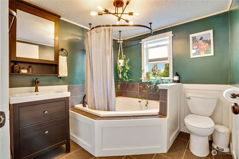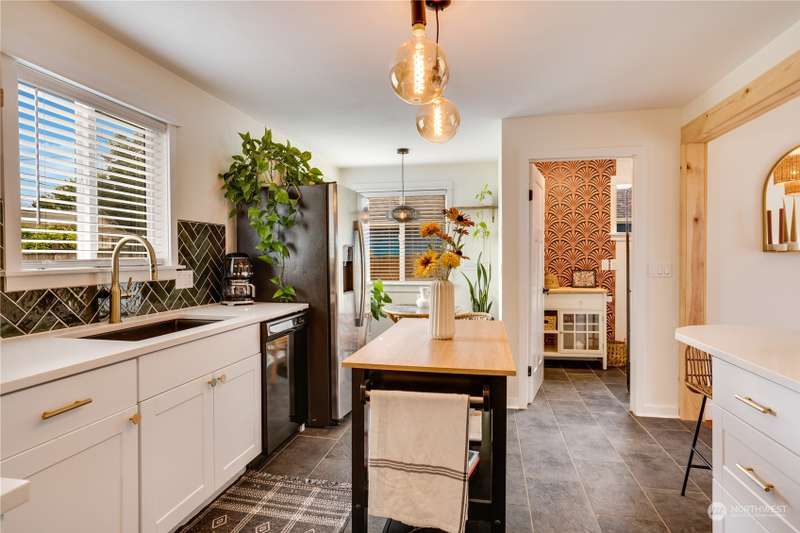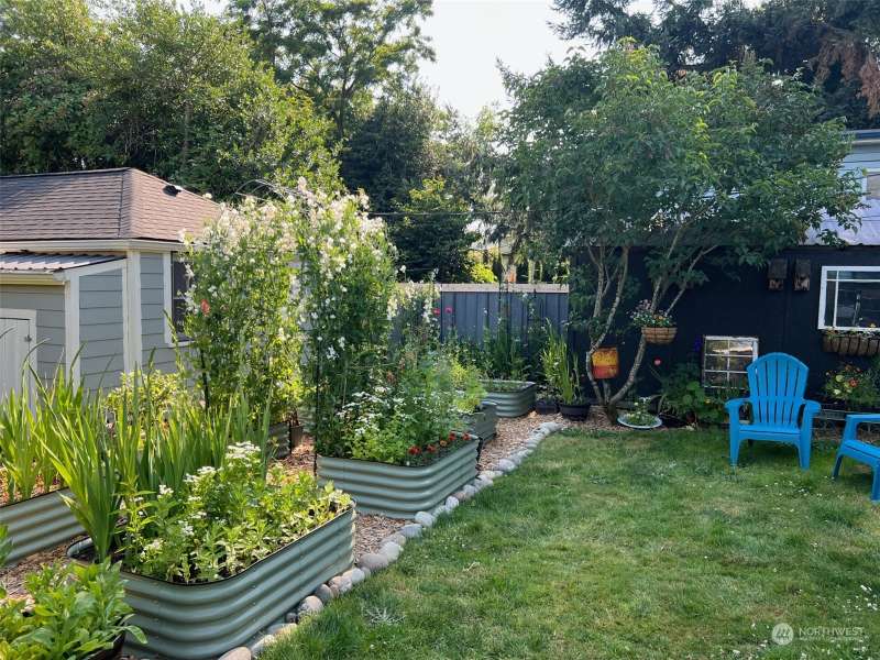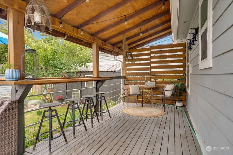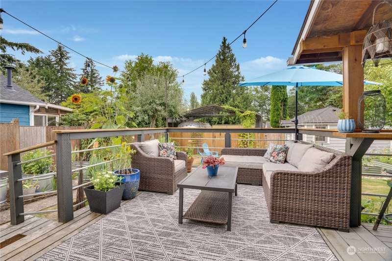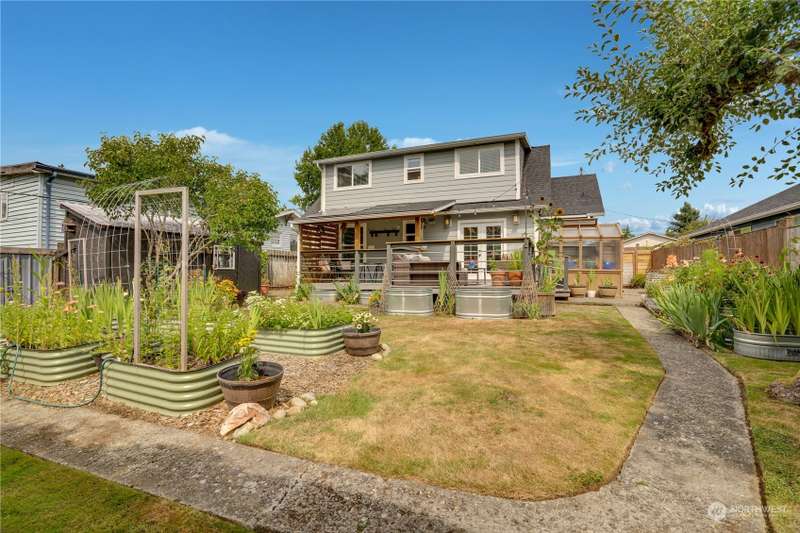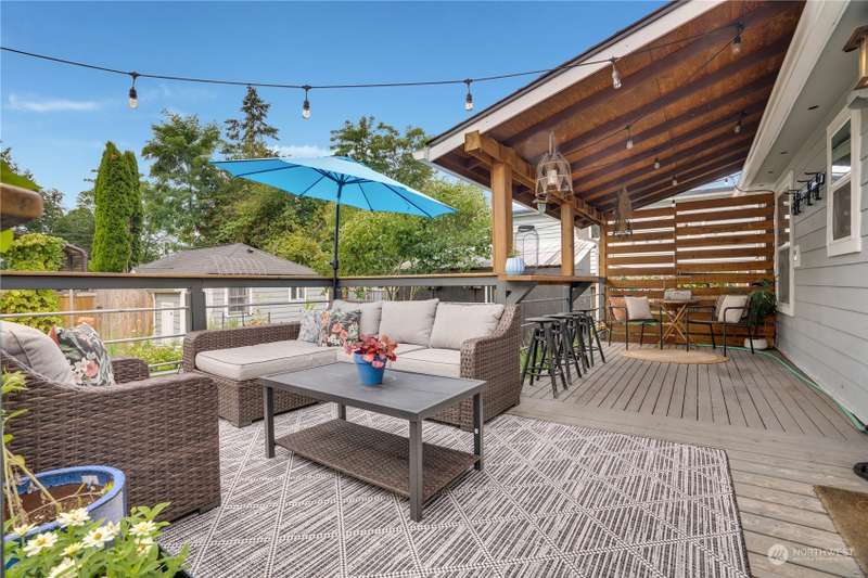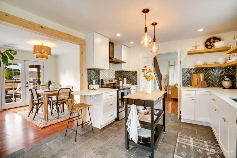 Charming, updated home w/ lush gardens in Old Town Burien! Move-in ready gem w/ fresh paint, new carpet, & renovated kitchen & baths. Living rm features vaulted ceilings & a cozy new pellet stove. Kitchen shines w/ stainless appliances & a bright breakfast nook. French doors lead to a partially covered deck & large, fenced backyard w/ stunning flower gardens. Main floor en-suite bedrm + two more bedrms & full bath upstairs. Gated 2-car carport w/ covered RV space. Renovated 360 SF detached studio DADU w/ full kitchen, ¾ bath, separate entrance & address—ideal for home office or rental income. Steps from Old Town Burien's shops & restaurants, w/ easy freeway access. A perfect blend of comfort, charm, & location, w/lucrative rental potential.