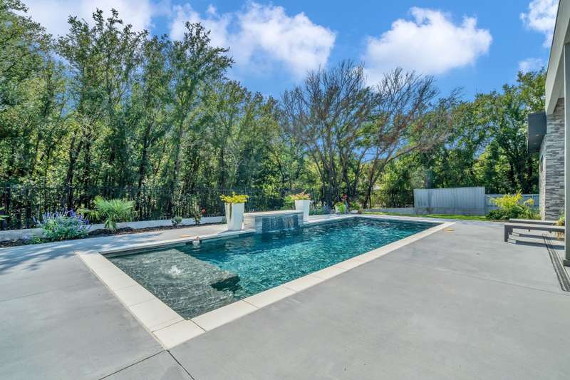 CONTEMPORARY LIVING AT IT'S FINEST. Quietly tucked away on a 1+ acre wooded corner lot near the lake in Sunrise Bay, you will find all of the boxes checked. Home boasts superior finishes and detail at every turn. Inside, youll find spacious living areas, generously sized bedrooms, and flexible spaces ideal for entertaining or relaxing. This show-stopping kitchen features a high-end design. Custom cabinetry, whisper close cabinet doors and drawers. designer pendant lighting adds warmth and sophistication. The space is anchored by an oversized island with a gleaming waterfall style quartzite top, abundant prep space, casual seating, a natural gathering spot for family and friends. Sleek SS appliances, elegant tile backsplash, and thoughtfully chosen finishes complete the look, creating a kitchen that is as stylish as it is practical. Unbelievable views from the homes interior to your backyard wooded oasis including pool with waterfall, extended cvrd patio with firepit, adjacent Outdoor Screened Dining area with ceiling fan and commercial heating system for cooler months. Special features include Private Owners Suite, Luxury bath with ovrszd dressing area, Spa shower, and large walk-in custom closet system. Beautifully centered fireplace feature brings the Open Family Room to the center of attention. Several sets of Siding doors and Transom windows flood home with light. Majestic Soaring ceilings, Commercial grade windows-doors, DC current HVAC system, FULL FOAM INSULATION. TPO ROOF, Enjoy the vibrant Lakefront District, where you can enjoy sandy beaches & a seasonal water park, live music at amphitheater, boat rentals, kayaking, paddleboarding and Family-friendly events, food trucks, playgrounds. Located just 9 miles from the PGA World Headquarters in Frisco and 12 miles from the upcoming Universal Kids Theme Park. Tranquil lakeside neighborhood is a hidden gem in Little Elm, offering peaceful surroundings while being close to everything N. Texas has to offer.