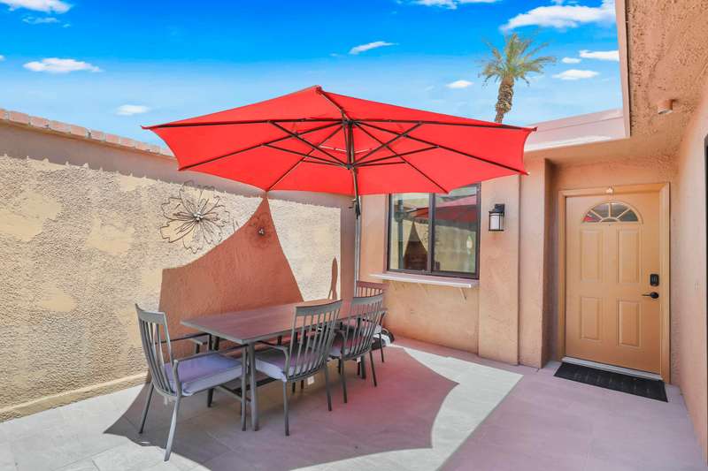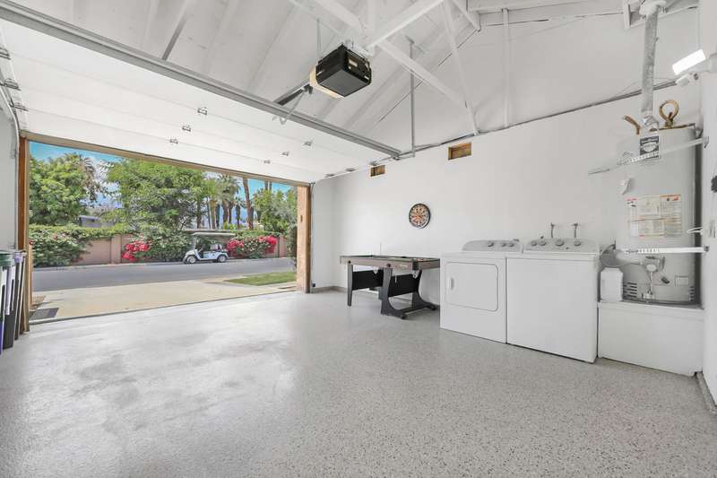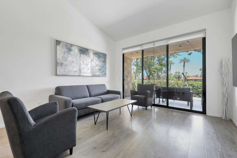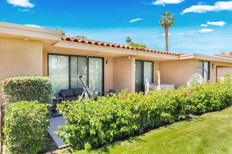 Welcome to one of the most inviting and beautifully updated condos in Sunrise Country Cluban iconic gated community in the heart of Rancho Mirage. Nestled within the Coachella Valley, this serene enclave offers refined desert living with lush landscaping and a stunning 18-hole executive golf course.Sunrise Country Club is perfectly positioned at the intersection of luxury, convenience, and natural beauty. Residents enjoy access to 21 pools, 19 spas, 9 tennis courts, and vibrant Pickleball and Bocce ball clubs. The recently renovated fitness center, clubhouse, and dining roomincluding the stylish Mixx Loungeoffer everything from gourmet dinners to relaxed Sunday brunches.This spacious condo features soaring vaulted ceilings, abundant natural light, and breathtaking viewsmountains in front, panoramic golf course vistas from the back patio. Whether you're savoring a peaceful morning or watching the sun set in vivid desert hues, this home offers tranquility year-round.Used sparingly as a vacation retreat, the condo has been thoughtfully remodeled with new tile flooring on both patios and a coated garage floor, Double-pane windows and sliding doors, Laminate flooring throughout, Recessed lighting in kitchen and baths, A modern kitchen with white shaker cabinets, quartz countertops, and stainless-steel appliances, Updated bathrooms with quartz and granite vanities, oversized shower, silent-close toilets, and Panasonic fans, Smart home features including a Wi-Fi thermostat and door lock system, Roller shades in every room and a sleek electric fireplace in the living room.Kitchenware, front patio dining set, back patio lounge furniture, and a solar-lit umbrella are all included in the sale.Don't miss your opportunity to own a slice of desert luxurywhere comfort, style, and community come together.