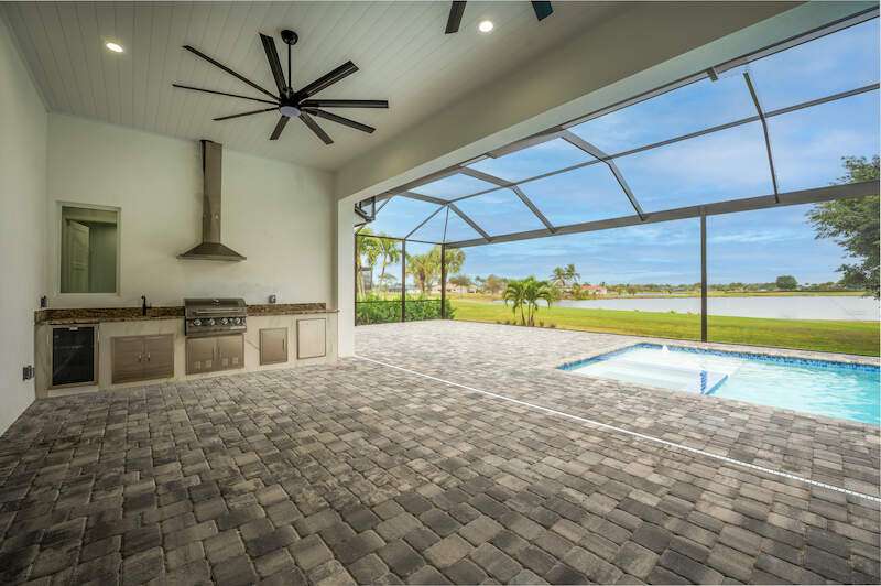 Live the Florida lifestyle to the fullest in this beautifully designed lakefront home in Royal Palm Golf Estates! This 3,142 sqft residence offers 3 spacious bedrooms + office, 3 full bathrooms, 1 half bathroom, and a light-filled open floor plan perfect for both relaxing and entertaining. Enjoy soaring tray ceilings, upgraded tile flooring, and expansive water views from nearly every room. The gourmet kitchen features an oversized island, cabinet lighting, walk-in pantry, and dual-zone wine fridge-ideal for hosting family and friends. Each bedroom includes a private en-suite bath and custom walk-in closet, while the luxurious primary suite offers his & hers closets and a spa-inspired bathroom retreat. Step outside to your oversized screened lanai with a built-in outdoor kitchen, grill, and multiple seating areas overlooking the tranquil lake. Additional highlights include electric blinds, French doors, custom cabinetry, and a spacious laundry room with extra storage. Located in a gated golf course community with low HOA fees, underground utilities, and access to Eagle Lakes Golf Club. Just minutes from Marco Island and downtown Naples, this home offers the perfect blend of comfort, elegance, and convenience