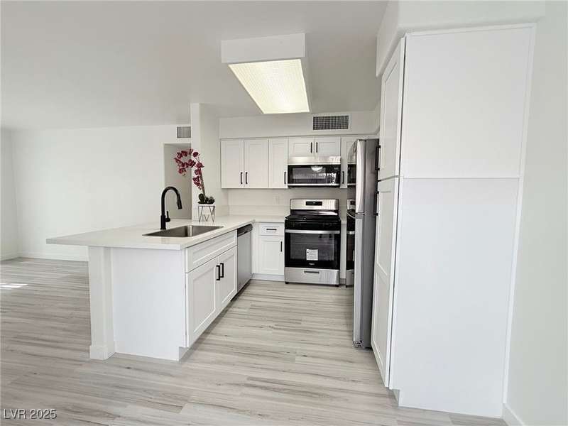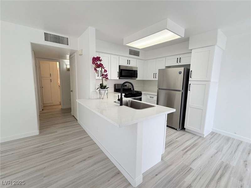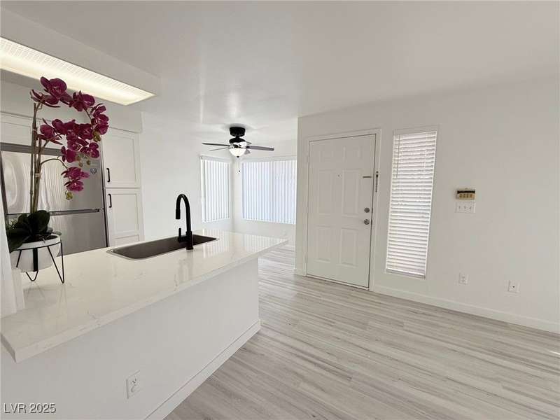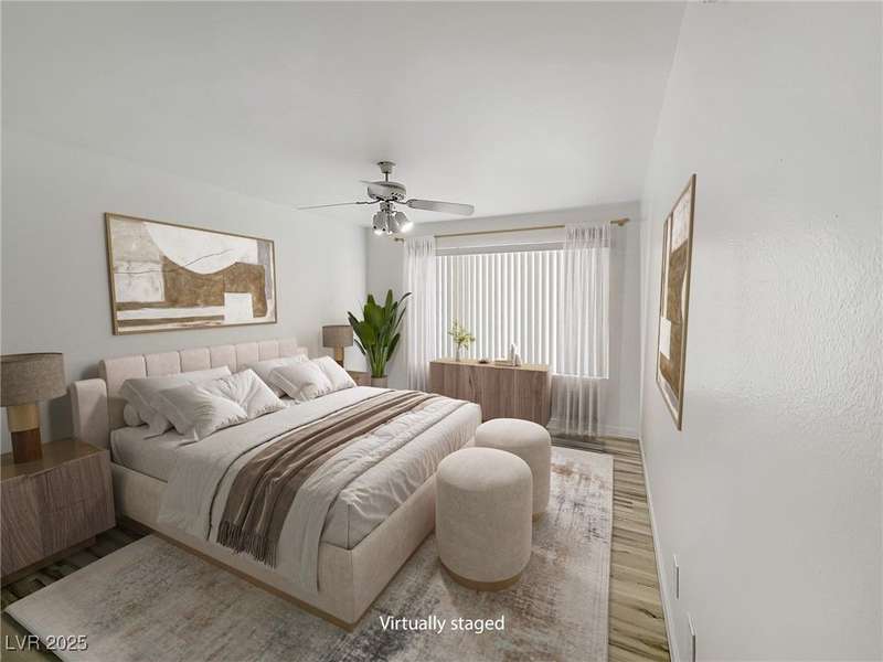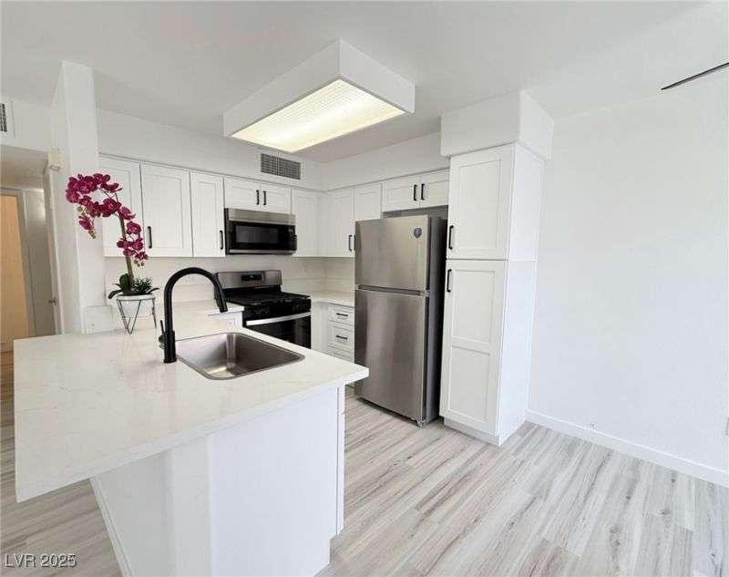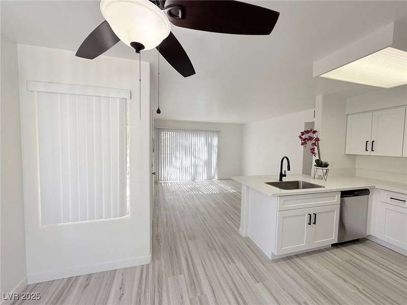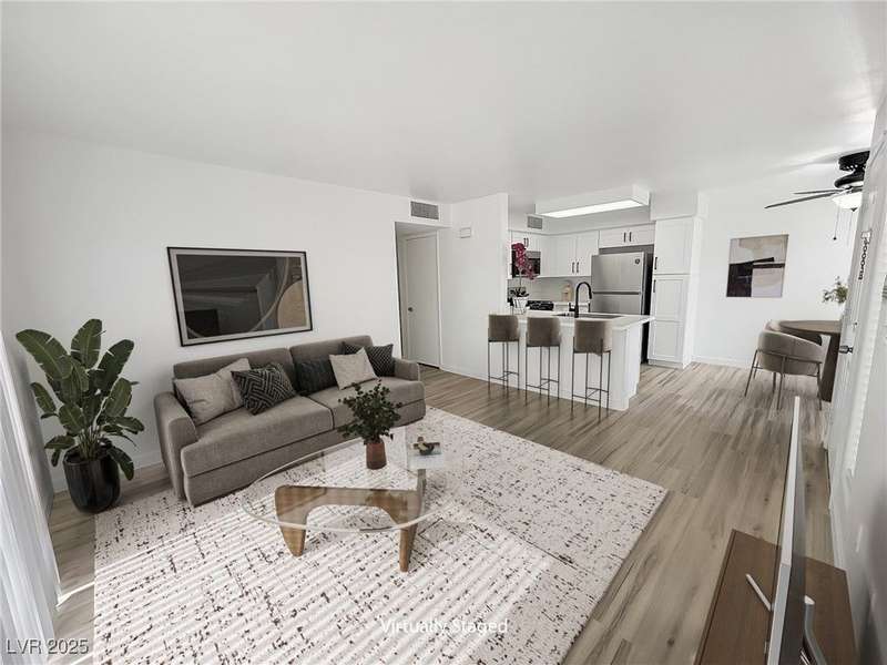 Discover effortless living in this beautifully remodeled 2-bedroom, 2-bath condo in the gated Canyon Willows community. This bright upstairs unit offers an open-concept layout with high ceilings, fresh paint, and a private balcony. The kitchen features plenty of cabinetry and a breakfast bar that flows into the spacious living area ? ideal for entertaining. The split-bedroom design ensures privacy, with a primary suite offering a walk-in closet and ensuite bath. Enjoy resort-style amenities including multiple pools, extra parking, and security. Conveniently located near the Strip, shopping, dining, and major highways. Perfect as a primary home, rental, or investment opportunity. One of the best values in the community ? priced to sell fast! Sold AS-IS. Ready to move in.
