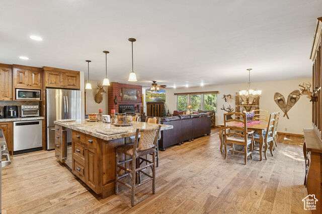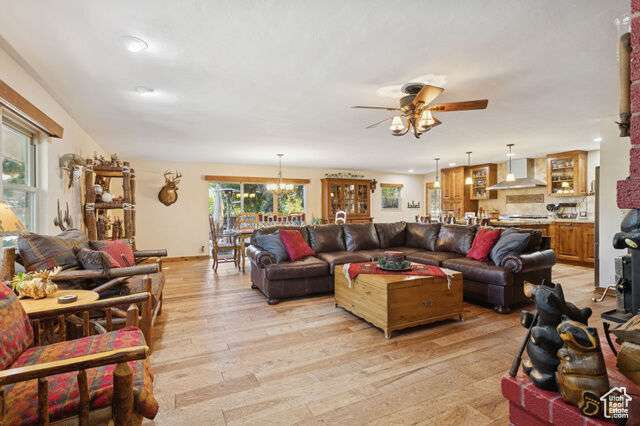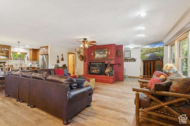 Nestled in the highly sought-after Summit Park community, this charming 4-bedroom, 2-bathroom home offers over 2,200 finished square feet of rustic character blended seamlessly with modern conveniences. Step inside to a spacious open-concept living area featuring beautiful hardwood floors, expansive windows that flood the home with natural light, and a cozy brick fireplace with a wood-burning stove-perfect for chilly mountain evenings. The updated kitchen boasts a large island ideal for meal prep and entertaining, and it flows effortlessly into the dining area and comfortable living room.