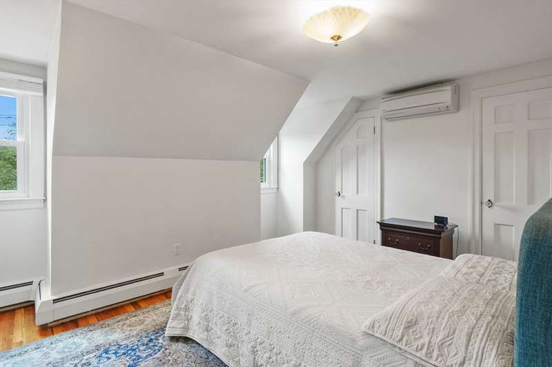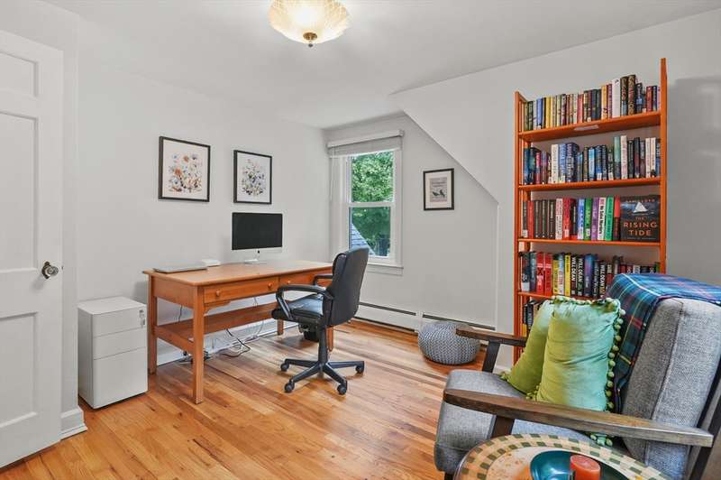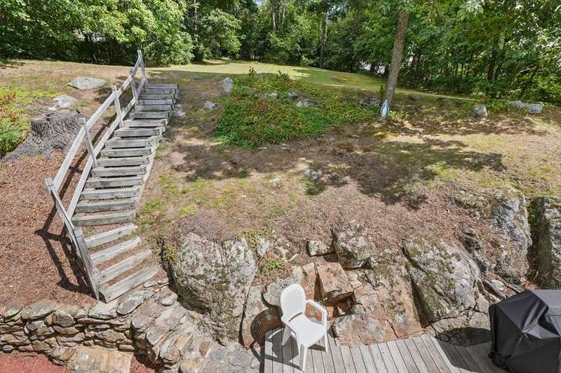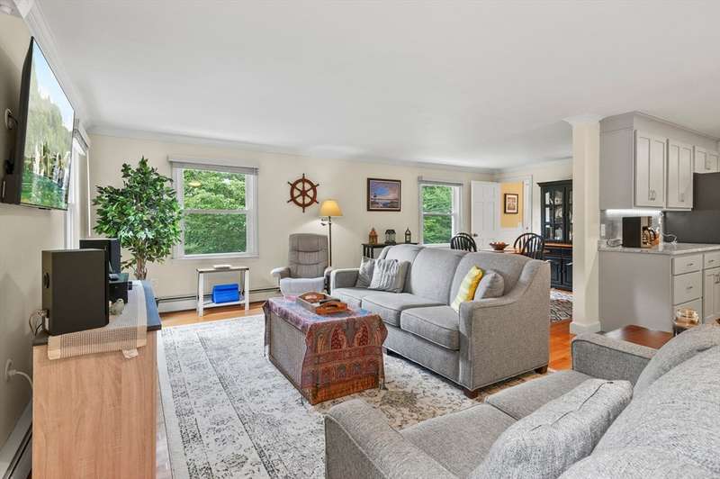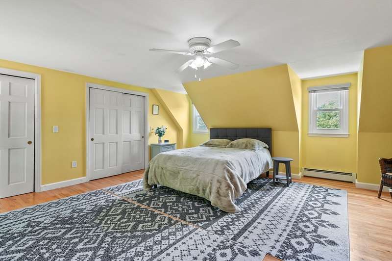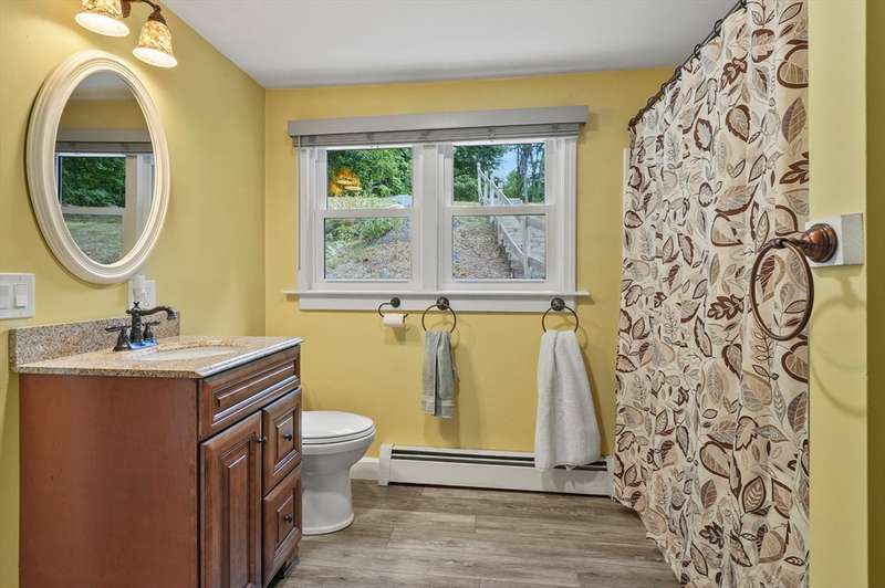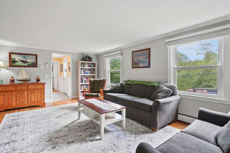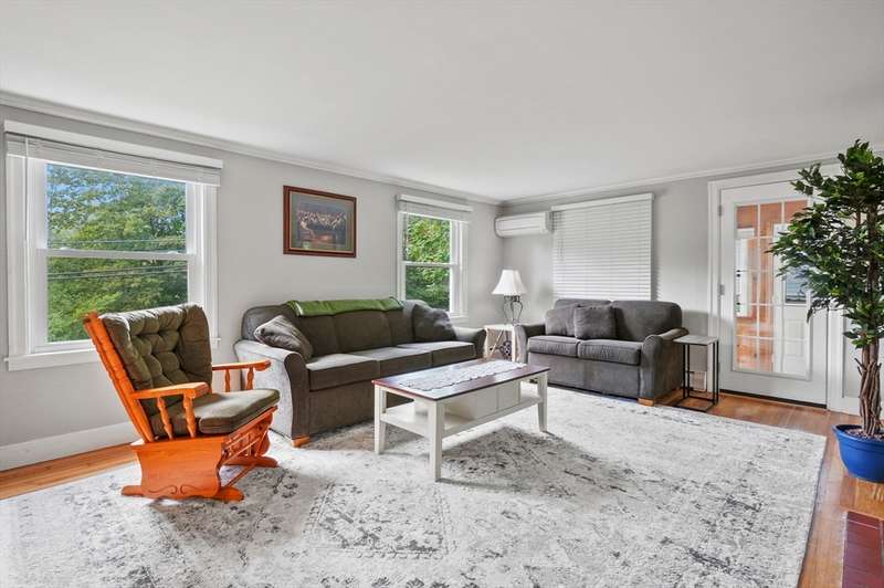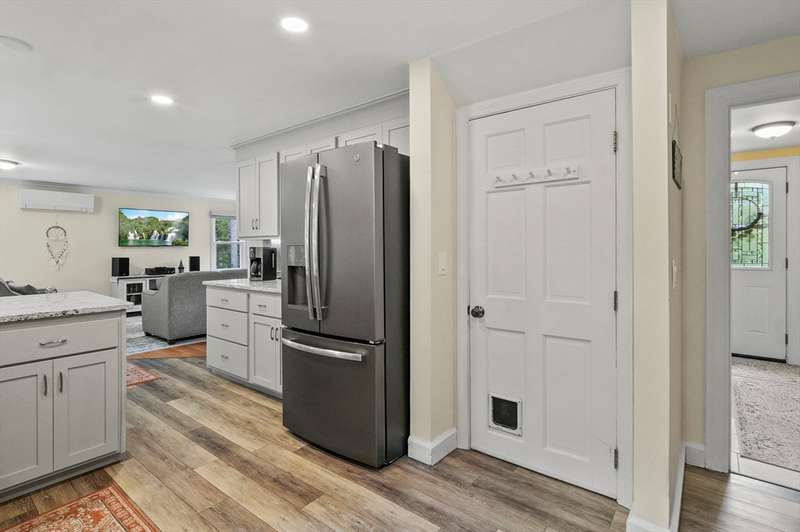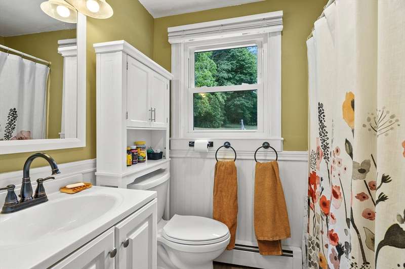 Welcome to this inviting 5 bedroom Cape offering comfort, style, and room to grow. Inside, hardwood floors flow through the dining room, cozy family room with deck access, and spacious living room with a warm fireplace. The kitchen is a true highlight with stainless steel appliances, breakfast bar, tile backsplash, and recessed lighting—perfect for everyday living and entertaining. A sunroom brings in natural light and opens to the backyard. Upstairs, the private primary suite features two closets and an ensuite bath, while three additional bedrooms offer flexibility for family, guests, or a home office. The partially finished basement adds bonus space, laundry hookups, storage, and garage access with a handy workbench. Enjoy outdoor living on the deck overlooking a large backyard with plenty of space to relax, play, or garden. An attached garage (with warm weather screen door) and plenty of parking! This property is great for multi generational living w/1st Floor Bedroom & Bath!