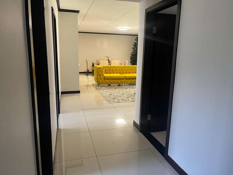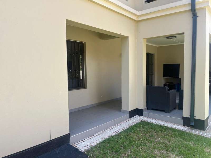 Modern 4-bedroom Garden Apartment Move in Ready. Looking for space and class then look no further. This 4-bedroom, 3-bathroom garden apartment is a winner. The home has a spacious open plan living area with ample space to furnish as you please. The kitchen is modern with ceasarstone tops and space for a double door fridge / freezer. There is a separate scullery with space for appliances. The living area leads onto a covered patio with a built-in braai and a large private garden area. Furthermore, you have 4 bedrooms. The main bedroom is en-suite with a walk-in closet area. The second bedroom is also en-suite with b.i.c. The two remaining bedrooms share a full family bathroom and also have b.i.c. The entire unit is tiled in a modern cream porcelain tile. All finishings in the unit are modern. The unit has two covered parking bays and there is also ample visitors parking. The complex has a beautiful pool set around rolling gardens with stunning views, a clubhouse as well as a gym for resident’s use. The complex also has 24Hr. security and is well located close to shopping centers, schools, creches, medical facilities and highway exits. A real winner. While every care has been taken in the preparation of this listing, we cannot be held responsible for any errors or omissions that may have inadvertently occurred. The information contained in the listitng is subject to updates and/or changes.