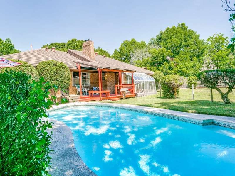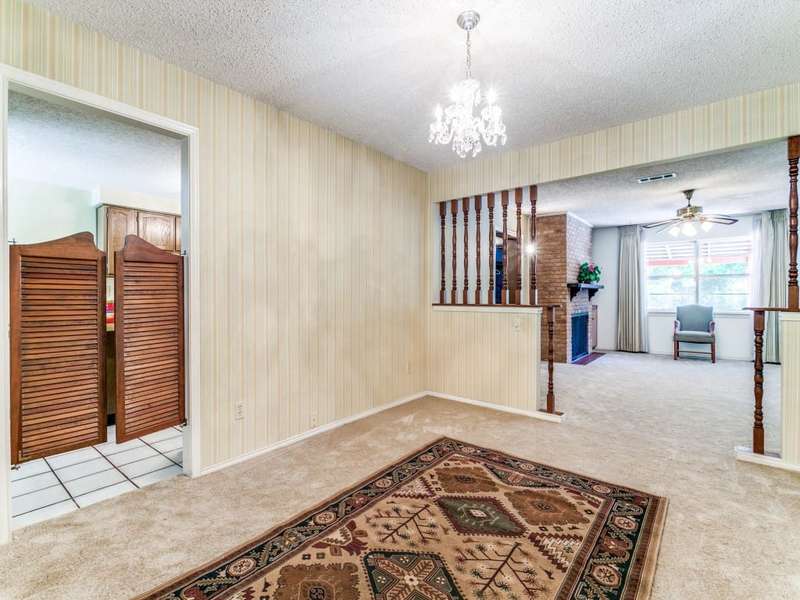 MOTIVATED SELLER! HUGE potential for this well built home on acreage; YOUR OWN ESTATE. Offering complete privacy On large treed lot (.70 acres) This spacious home is waiting for your own updates & ideas. 3 LARGE bedrooms (2ND living at front of home could be 4th bedroom), 2.5 baths, 2 Living Areas, Fireplace, LARGE bonus, theatre or game room, separate BIG utility room with sink. Some rooms have hardwood flooring under carpet, tile flooring in kitchen & vinyl in Bonus-game room. NEWLY INSTALLED CARPETING IN DEN AND DINING. ONE OF TWO HVAC UNITS JUST REPLACED! The .70 acre lot includes outbuildings (see photos) that could house a business, guest quarters, kennels, etc. or horse barn with stalls and tack room, OR transformed into a Man Cave. Includes a small greenhouse, plus wood deck and in ground gunite pool. Master Bedroom (with ensuite & walk in closet) measures 18 x 18. Both are regularly serviced. Lot extends well beyond trees in back. Tons of shaded parking in front with pristeen asphalt driveway and apron. The oversized 2 car garage also has a separate 13 X 11 air-conditioned-heated workshop with even more storage. Also included is covered parking (Carport) behind stables for RV, Bus or large boat. Swim in the inviting gunite pool and entertain on the covered deck. Property is fully fenced (wood and chain link). 50 year Steel roof has transferable warranty. Leaf Guard Guttering is a plus. Tons of potential here. No survey available, Buyer must purchase if survey is required. Owner kept horses years ago, however, Horses may or may not be permitted. Check w-City of Irving regarding city guidelines on livestock or horses.