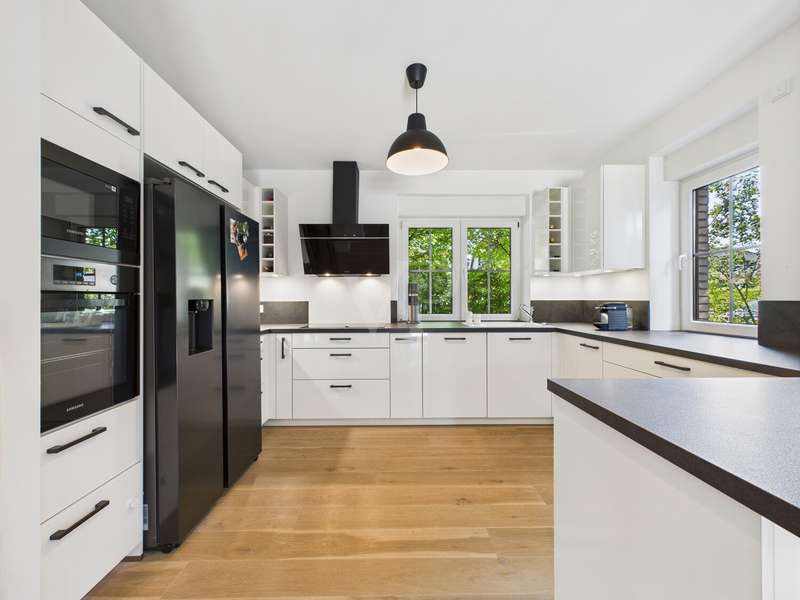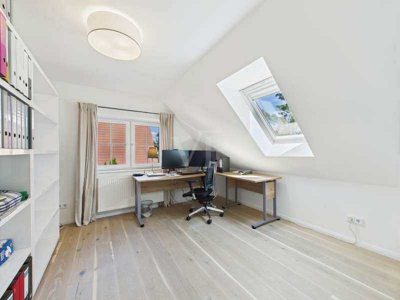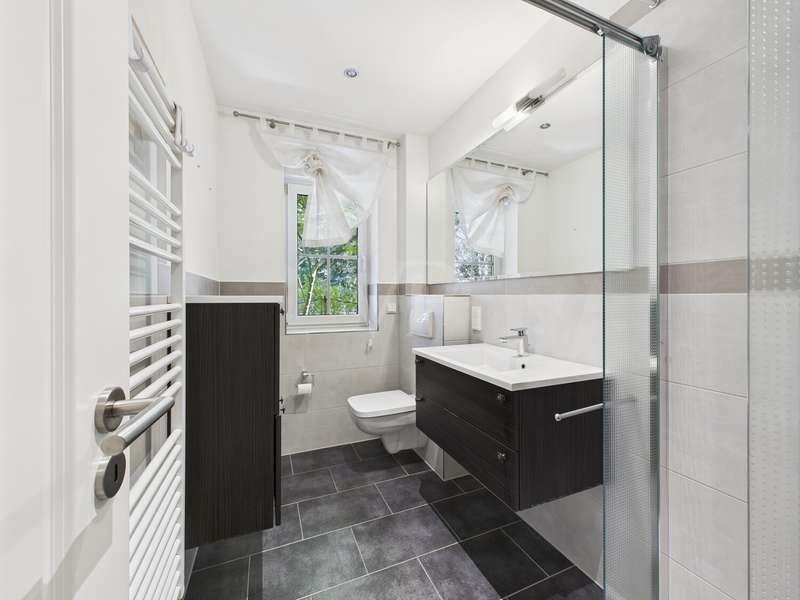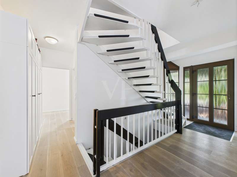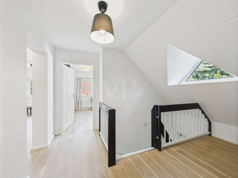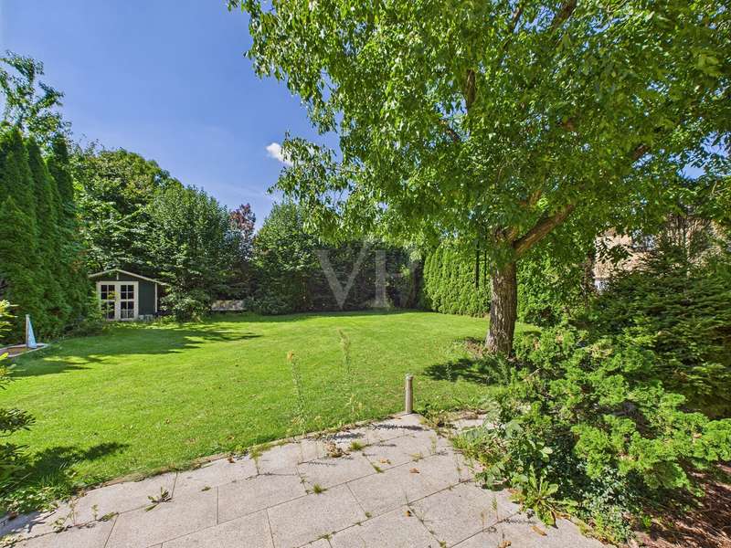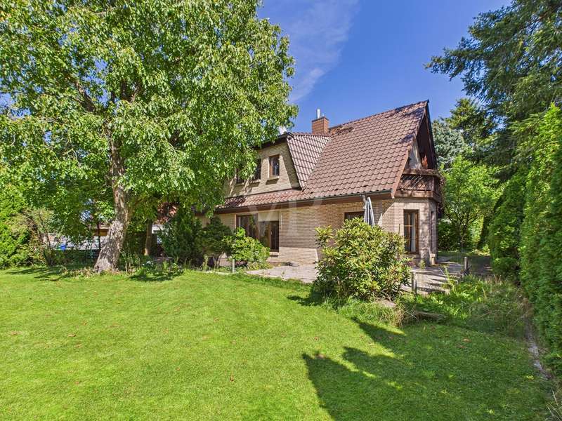 A solid detached house with a large, well-kept garden is for sale in idyllic Zeuthen, south-east of Berlin. The property is located in a well-kept residential area with detached houses, impresses with its well-kept and sunny plot and is situated in a traffic-calmed 30 zone with residential traffic. An electric entrance gate provides access to the approx. 741 m² plot, which also has a double carport. The paved driveway is attractive and inviting. The spacious outdoor area of the property invites you to relax. The well-kept garden offers plenty of sun and space. The modern and spacious terrace is the perfect place to relax with family and friends at the end of the day and take a break from the hustle and bustle of everyday life. The new owner still has plenty of scope to implement their own design ideas in the garden. With a total of 6 rooms on approx. 165 m² of living space, the property offers enough room for your wishes and ideas for your own home. As you enter the bright entrance of the house, you reach the generously proportioned living/dining room with adjoining kitchen area including a high-quality, as-new and fully equipped fitted kitchen to the left of the entrance area. To the right of the entrance area there is a bedroom (children's room, guest room or study possible) and a guest WC, which is equipped with a walk-in shower. Due to the numerous and generous window elements, the living/dining room is bright and friendly. From here you have direct access to the adjoining west-facing terrace and the lovingly landscaped garden. A high-quality wooden staircase leads to the upper floor of the house. There are 4 further rooms available here, which can be used as bedrooms, children's rooms or guest rooms. The high-quality family bathroom with bathtub and walk-in shower, which was extensively modernized in 2022, is also located here. A folding room-saving staircase provides access to the attic ("cold roof"). With a height of approx. 1.35 meters, this is completely accessible and offers additional storage space and further storage options on a floor area of approx. 20 m². The basement offers an additional 80 m² of usable space and has 4 spacious rooms. Among other things, there is a laundry room (HWR/HAR), a boiler room with workshop, a hobby room - which can be used as a bedroom, children's room or guest room, as well as a further cellar room that serves as a storage room and/or pantry. NOTE: In 2022, water damage occurred in the basement of the house due to a faulty washing machine connection. This was completely repaired by specialist companies in the same year (insurance claim). The current owners have all documentation and records relating to this, which can be viewed on request. Have we piqued your interest? Then please feel free to arrange a viewing appointment with us!